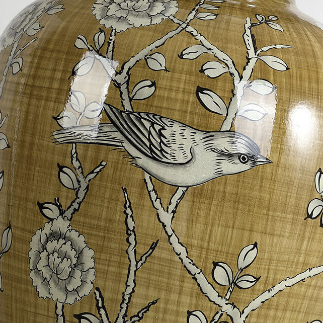 Retro Chinese Ceramic Canvas Shade Copper Base 1-Light Table Lamp