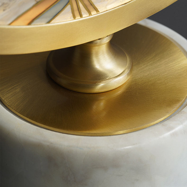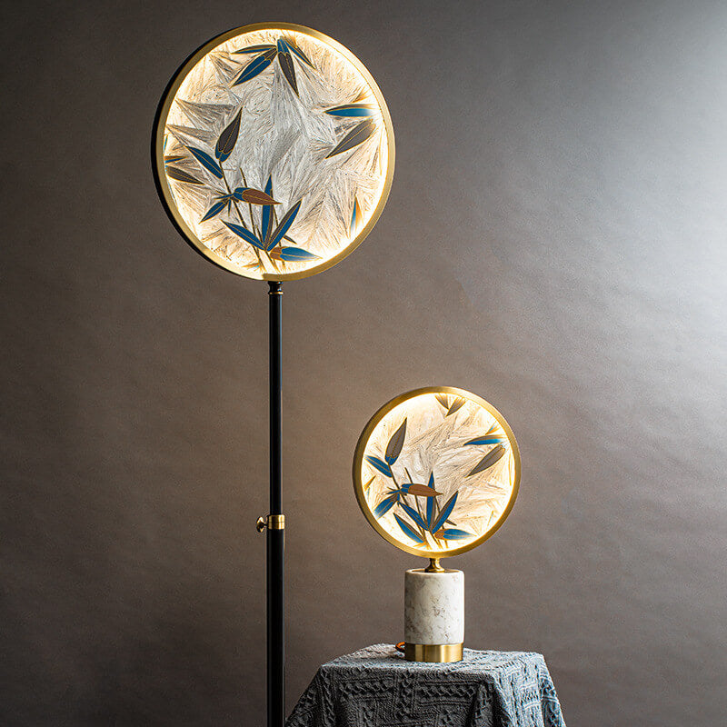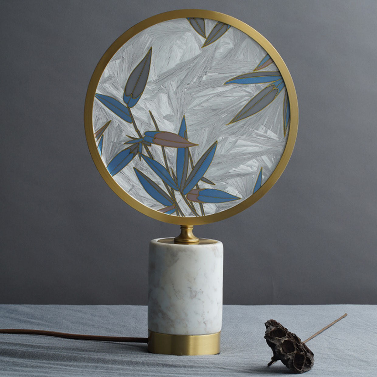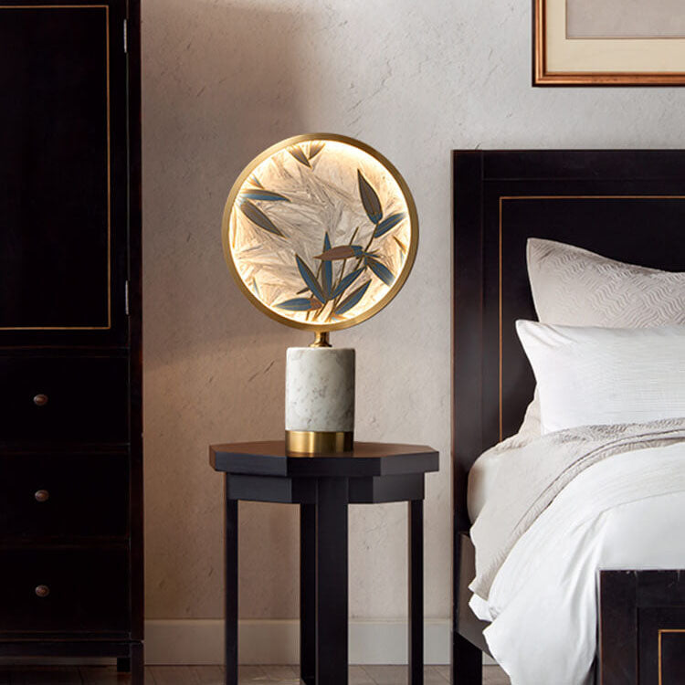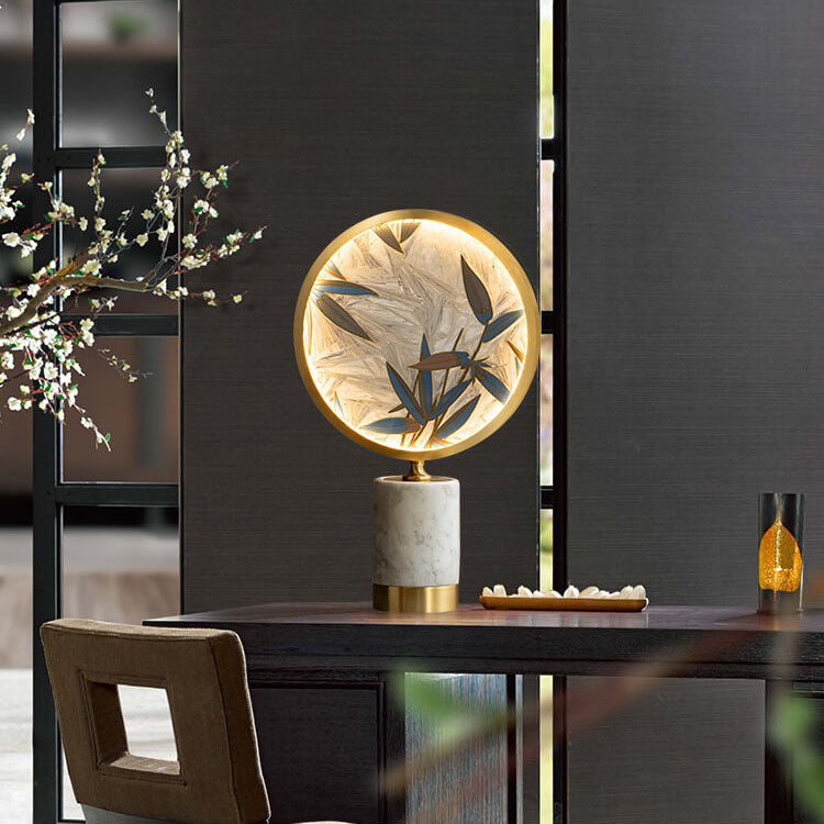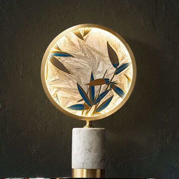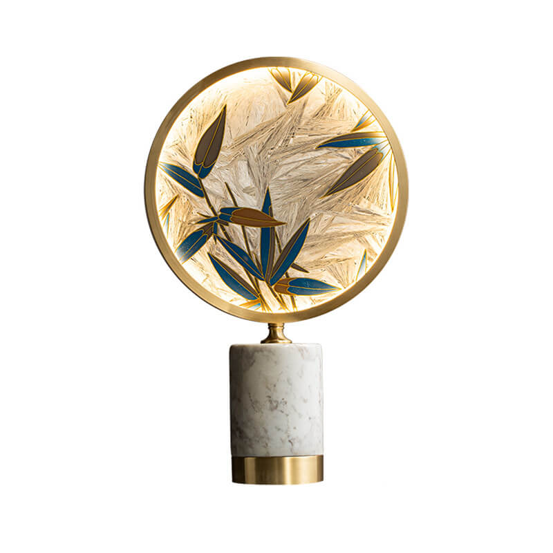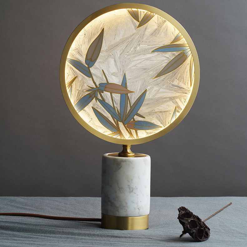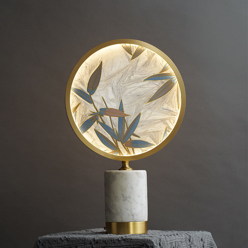 Vintage Chinese Hand Painted Enamel Round Marble Base LED Table Lamp