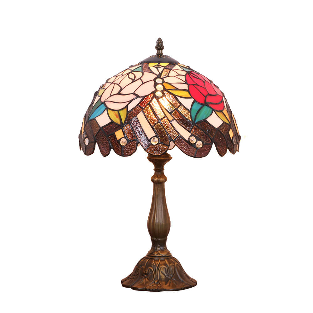 Retro Tiffany Peony Pattern Stained Glass Dome 1-Light Table Lamp