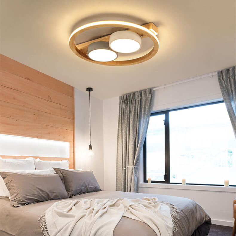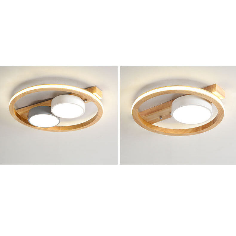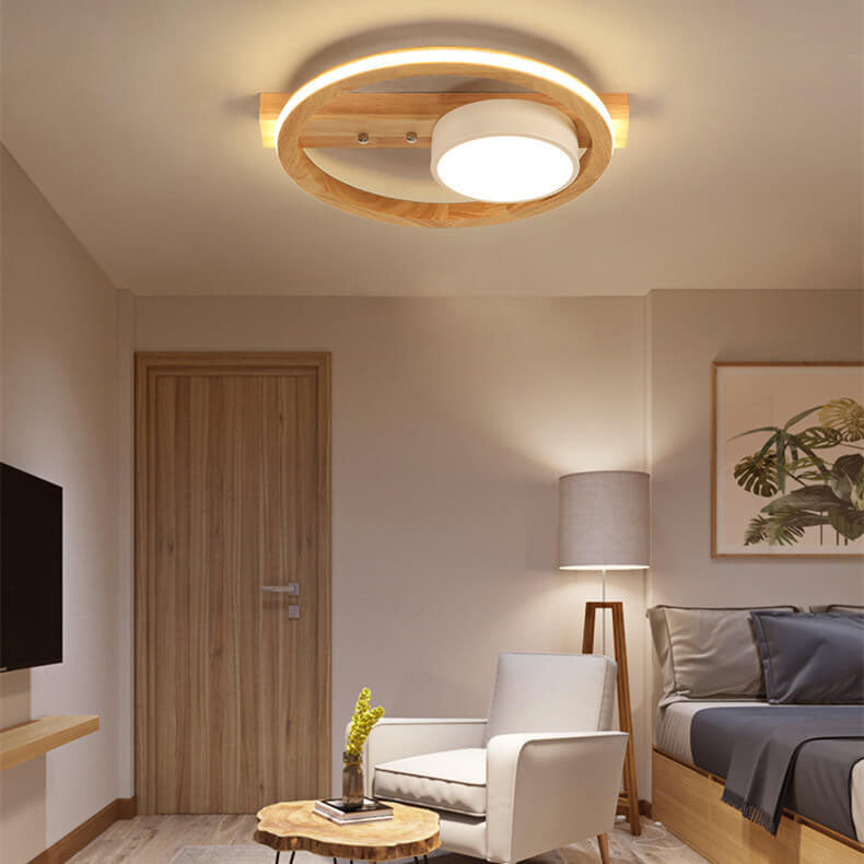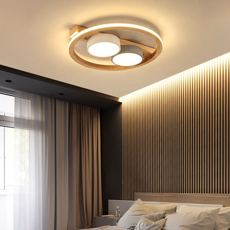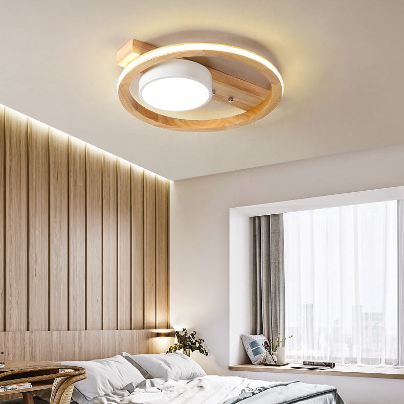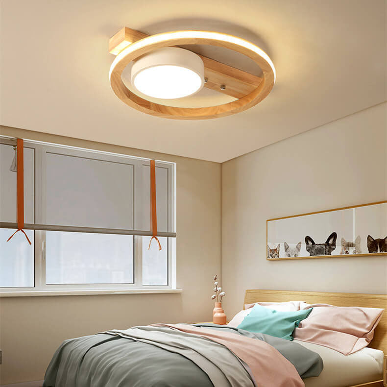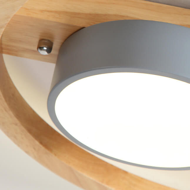 Scandinavian Minimalist Solid Wood Acrylic Round LED Flush Mount Ceiling Light