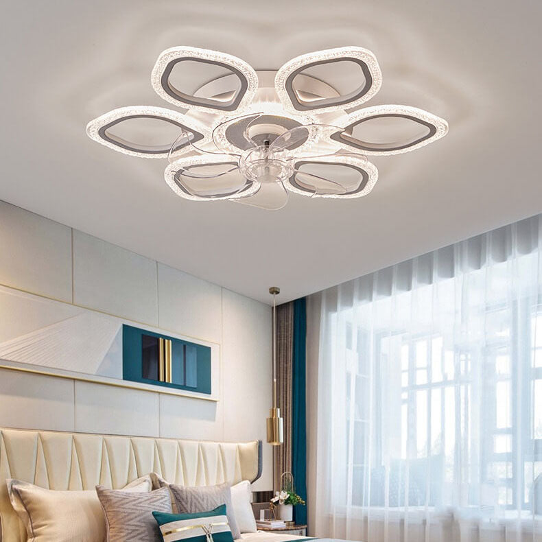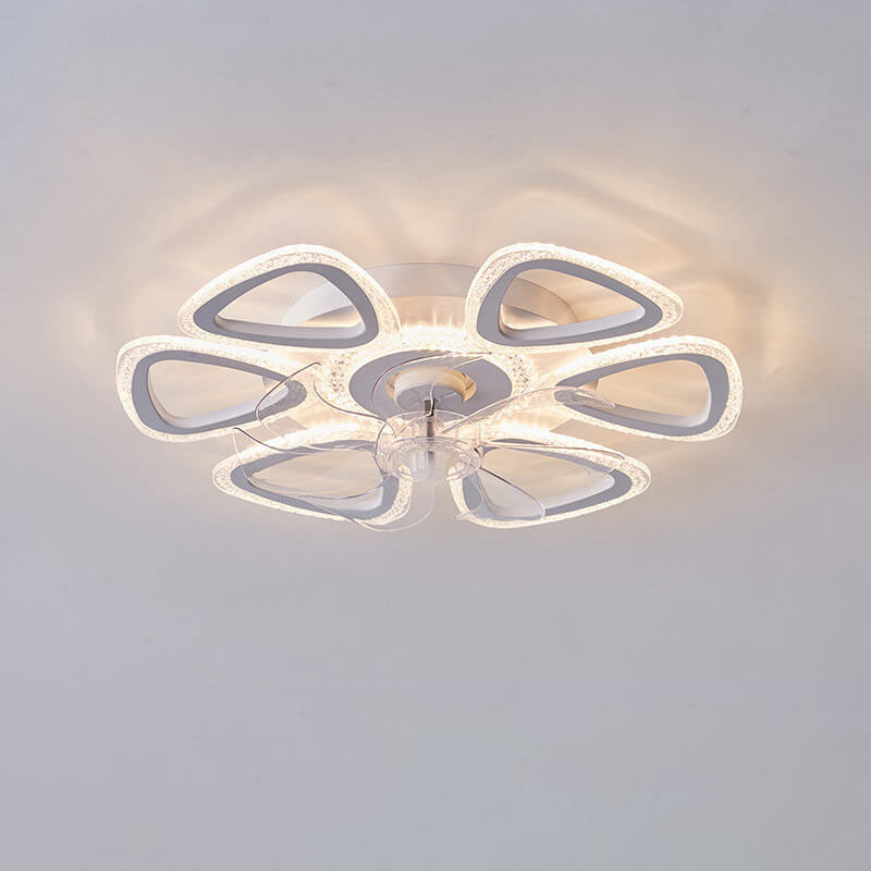Scandinavian Modern Minimalist Flower Petals Iron Acrylic Plastic LED Flush Mount Ceiling Fan Light