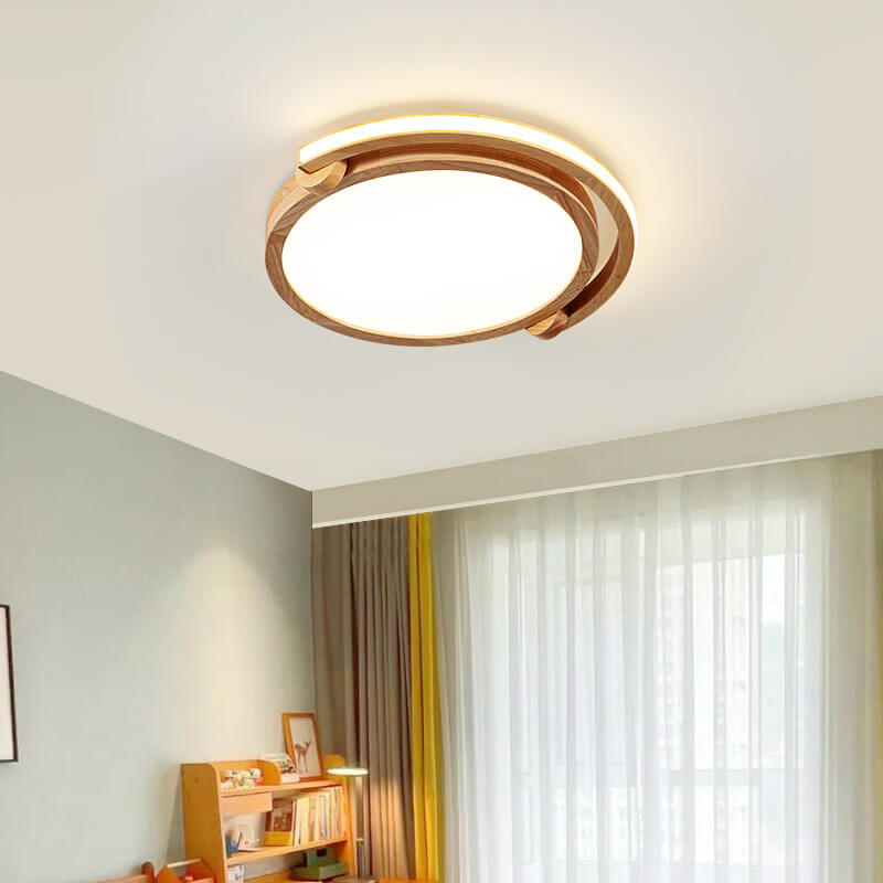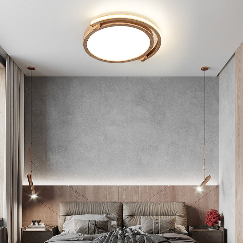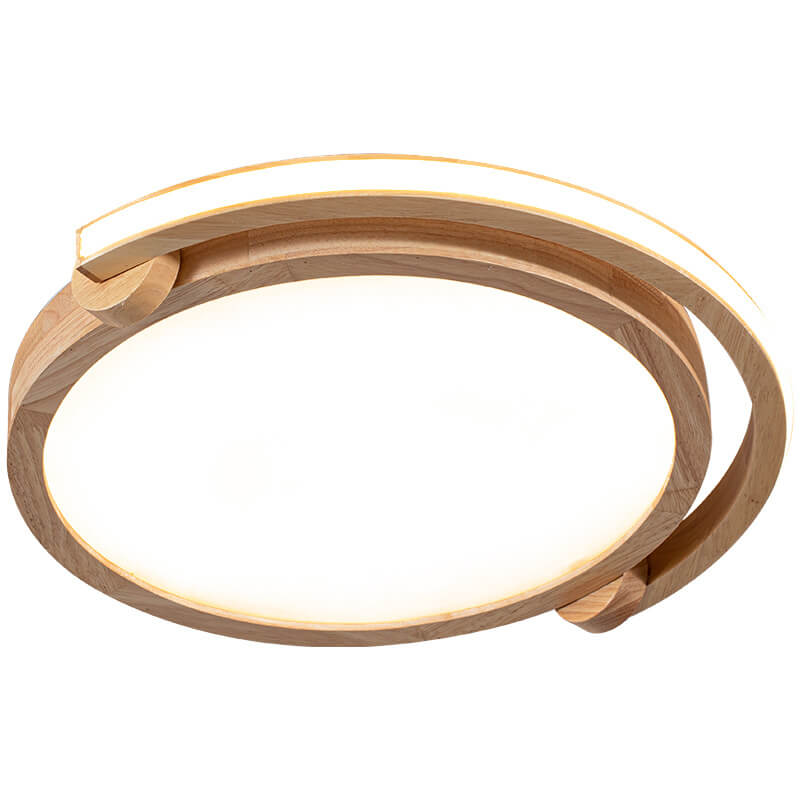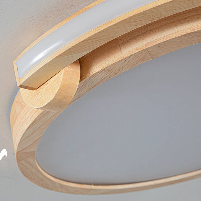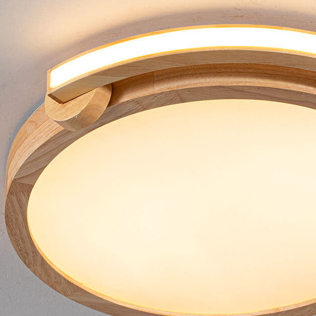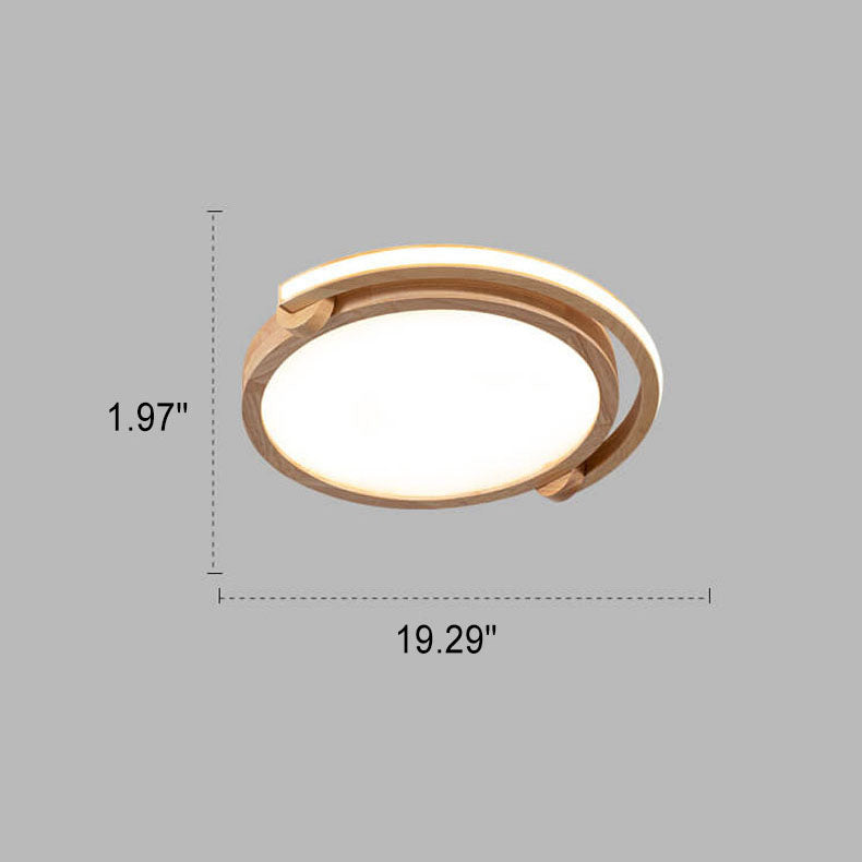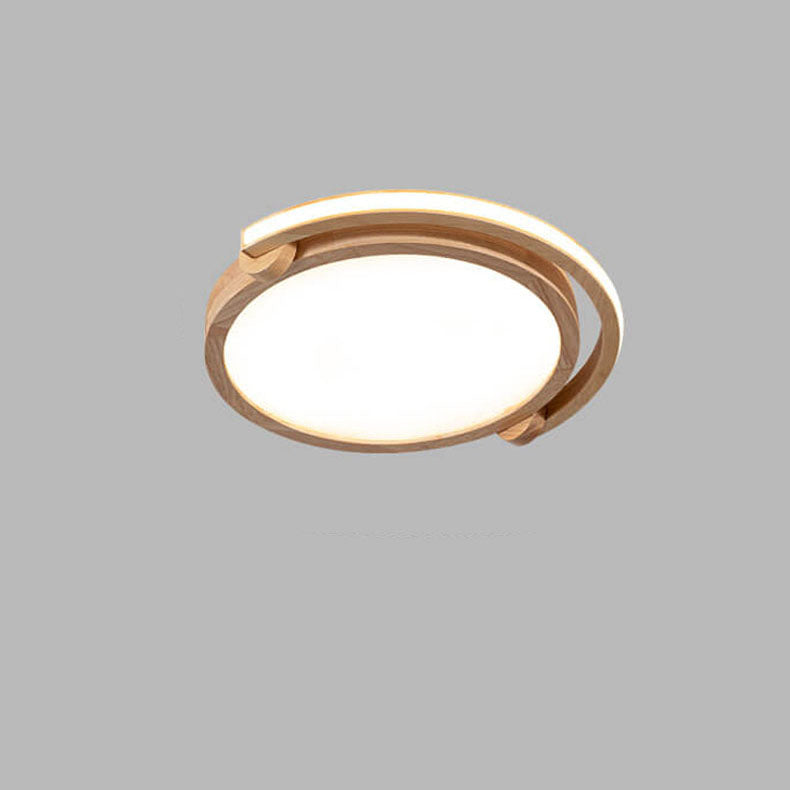 Simple Japanese Wood Log Round Acrylic LED Flush Mount Ceiling Light