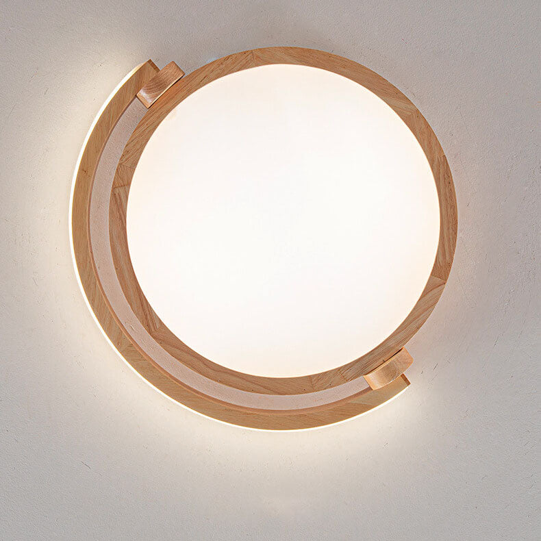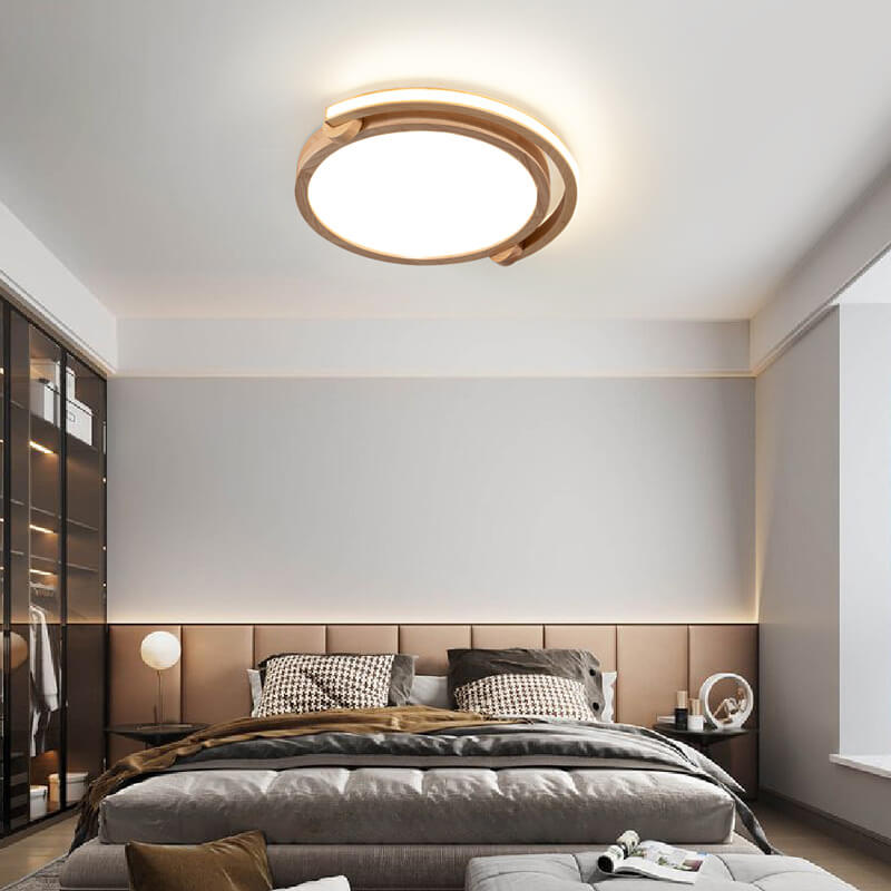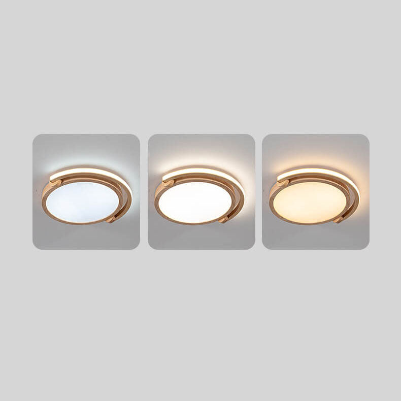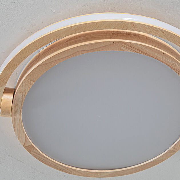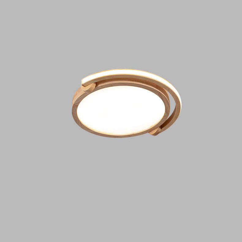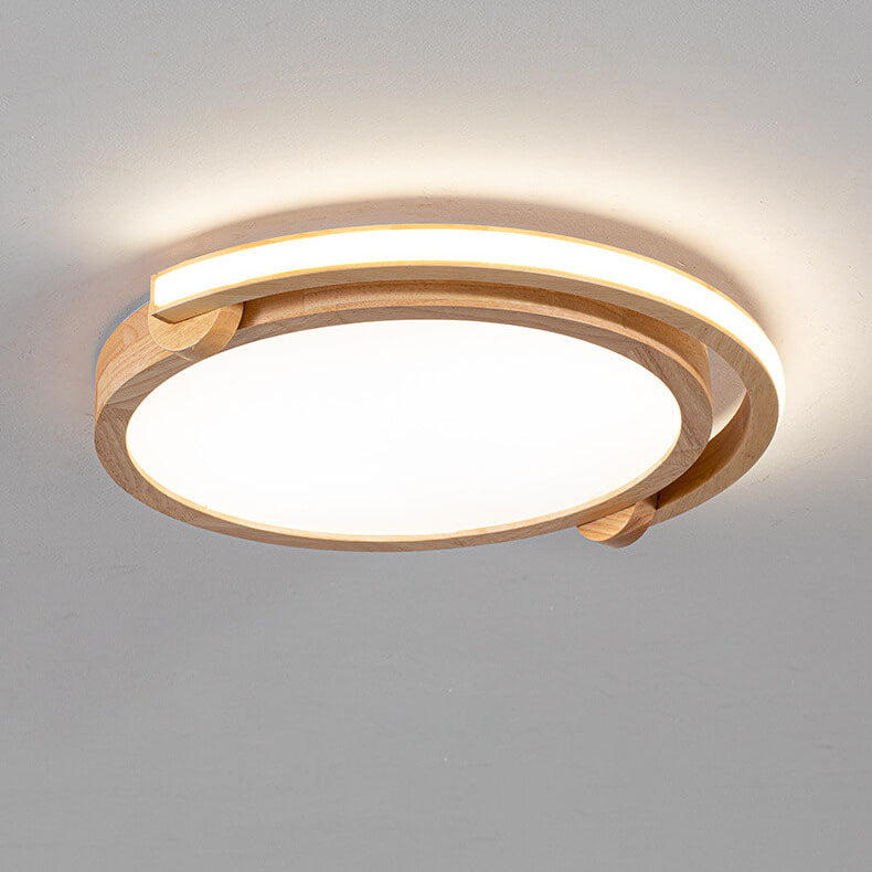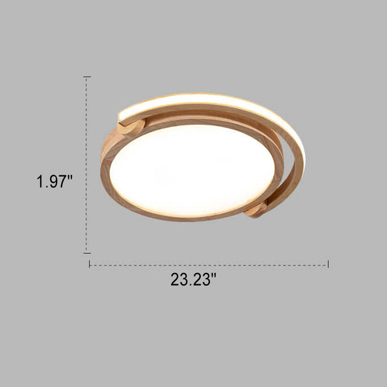 Simple Japanese Wood Log Round Acrylic LED Flush Mount Ceiling Light