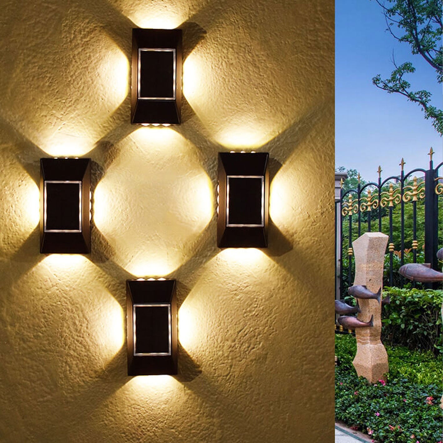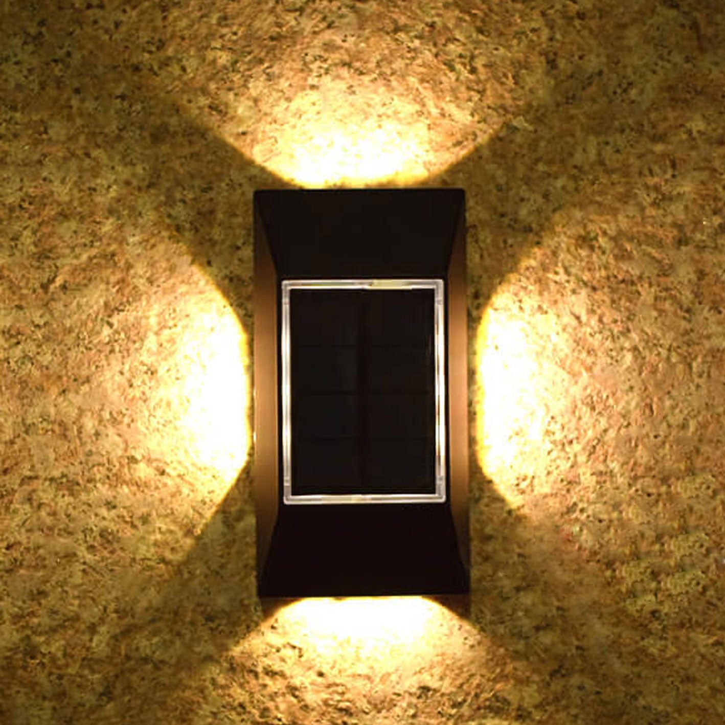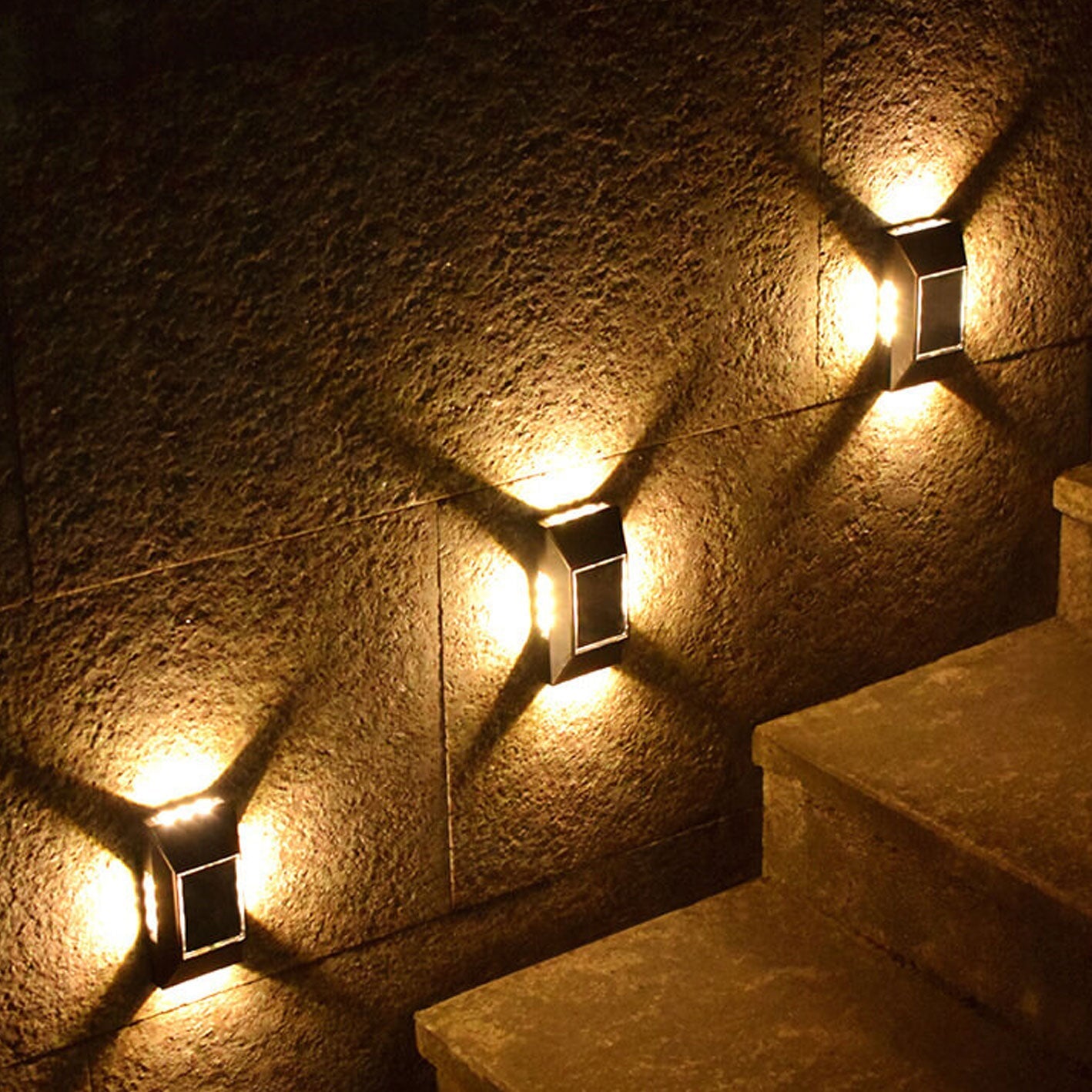 Solar LED All Around Lighting Garden Outdoor Light Wall Sconce Lamp