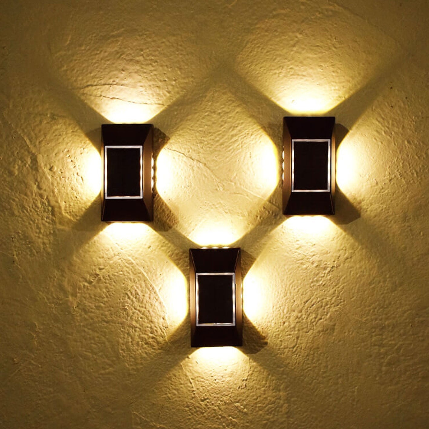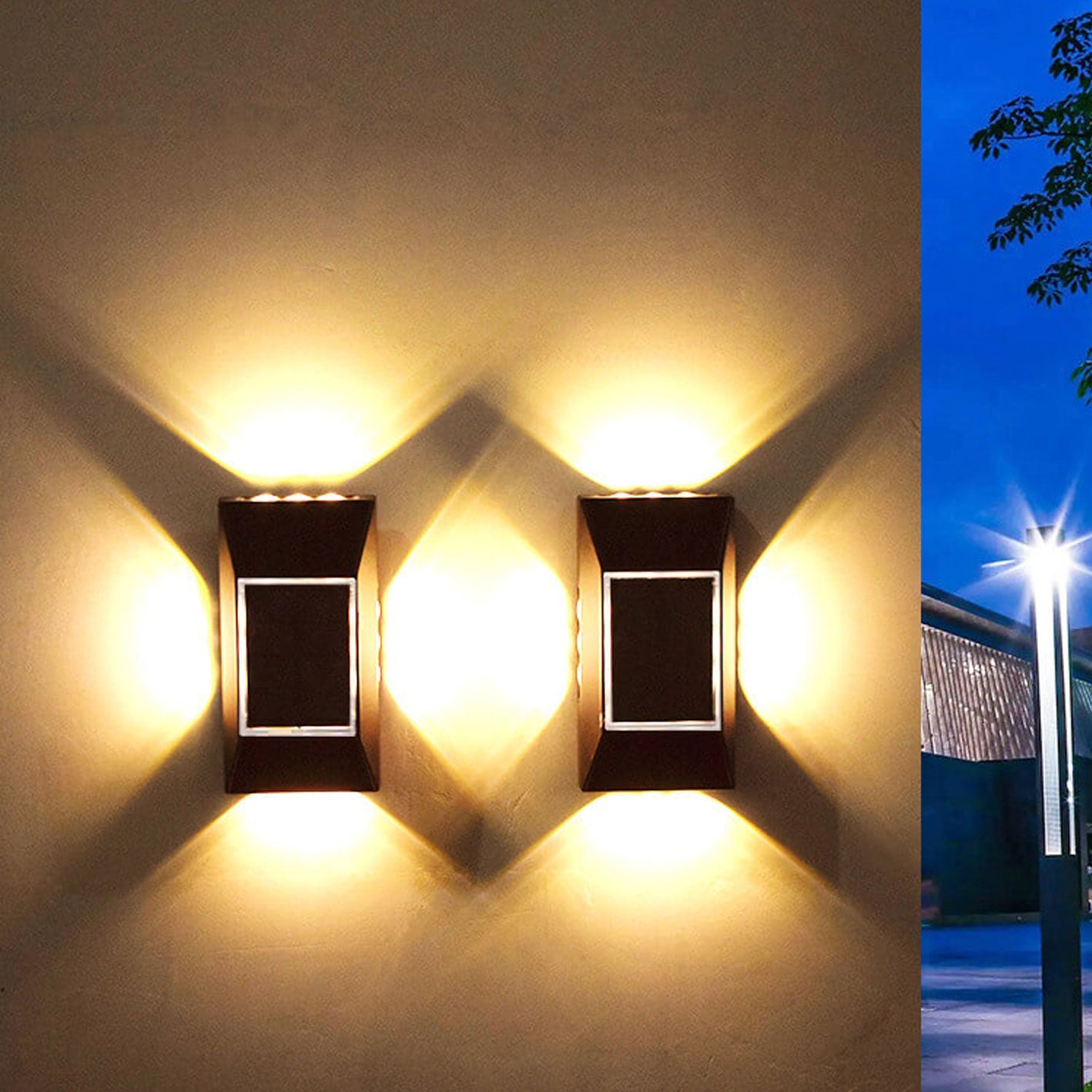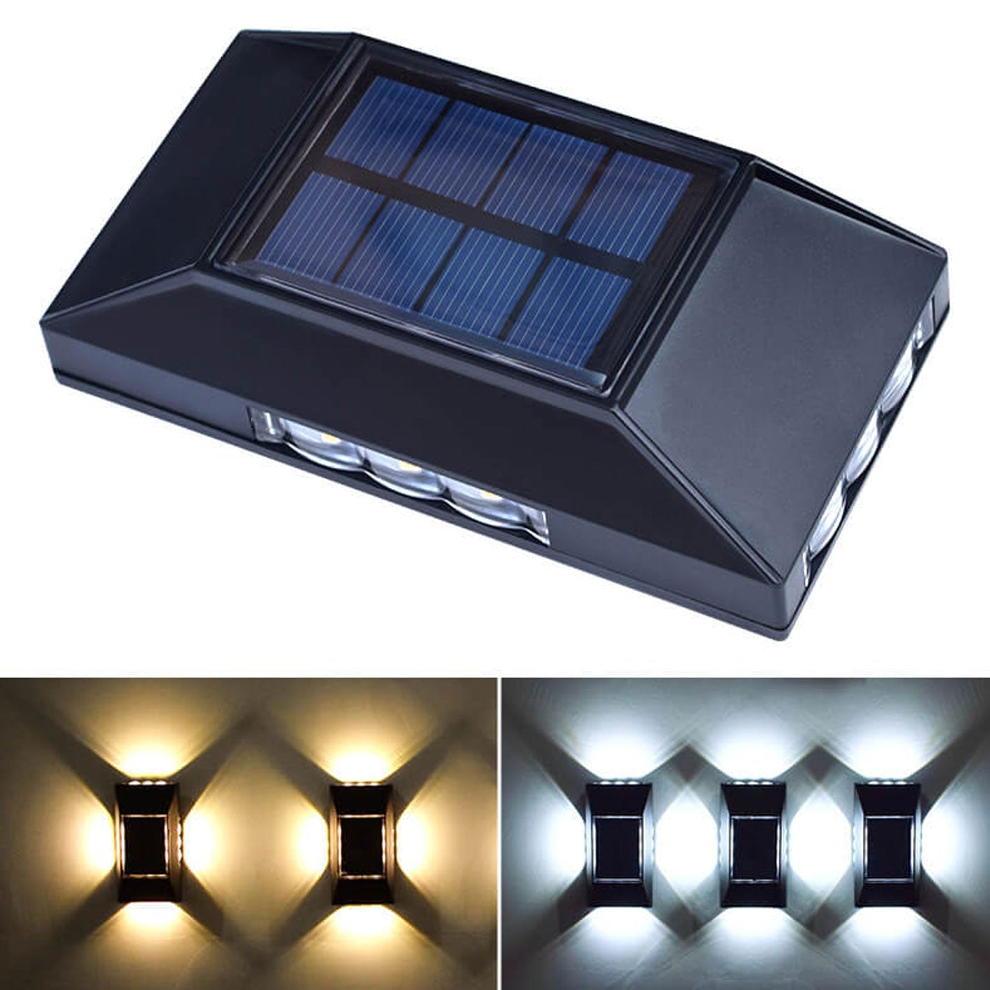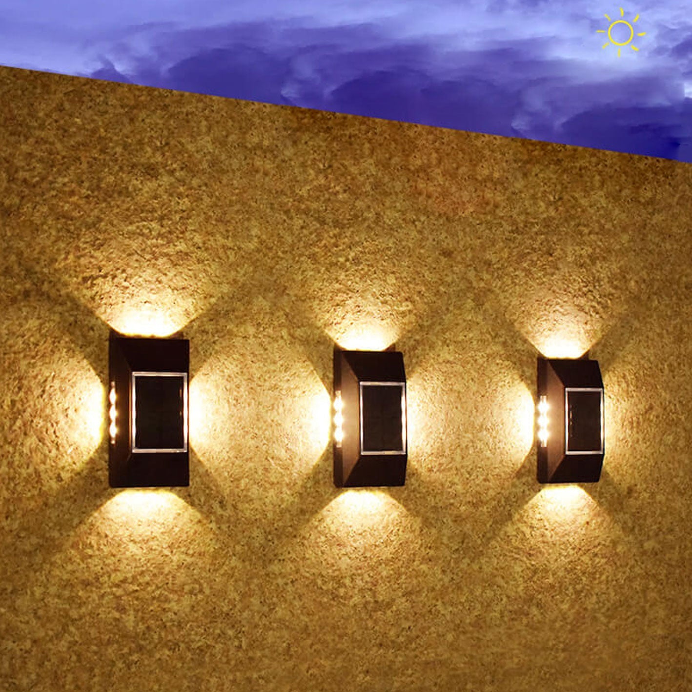 Solar LED All Around Lighting Garden Outdoor Light Wall Sconce Lamp