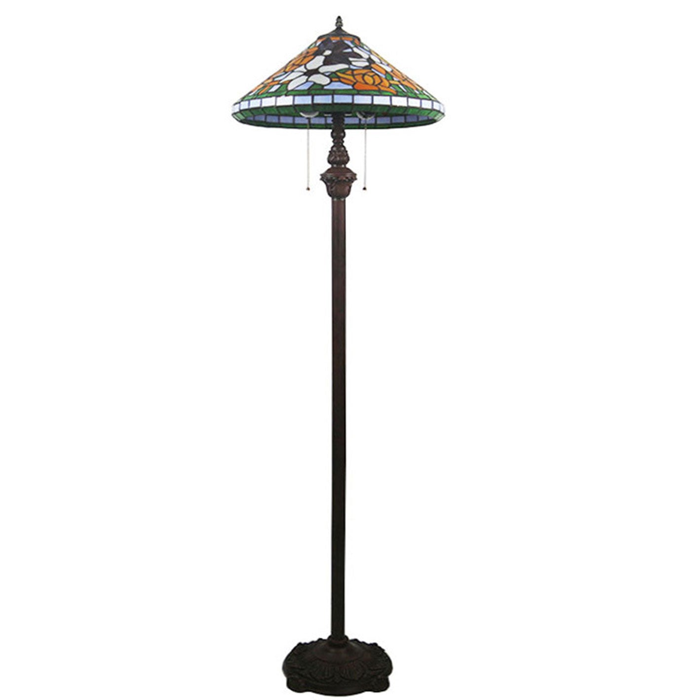 Southeast Asian Style Glass Tiffany 2-Light Standing Floor Lamp