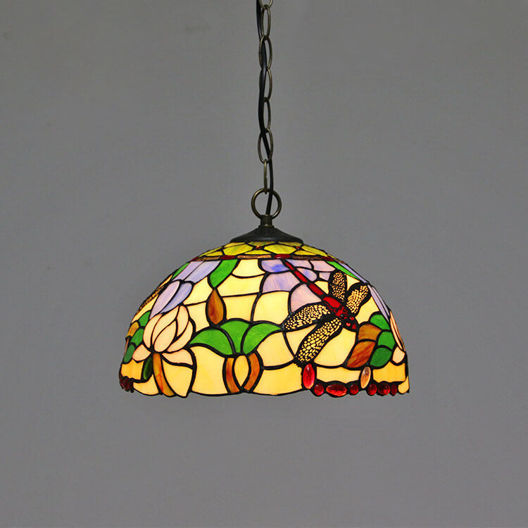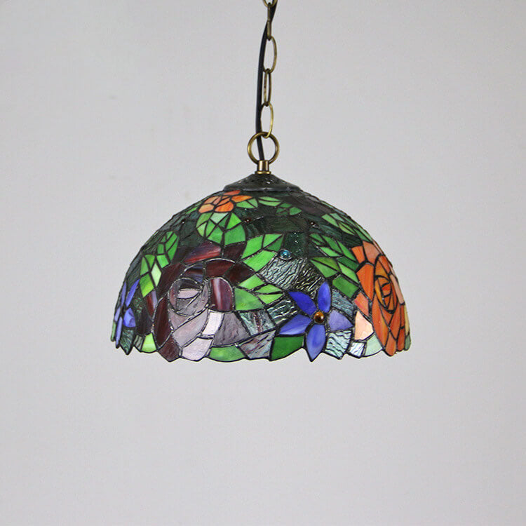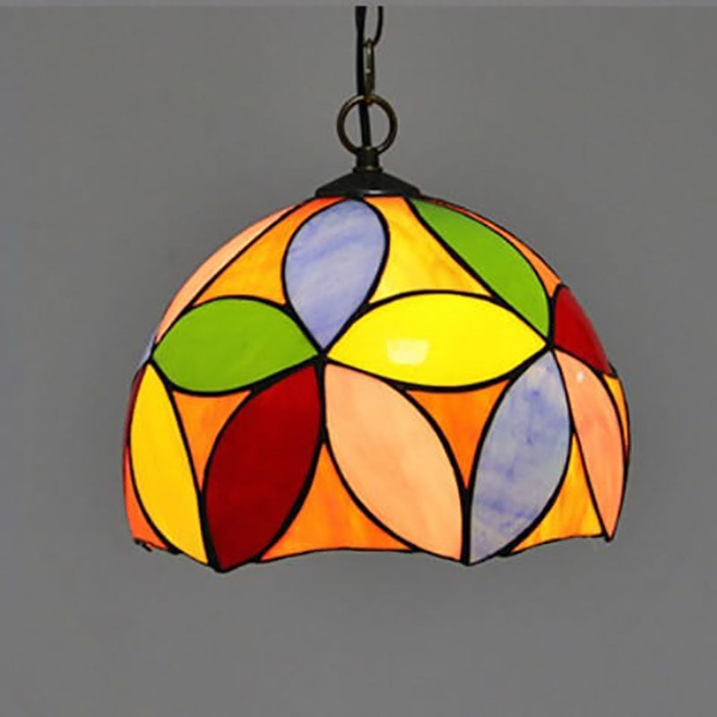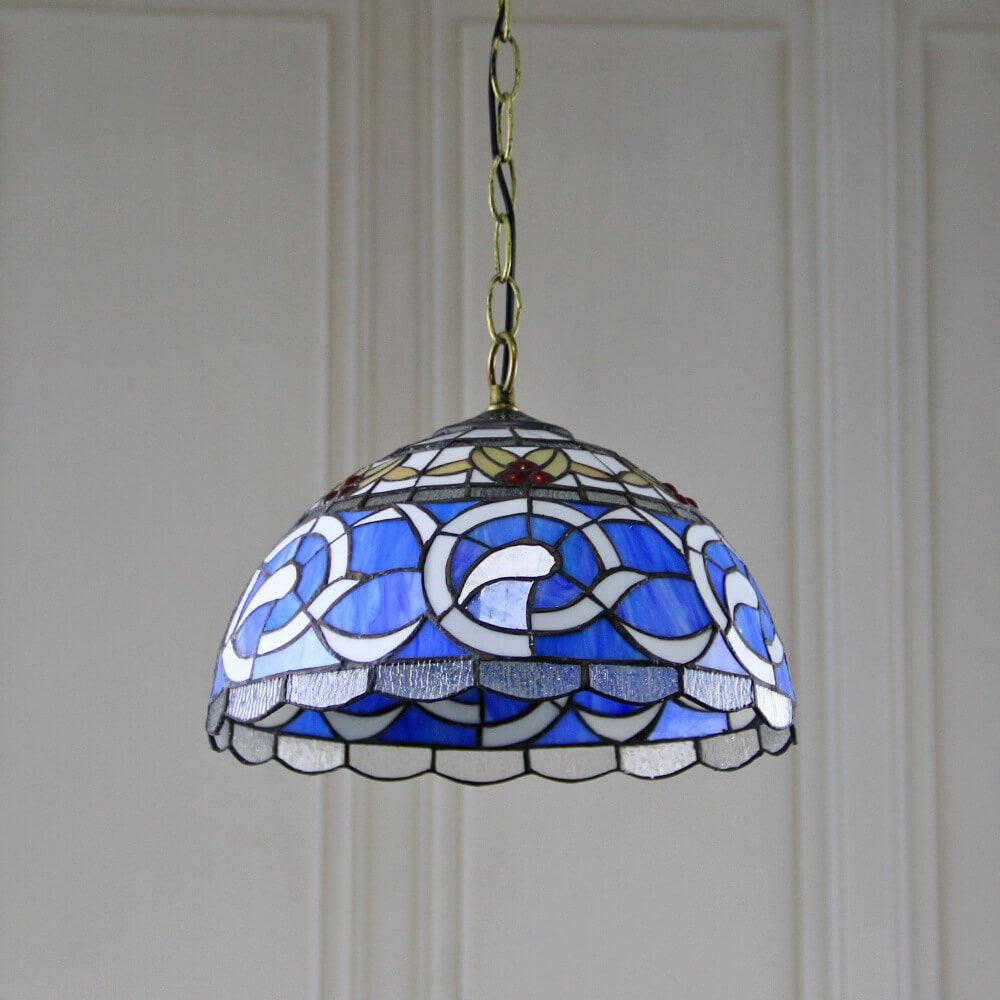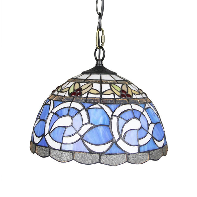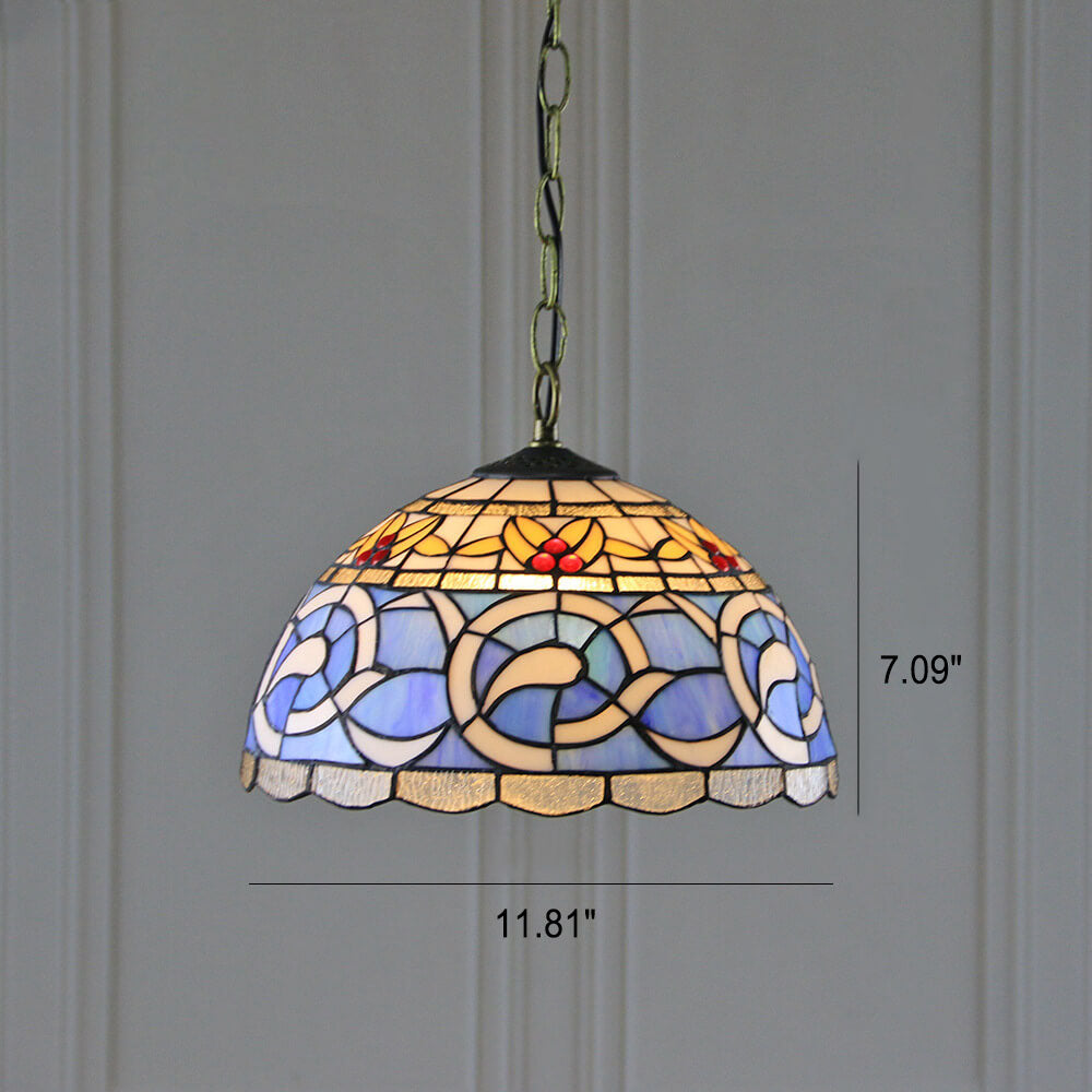Tiffany Baroque Stained Glass Round Dome 1-Light Pendant Light