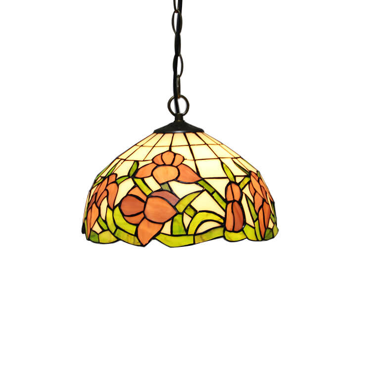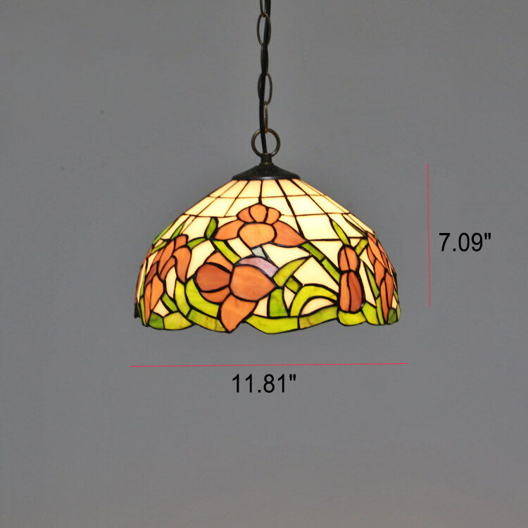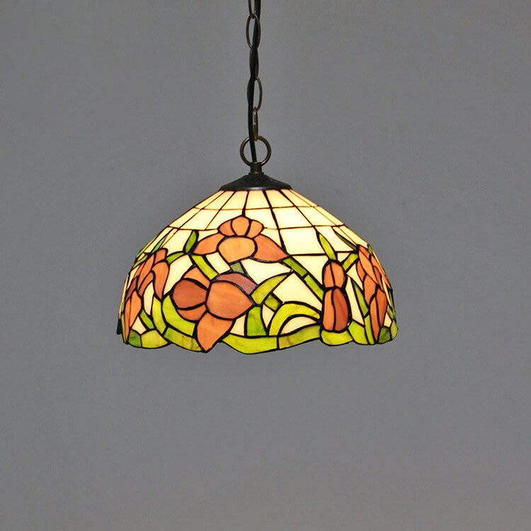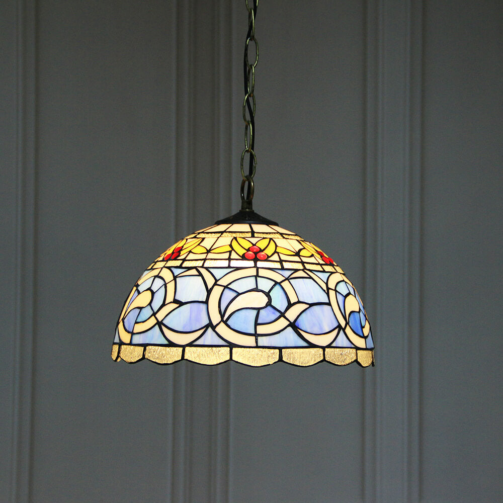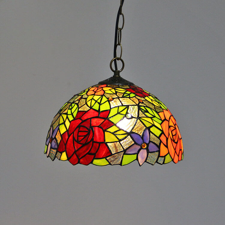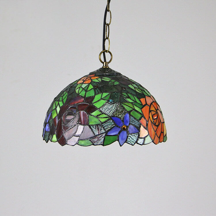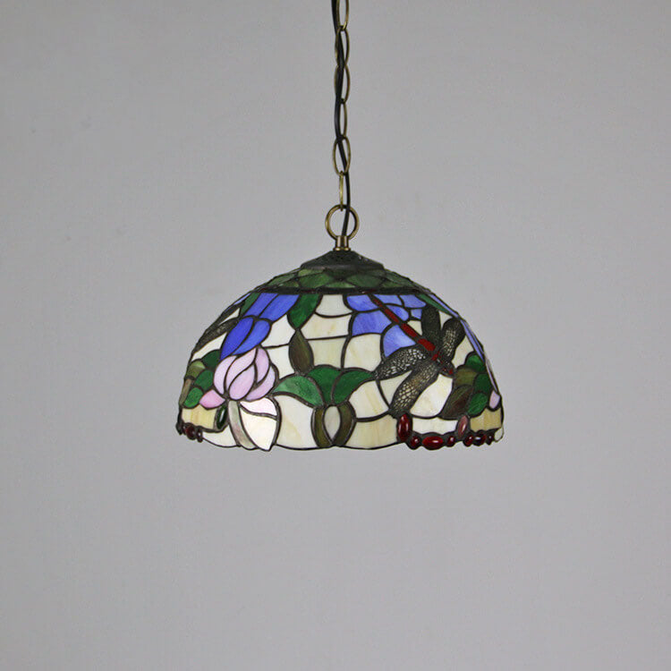 Tiffany Baroque Stained Glass Round Dome 1-Light Pendant Light