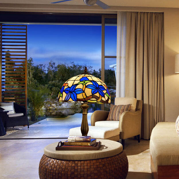 Tiffany Blue Gardenia Stained Glass 1-Light Table Lamp