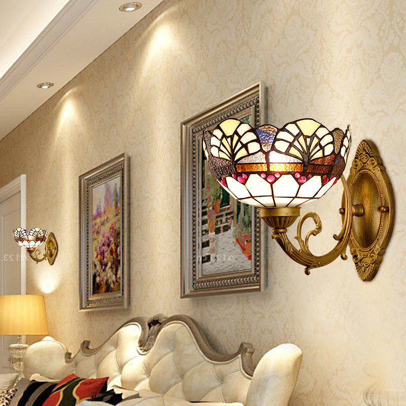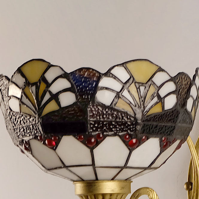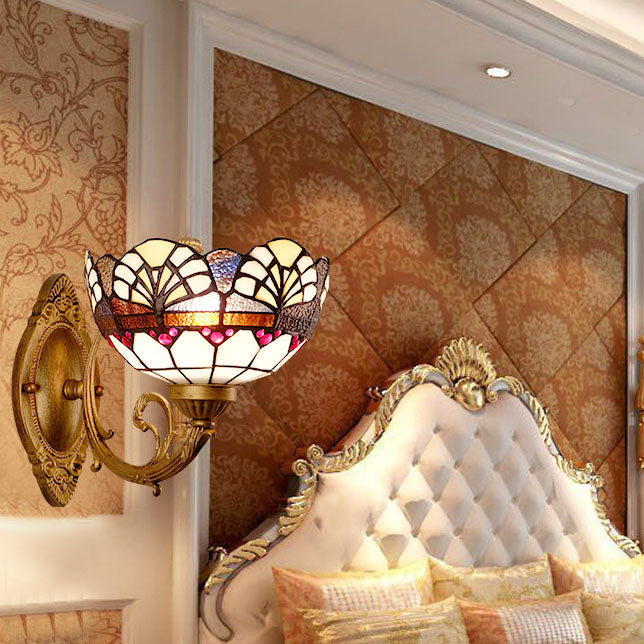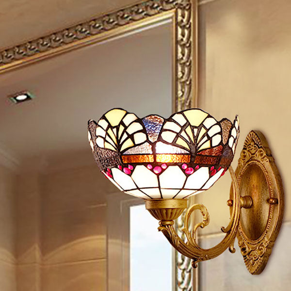 Tiffany Conches Stained Glass Round 1-Light Wall Sconce Lamp