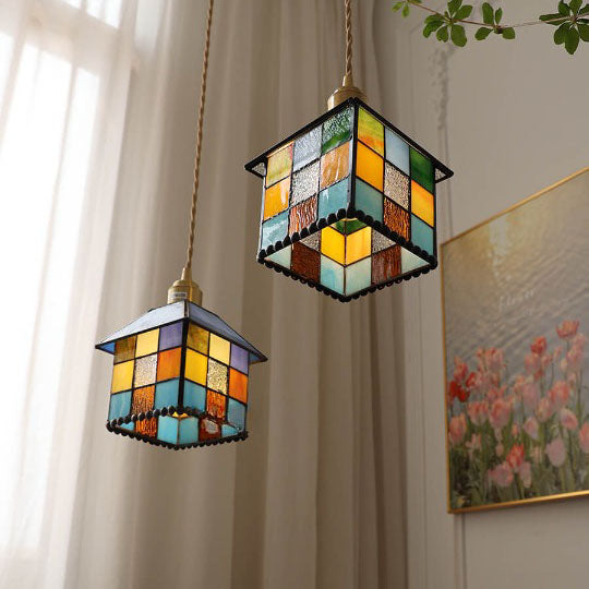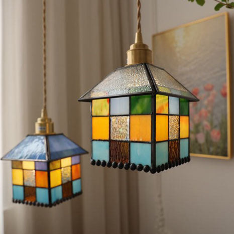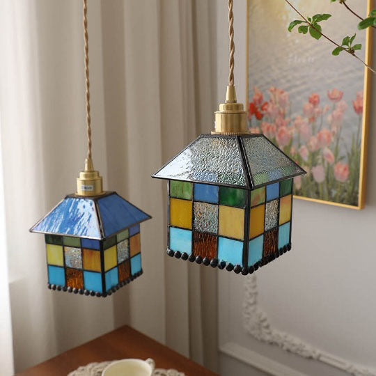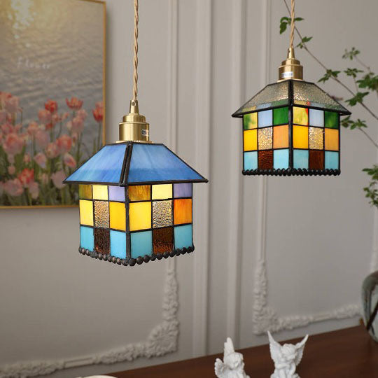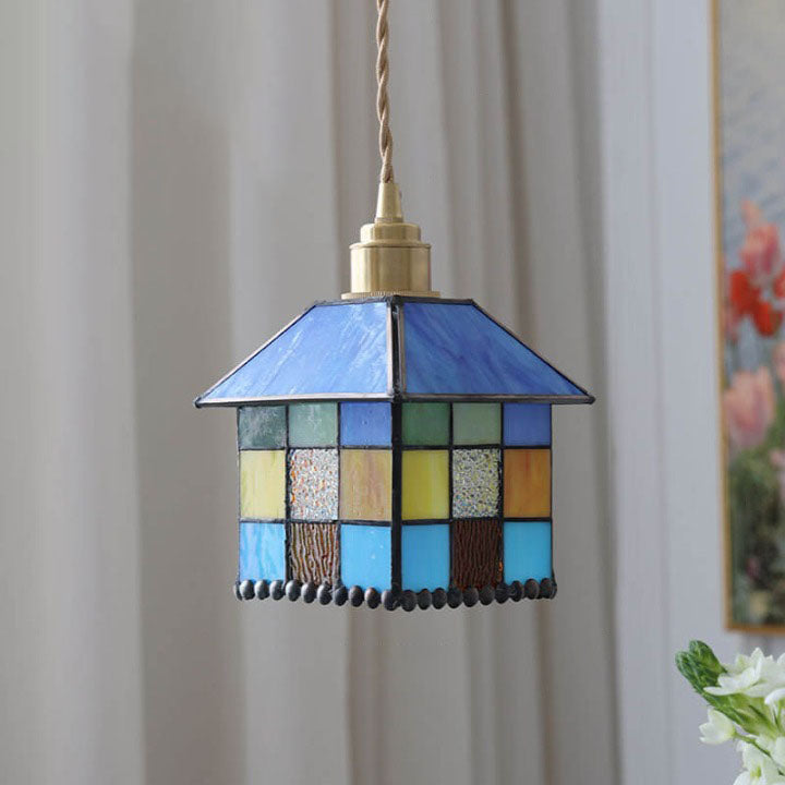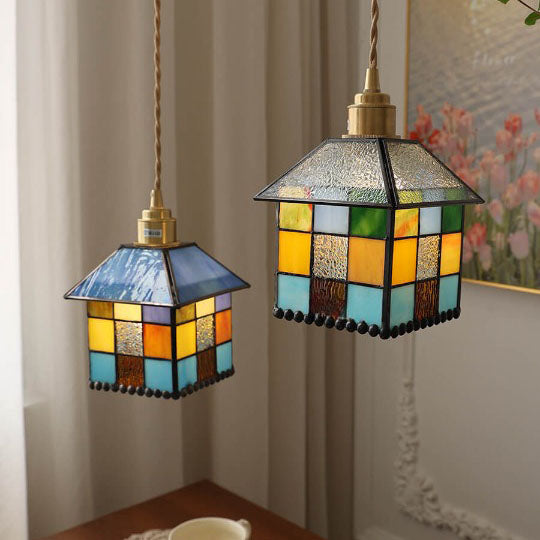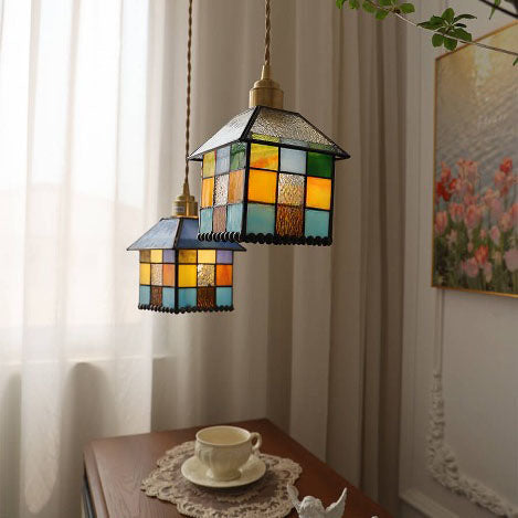 Tiffany Creative Stained Glass House 1-Light Pendant Light
