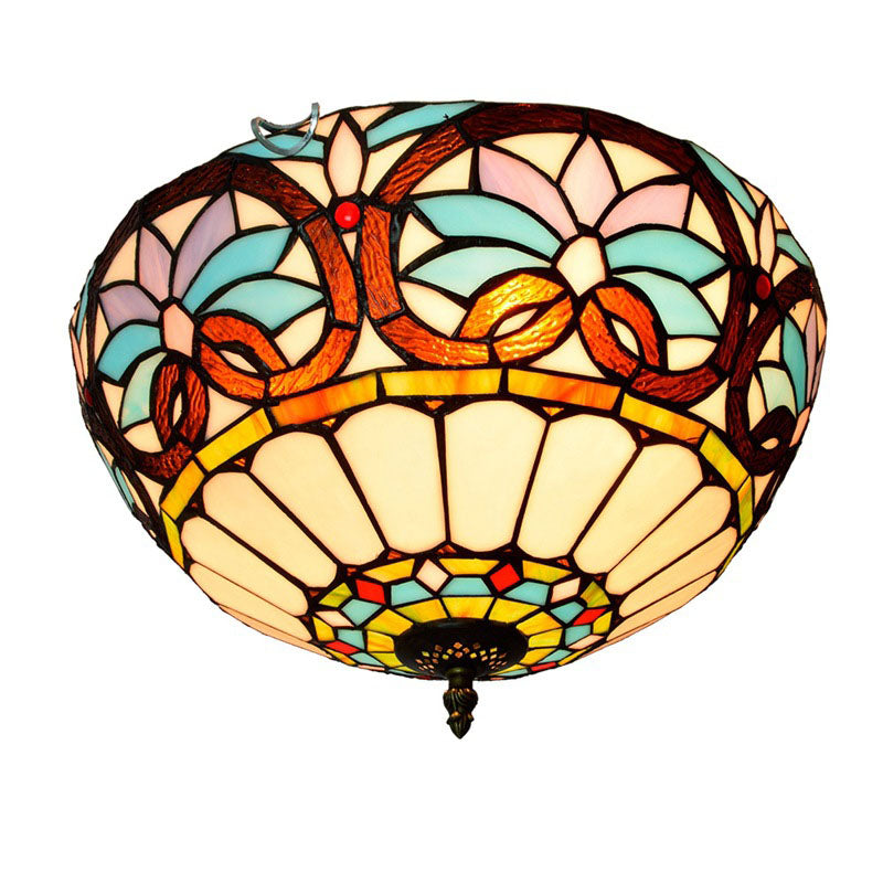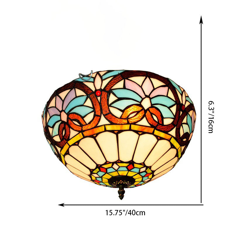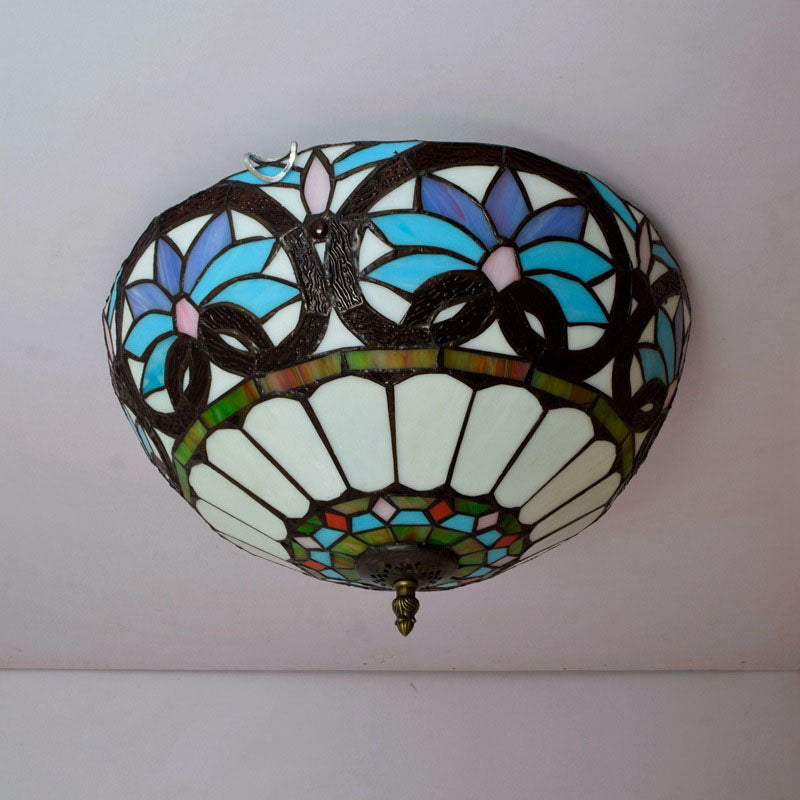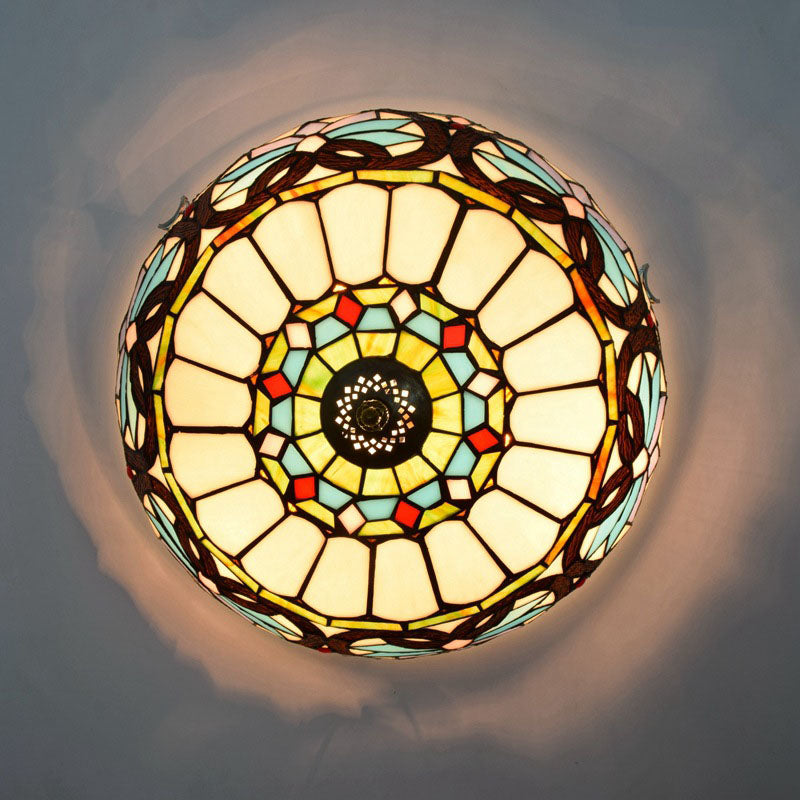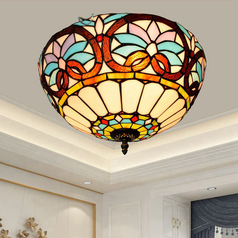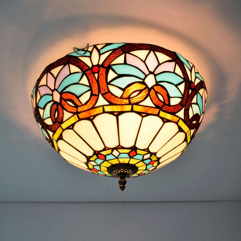 Tiffany Creative Stained Glass Semicircle 3-Light Flush Mount Ceiling Light