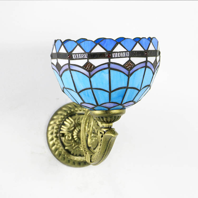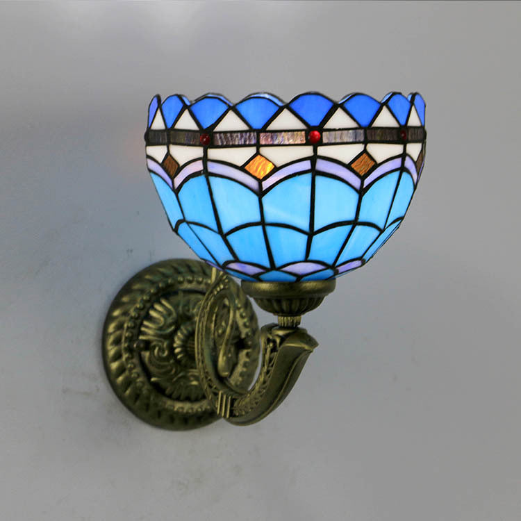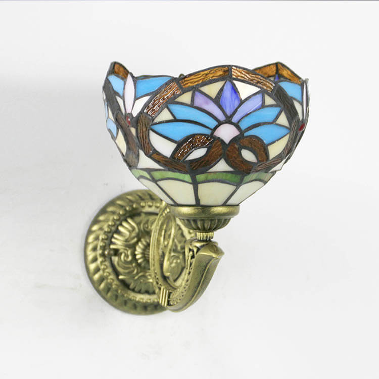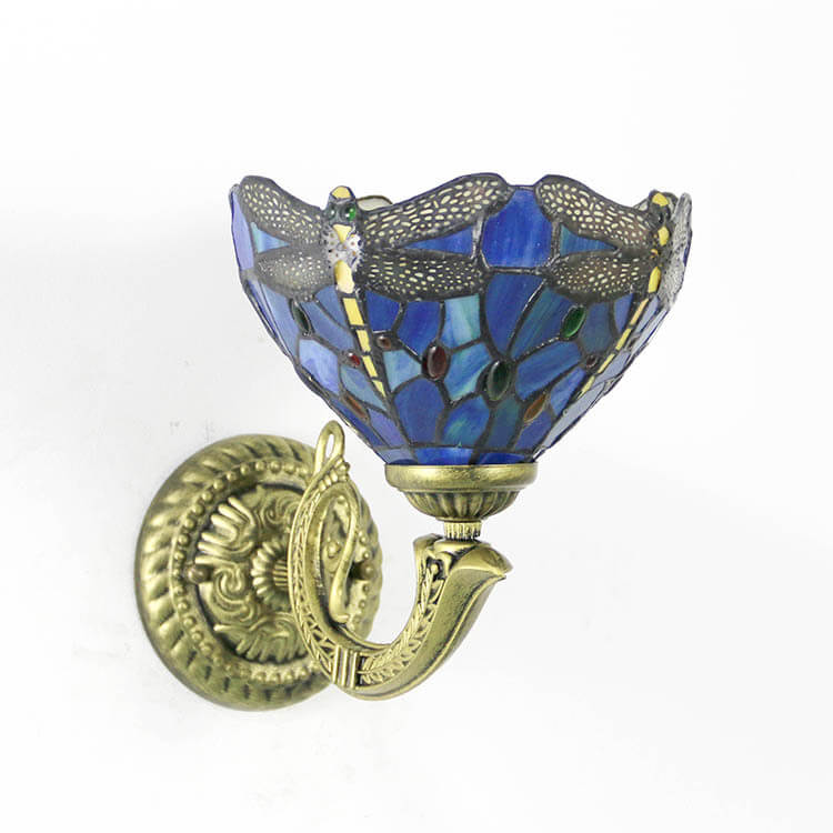 Tiffany Cup Dragonfly Tulip Zinc Alloy Stained Glass 1-Light Wall Sconce Lamp