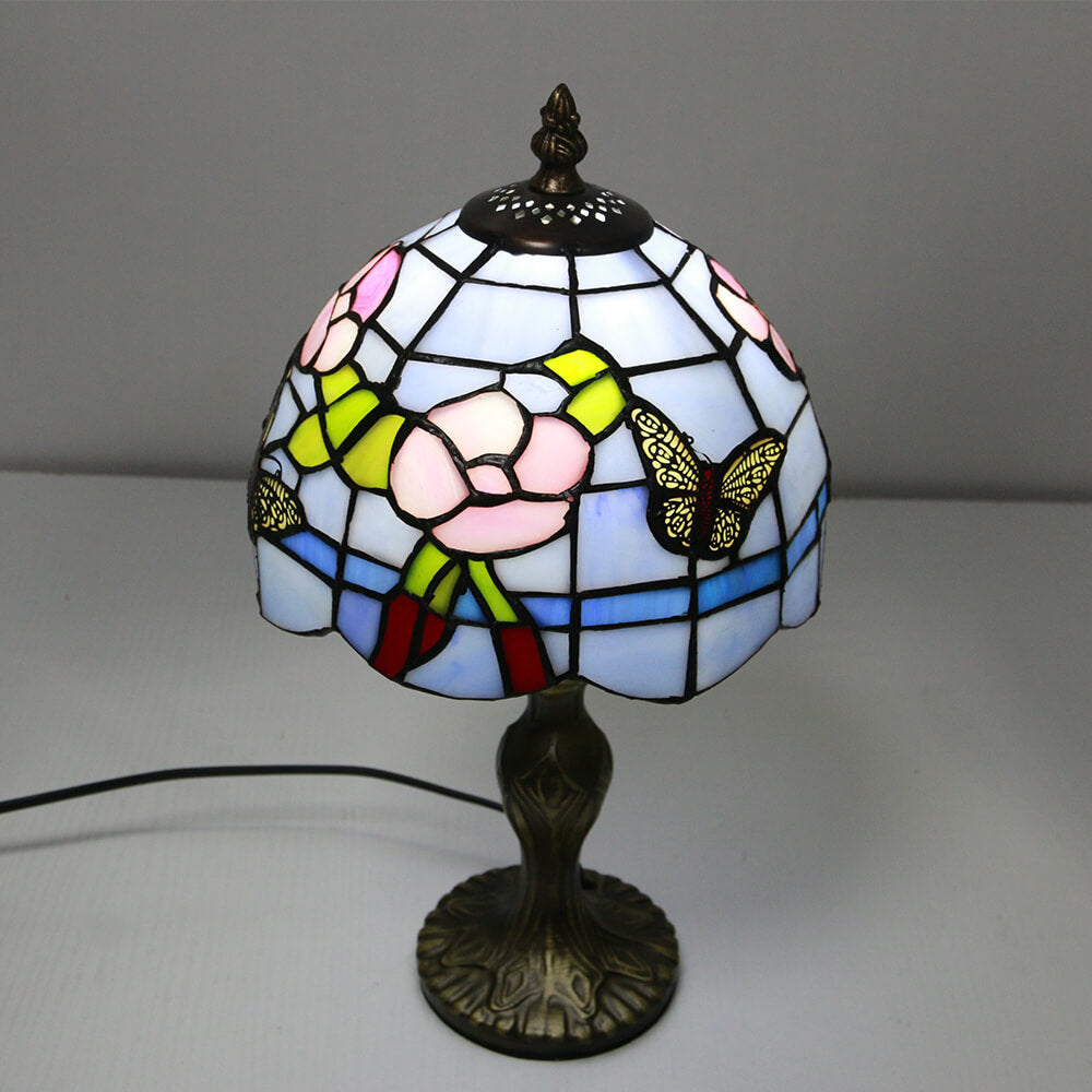 Tiffany Decorative Flower Umbrella Rose Alloy Stained Glass 1-Light Table Lamp