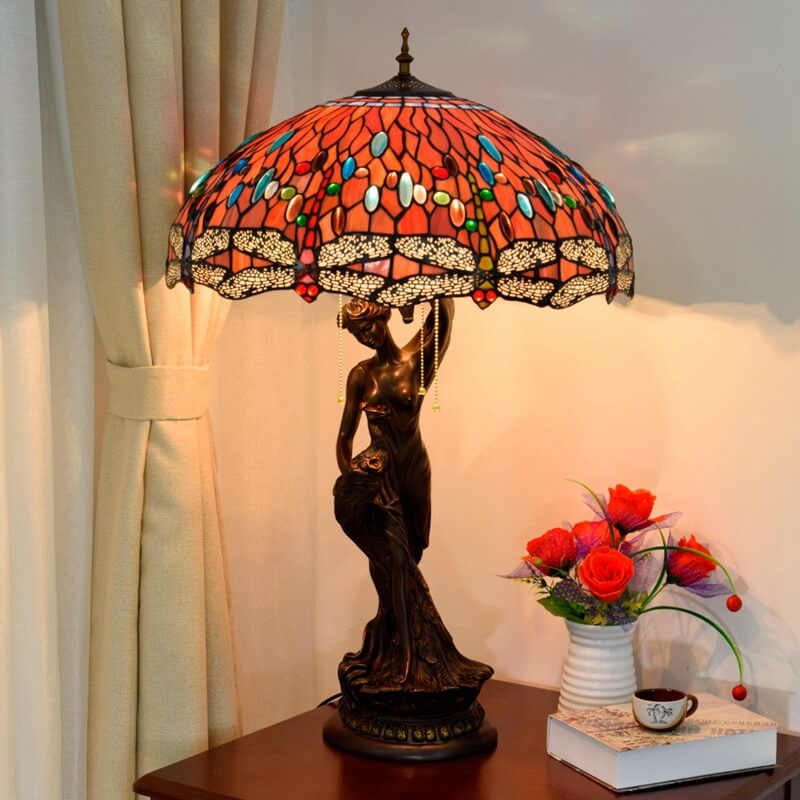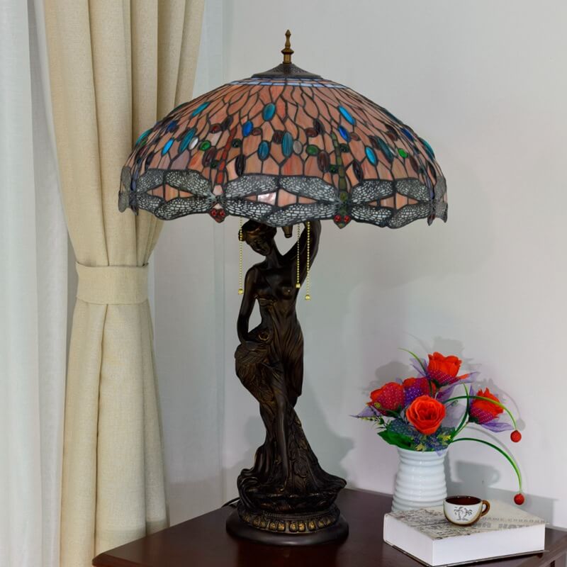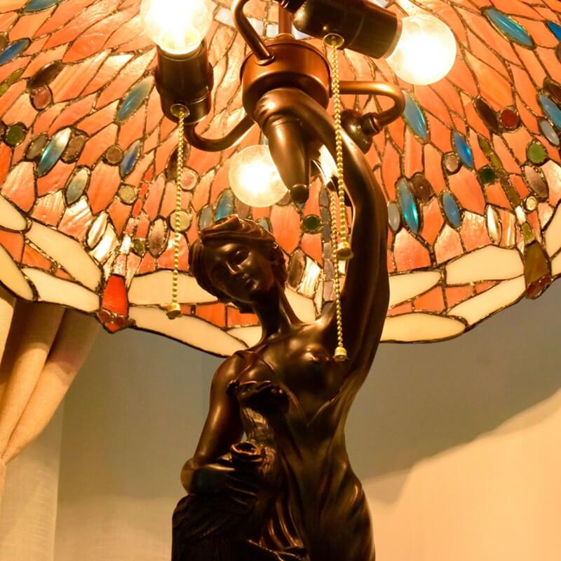 Tiffany Decorative Goddess Dragonfly Resin Stained Glass 3-Light Table Lamp
