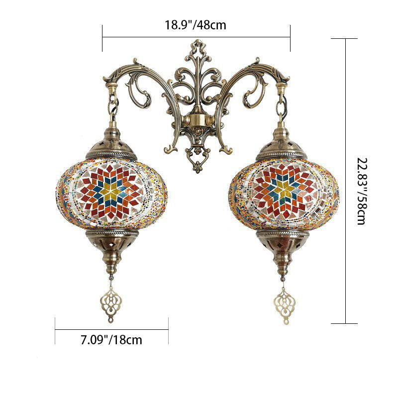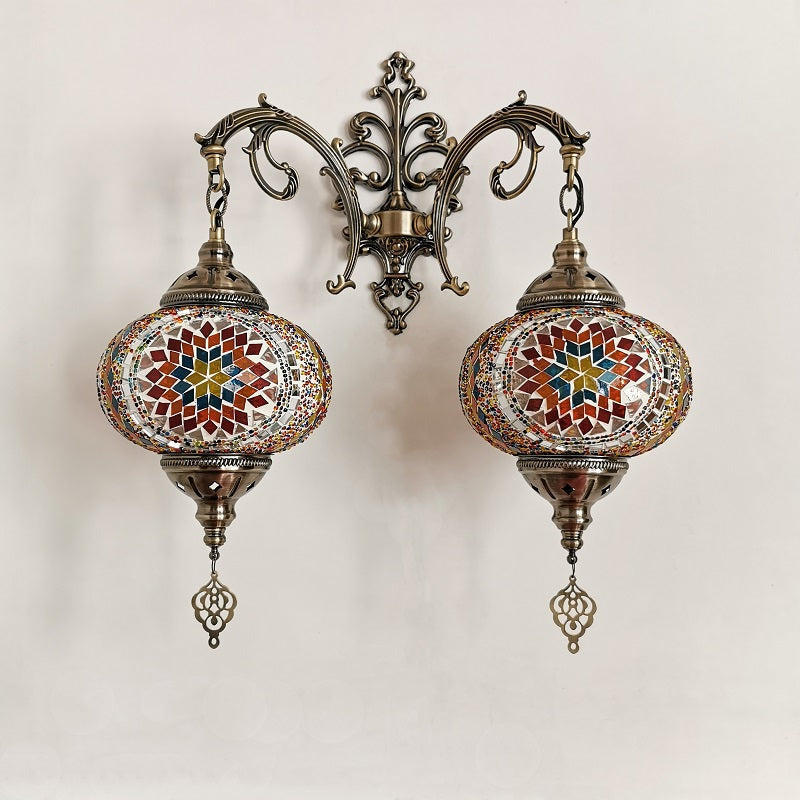 Tiffany Decorative Lantern Hardware Stained Glass 2-Light Wall Sconce Lamp