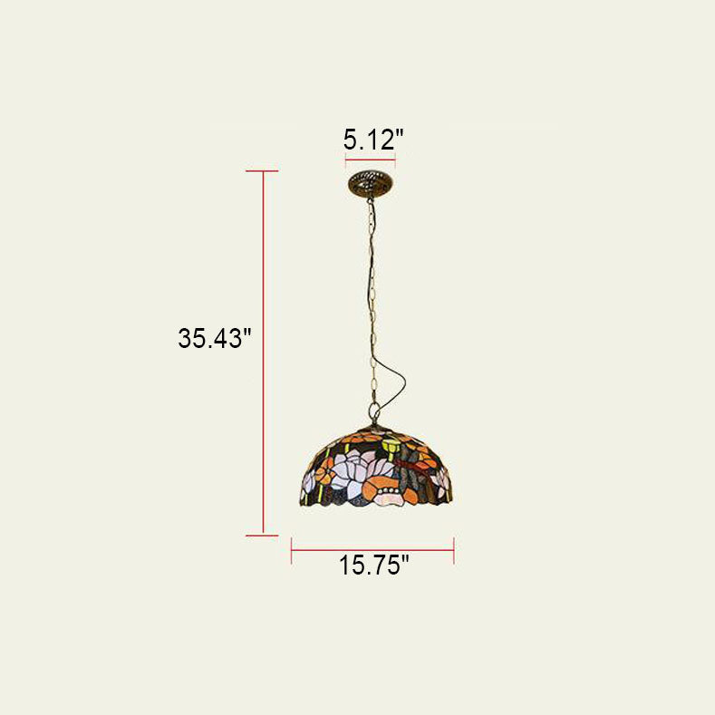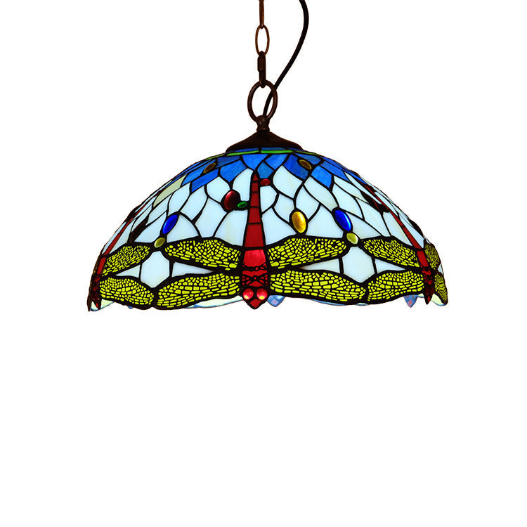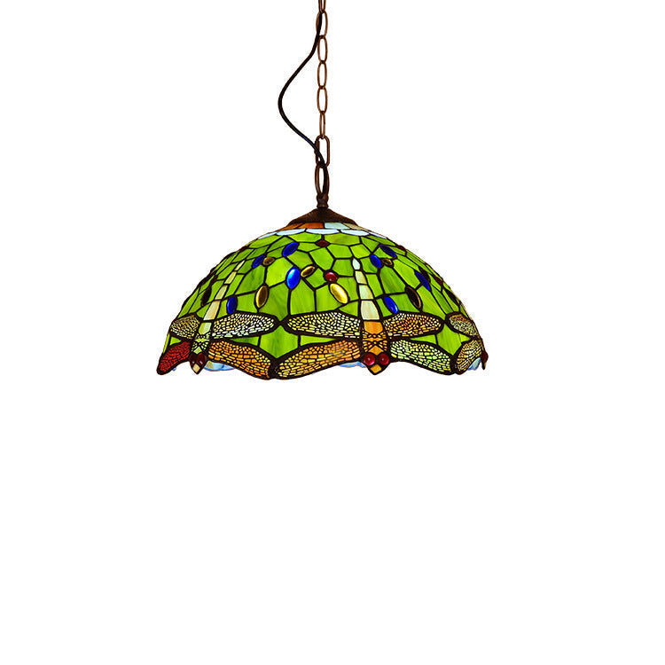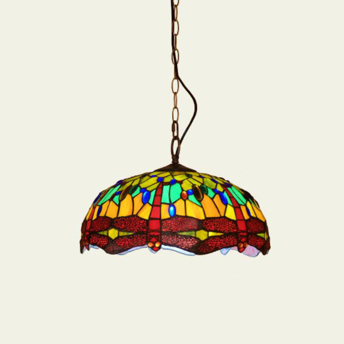 Tiffany European Dragonfly Stained Glass Dome 1-Light Pendant Light