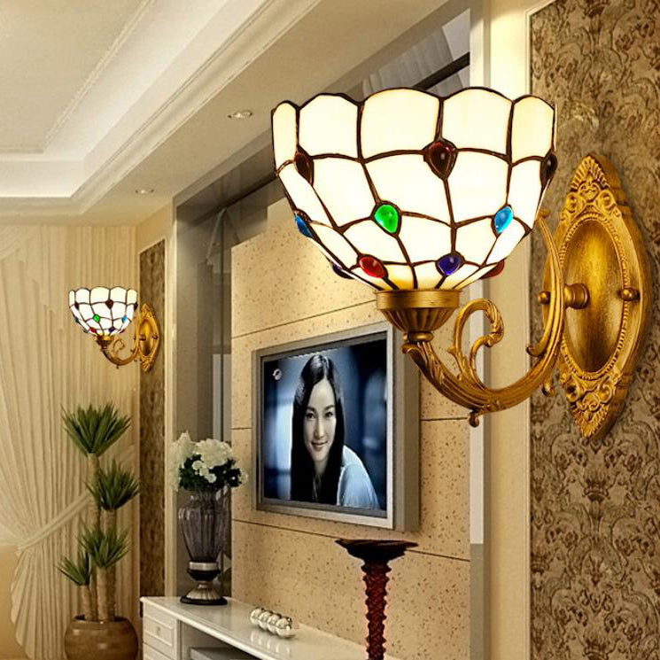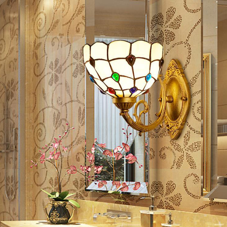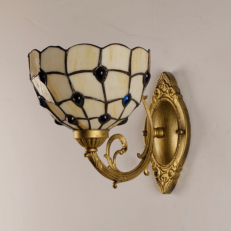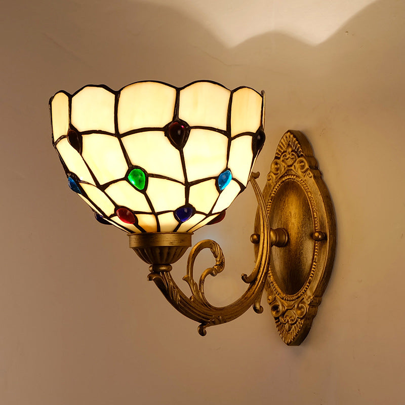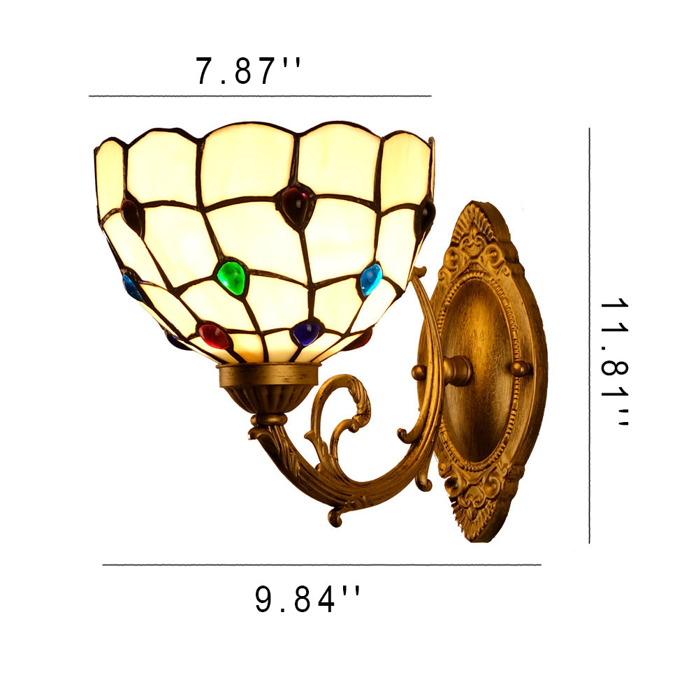 Tiffany European Gemstone Stained Glass Bowl 1-Light Wall Sconce Lamp