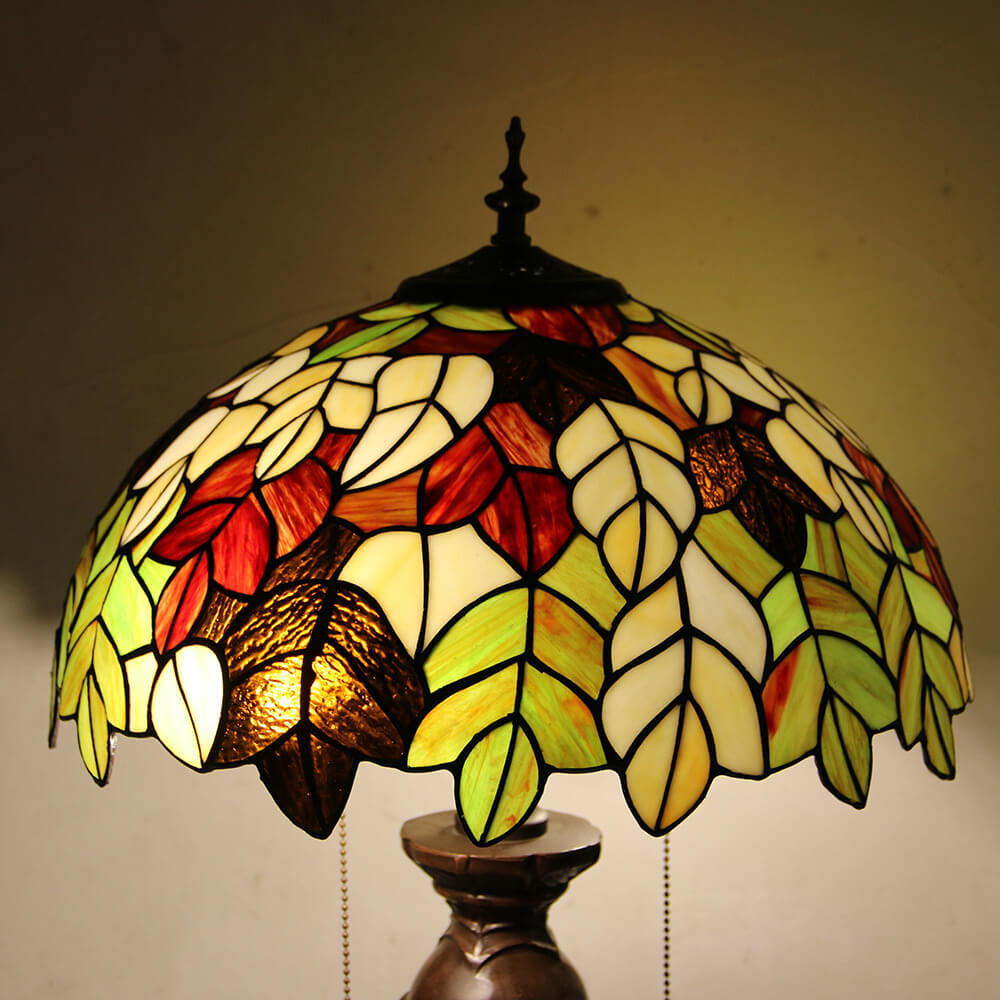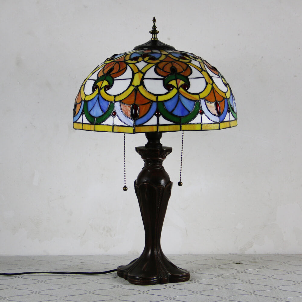 Tiffany European Retro Flowers Stained Glass Pull Cord 1-Light Table Lamp