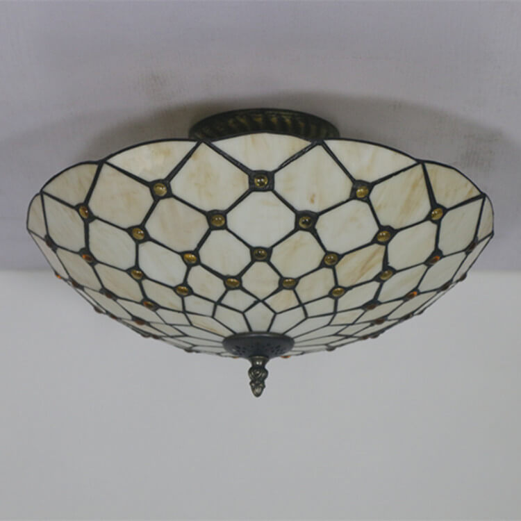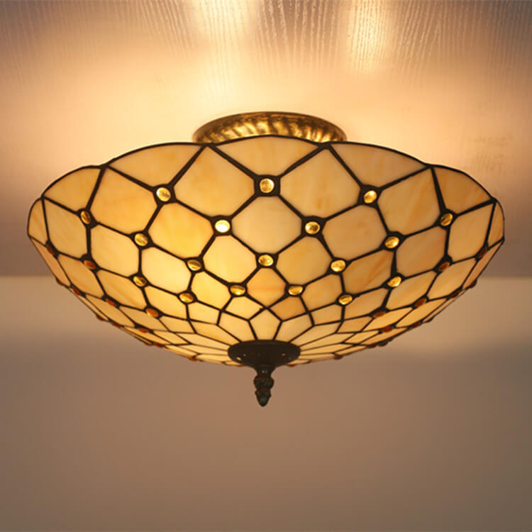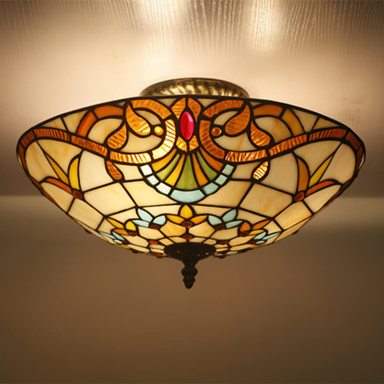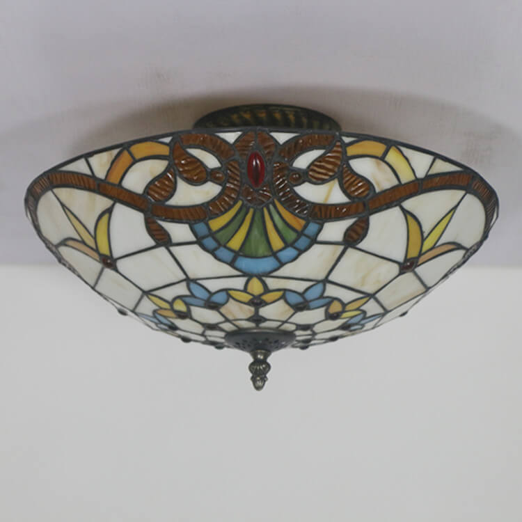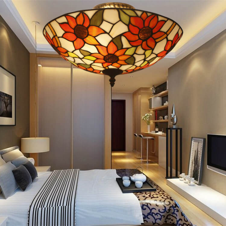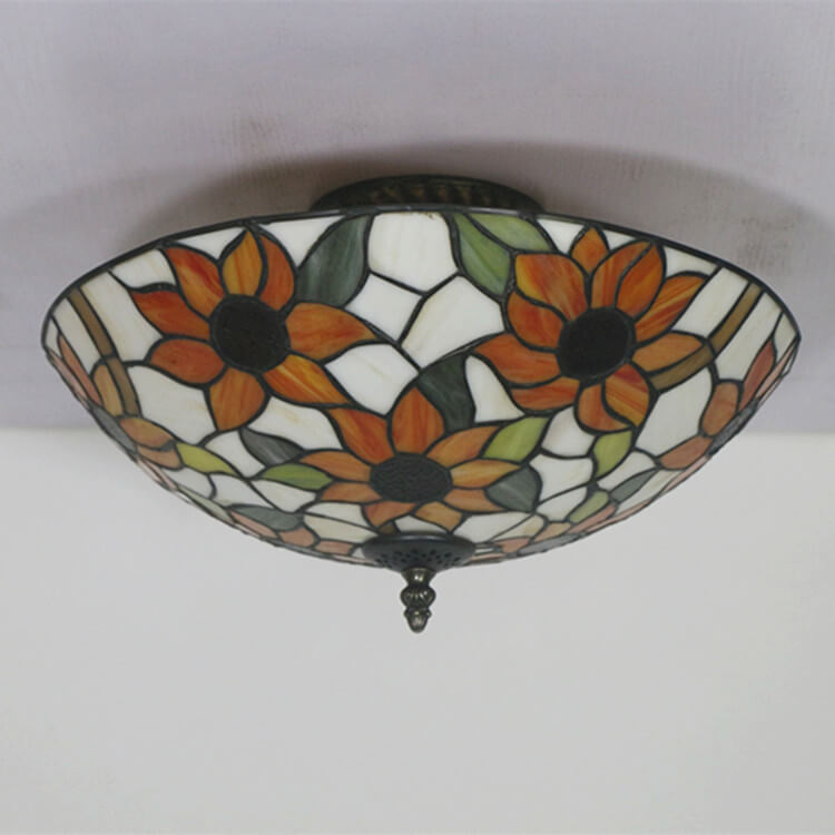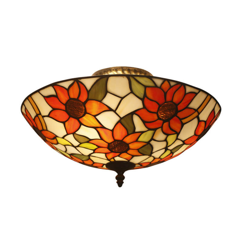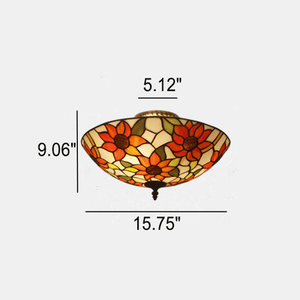 Tiffany European Sunflower Stained Glass Bowl 3-Light Flush Mount Ceiling Light