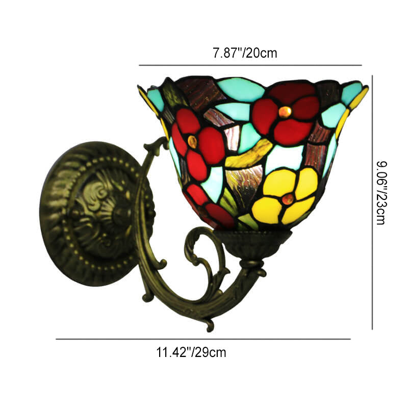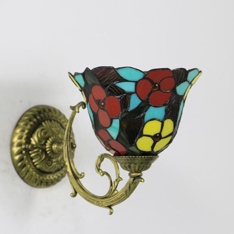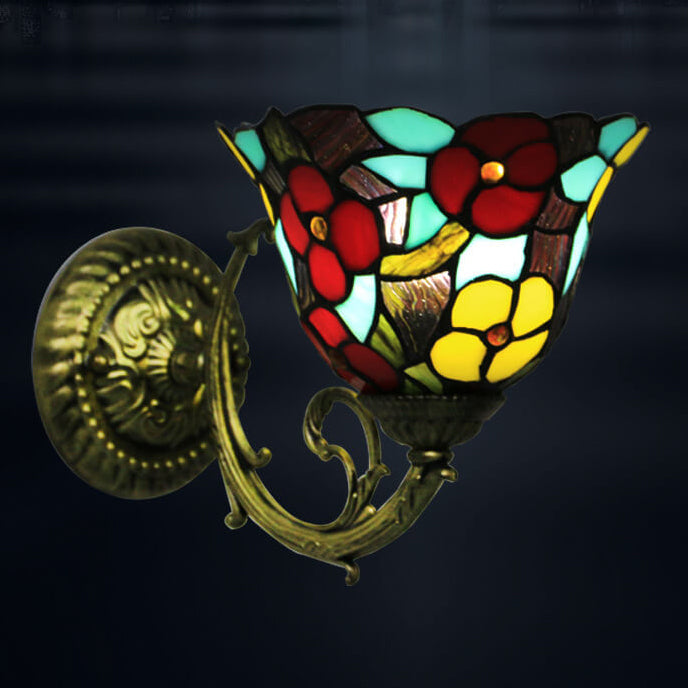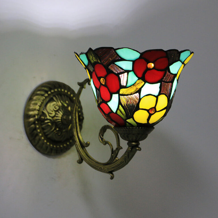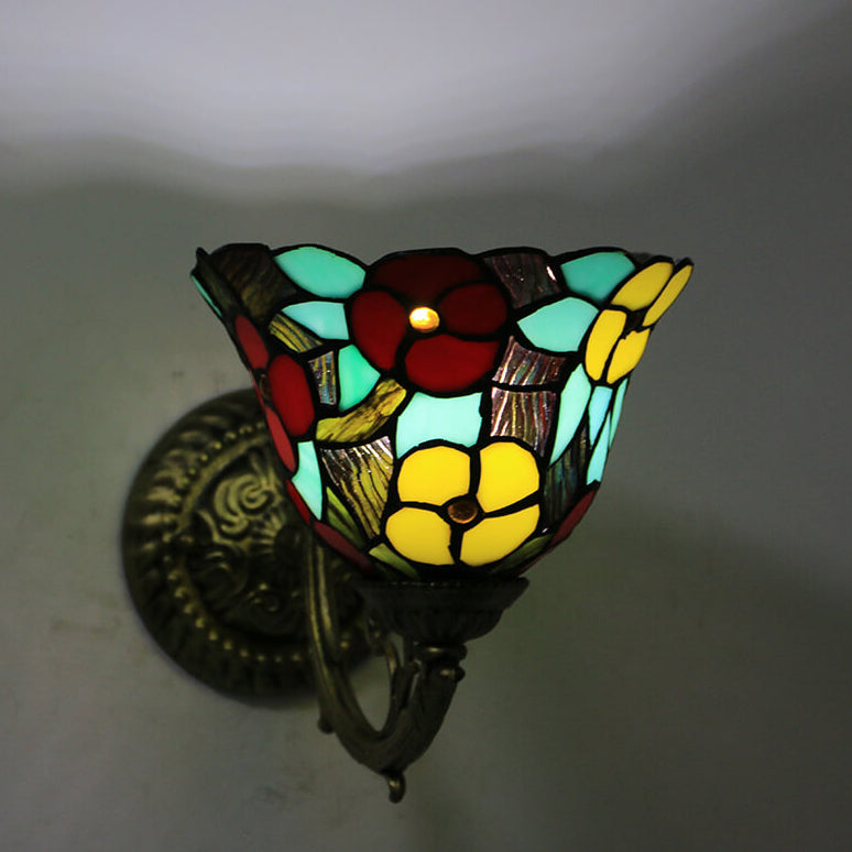 Tiffany Flower Cup Stained Glass Zinc Alloy 1-Light Wall Sconce Lamp
