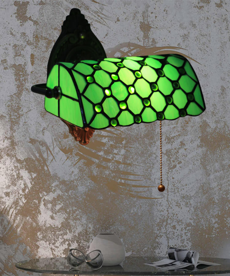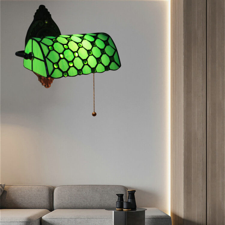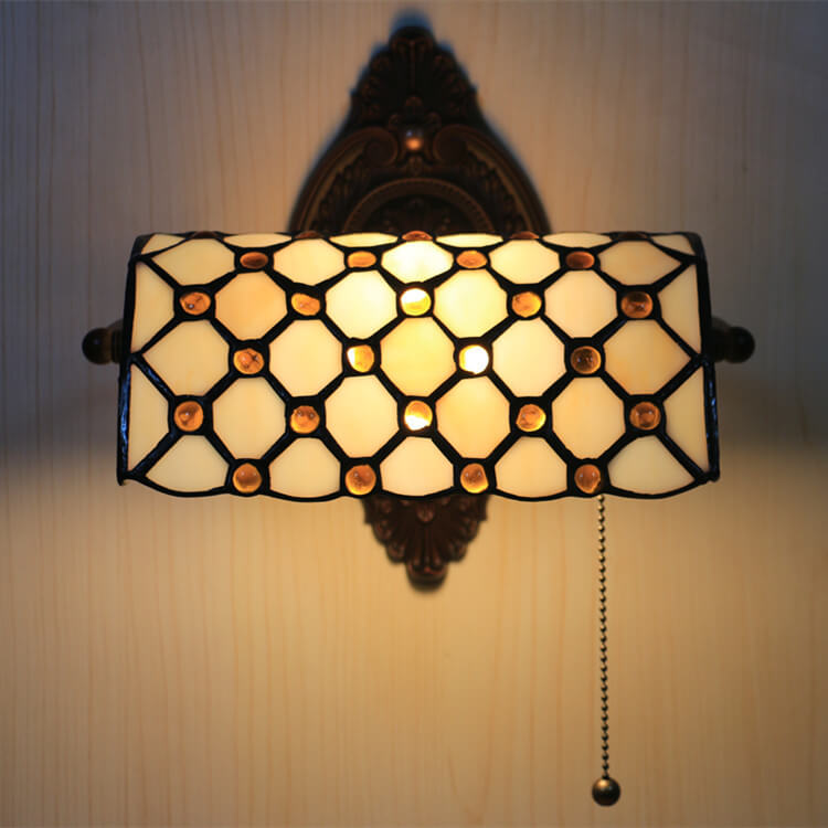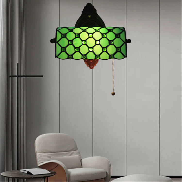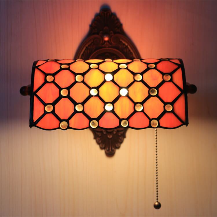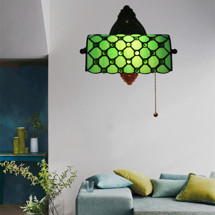 Tiffany Lucite Beads Stained Glass 1-Light Wall Sconce Lamp