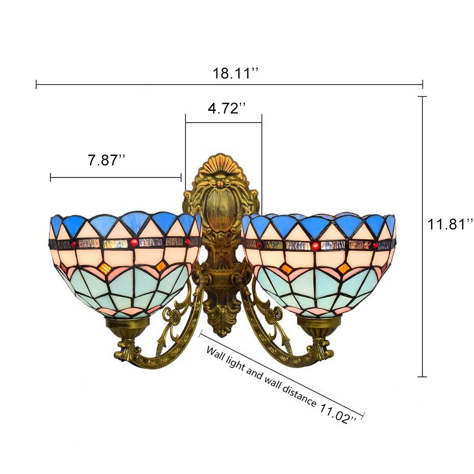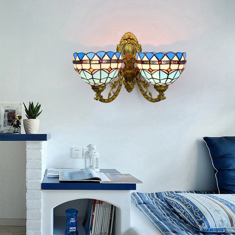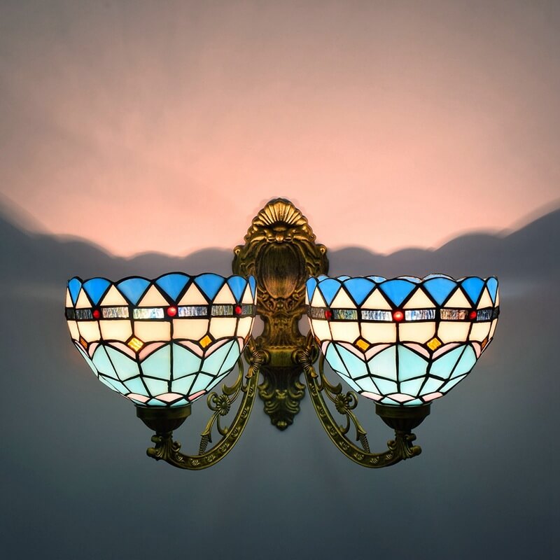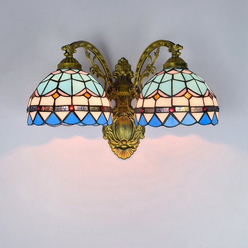 Tiffany Mediterranean Stained Glass 2-Light Wall Sconce