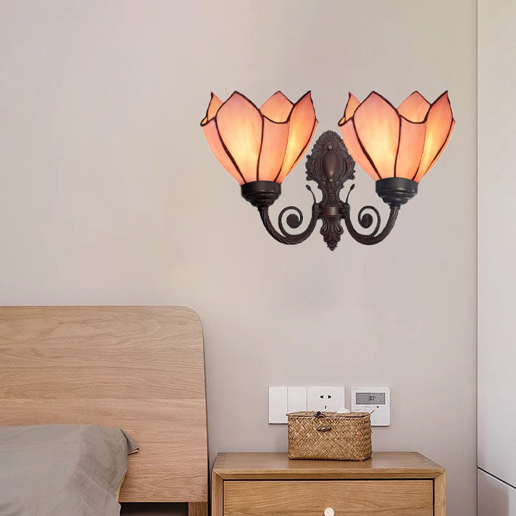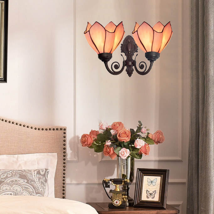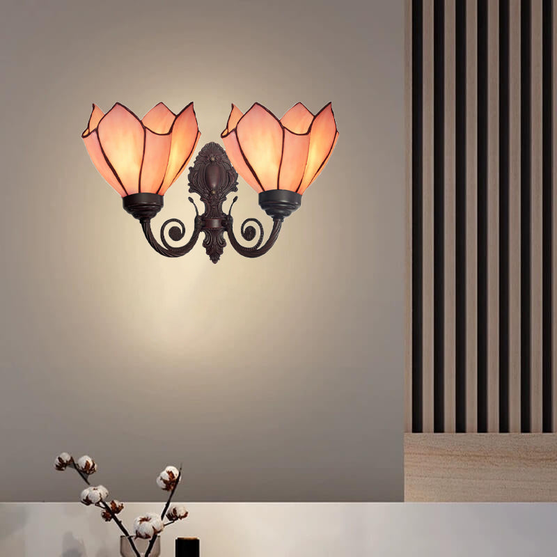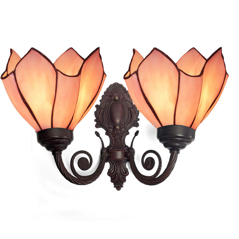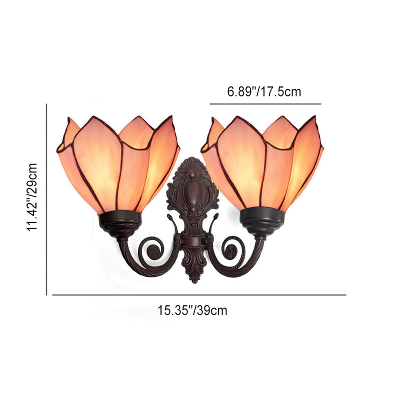 Tiffany Pastoral Stained Glass Double Head Lotus 2-Light Wall Sconce Lamp