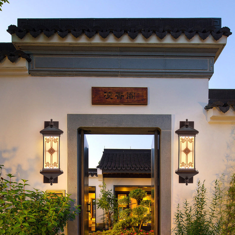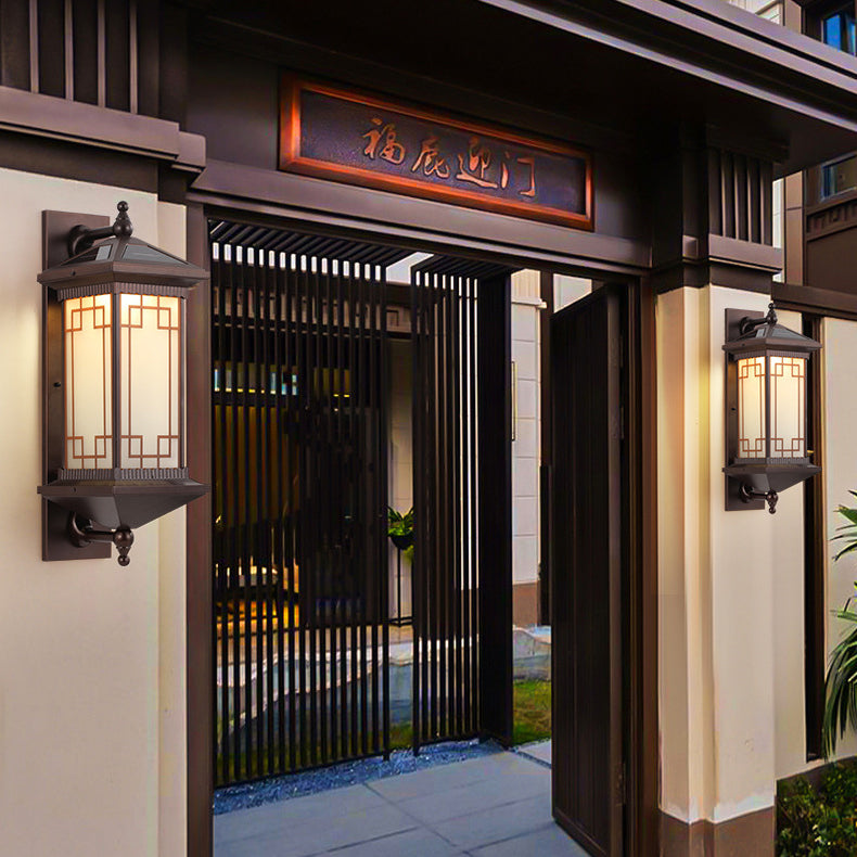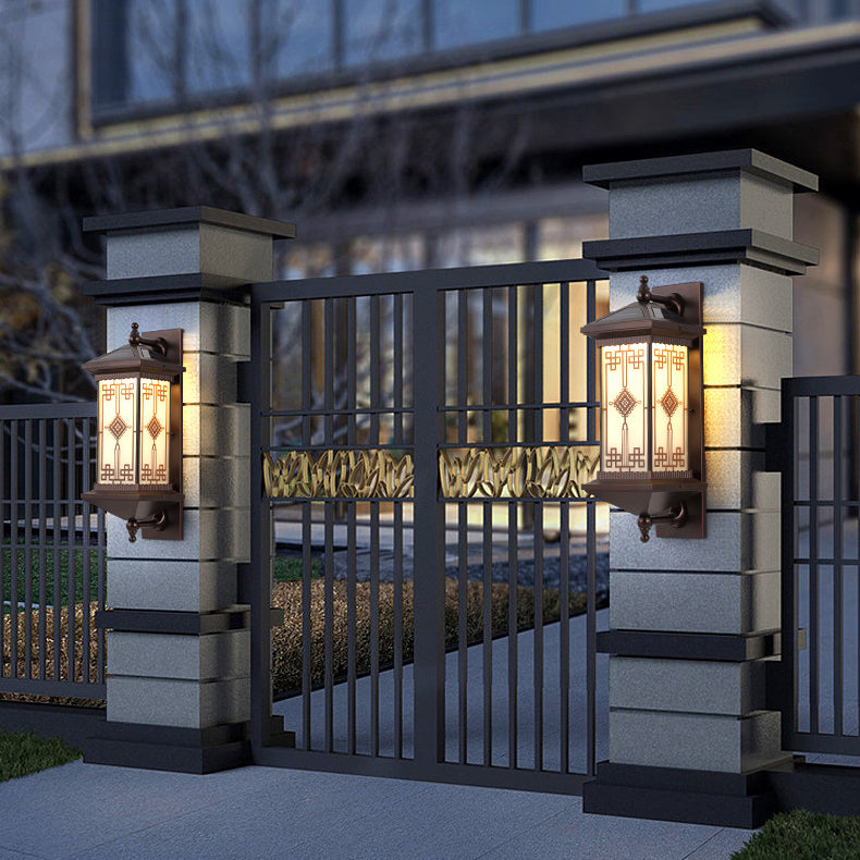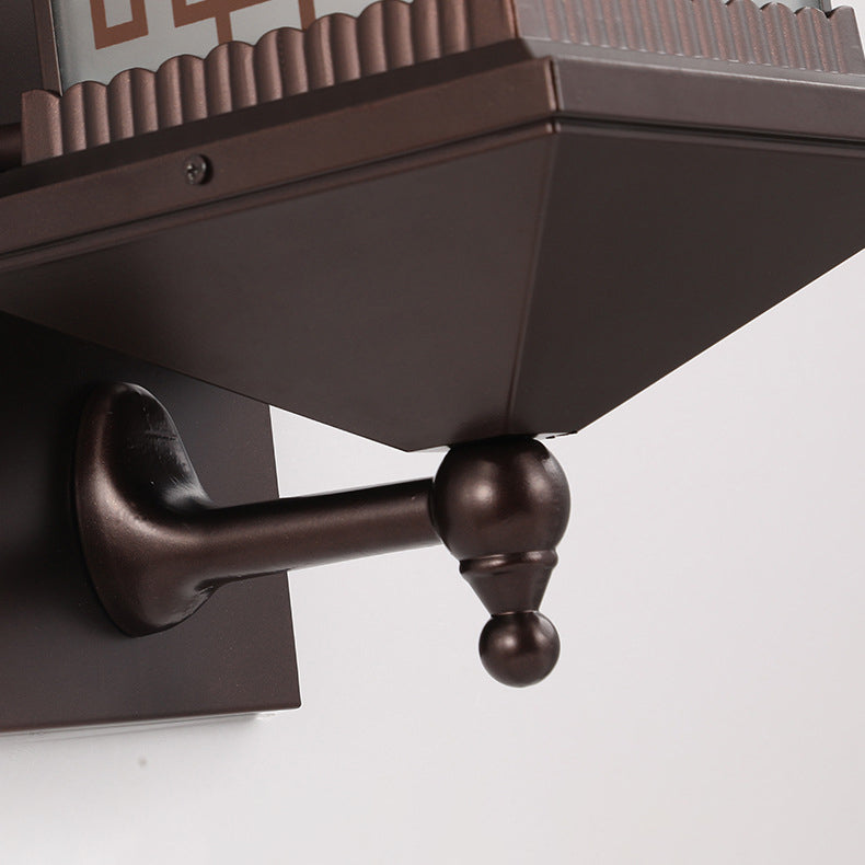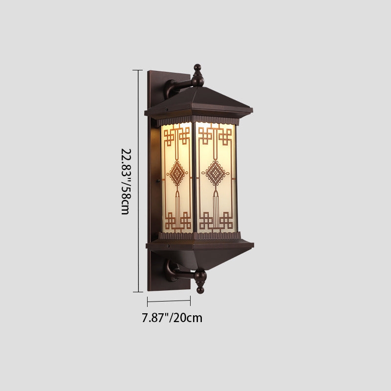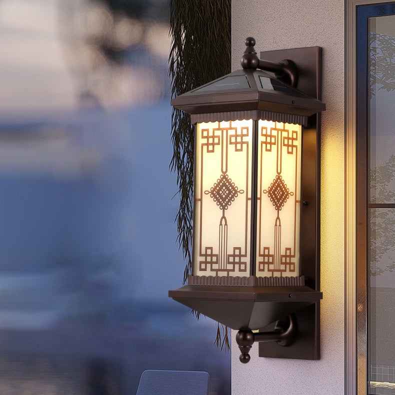 Traditional Chinese Aluminum Square Chinese Knot Pattern LED Waterproof Solar Wall Sconce Lamp For Outdoor Patio