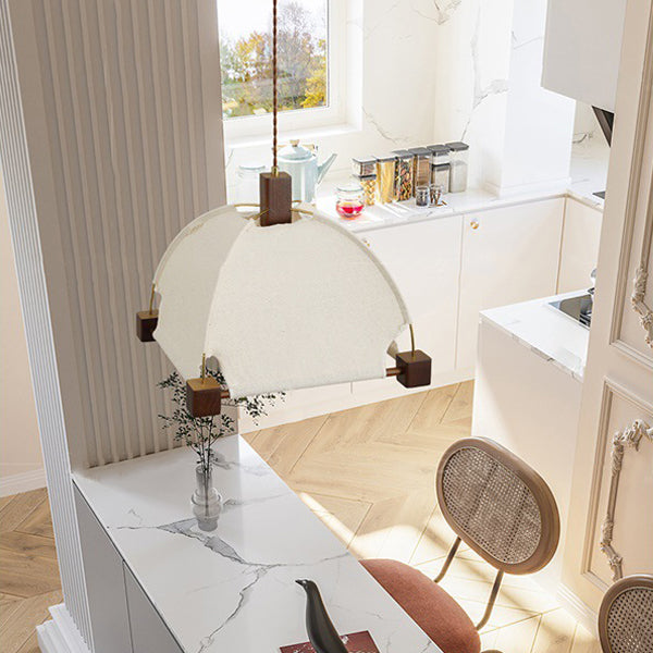 Traditional Chinese Arches Pavilion Shape Fabric Wood 1-Light Pendant Light For Living Room