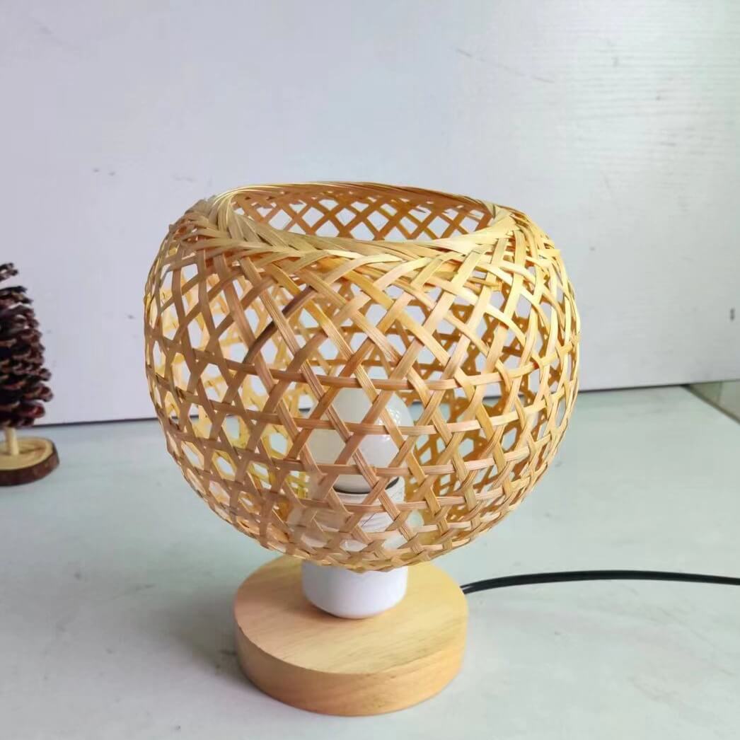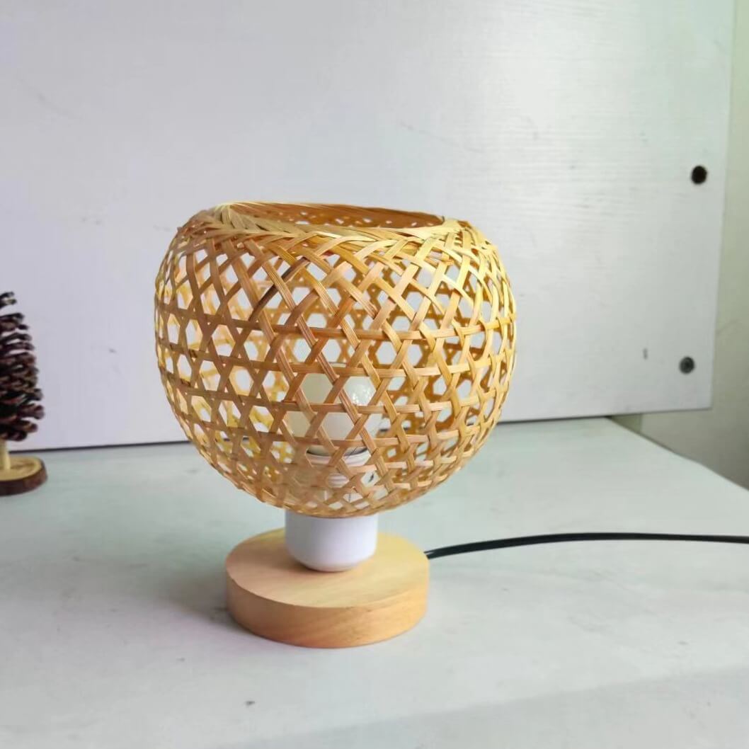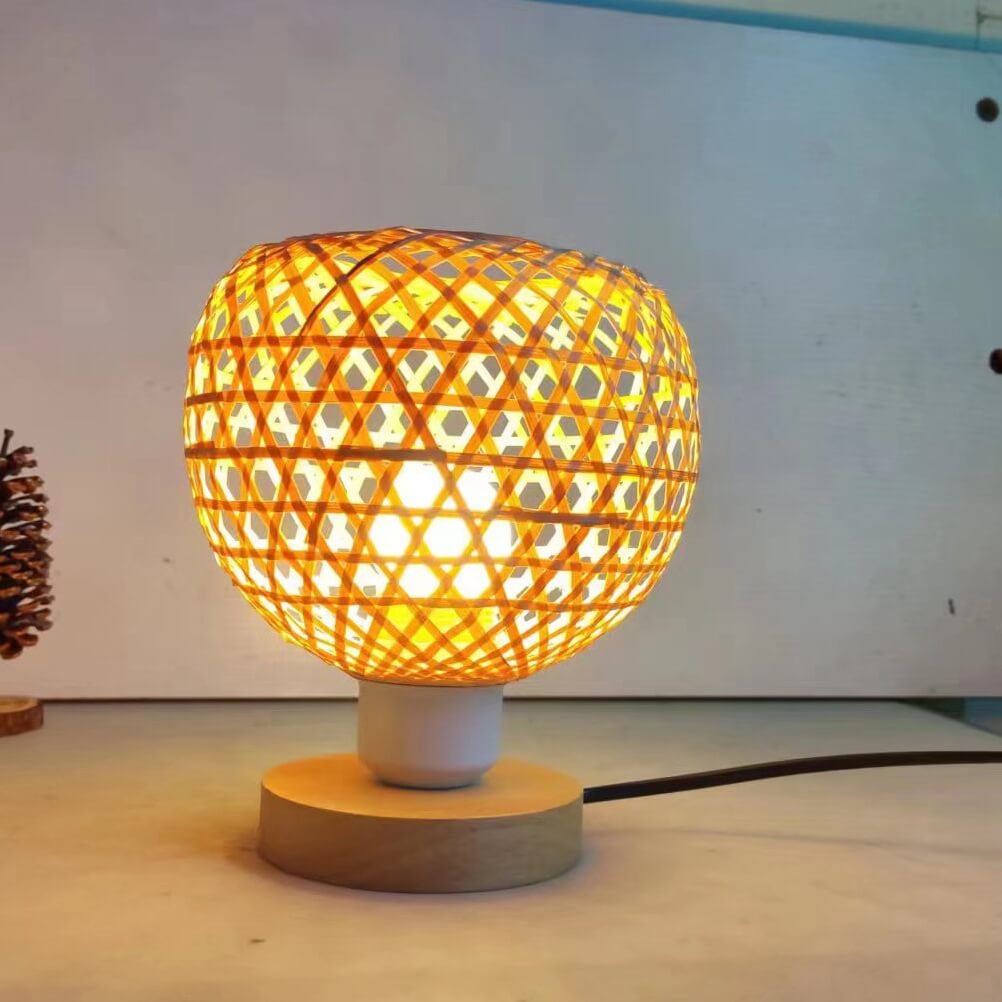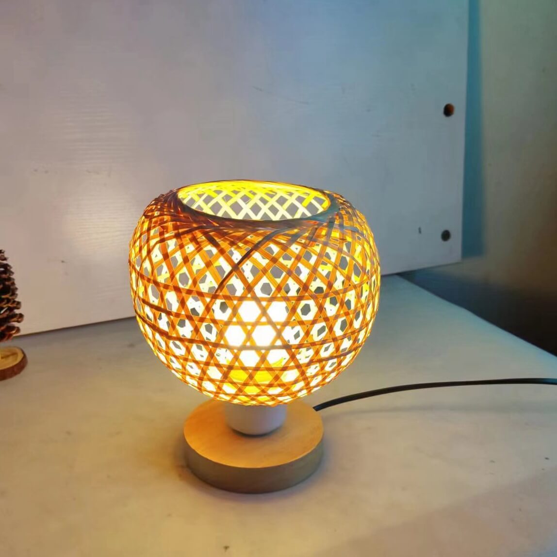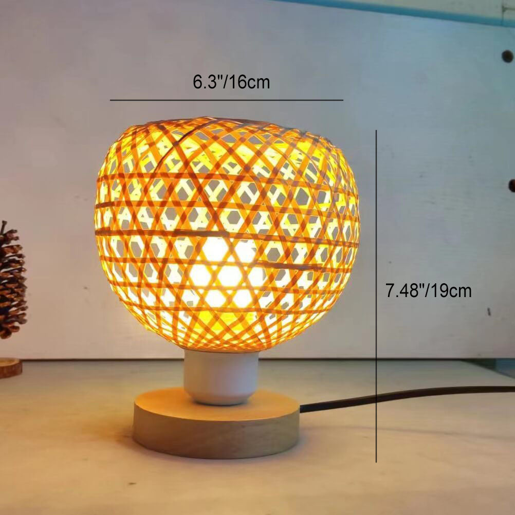 Traditional Chinese Bamboo Weaving Wood Cage Shape 1-Light Table Lamp For Study