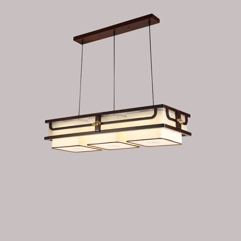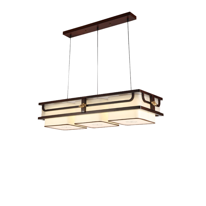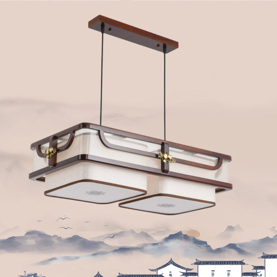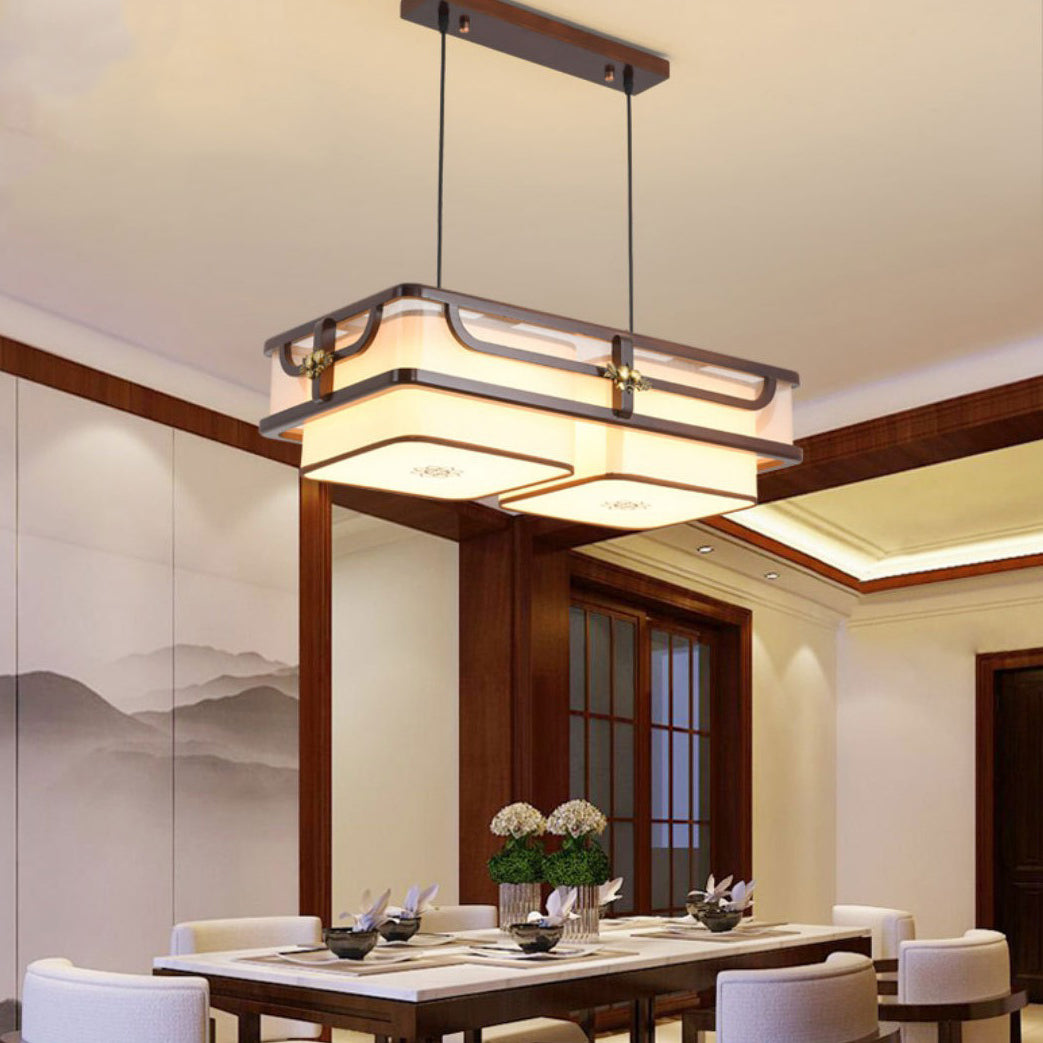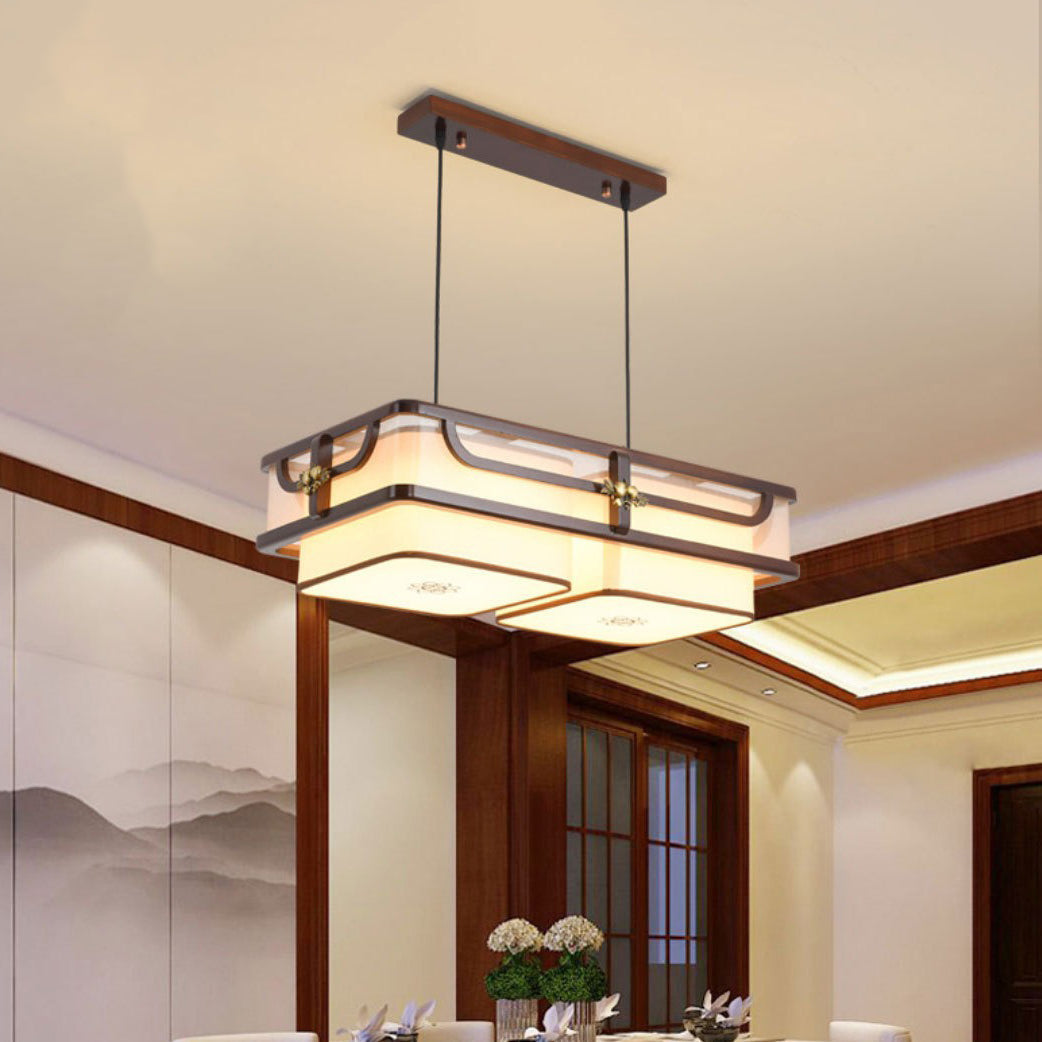 Traditional Chinese Begonia Wood Brass Acrylic Square Rectangular LED Chandeliers Island Light For Dining Room