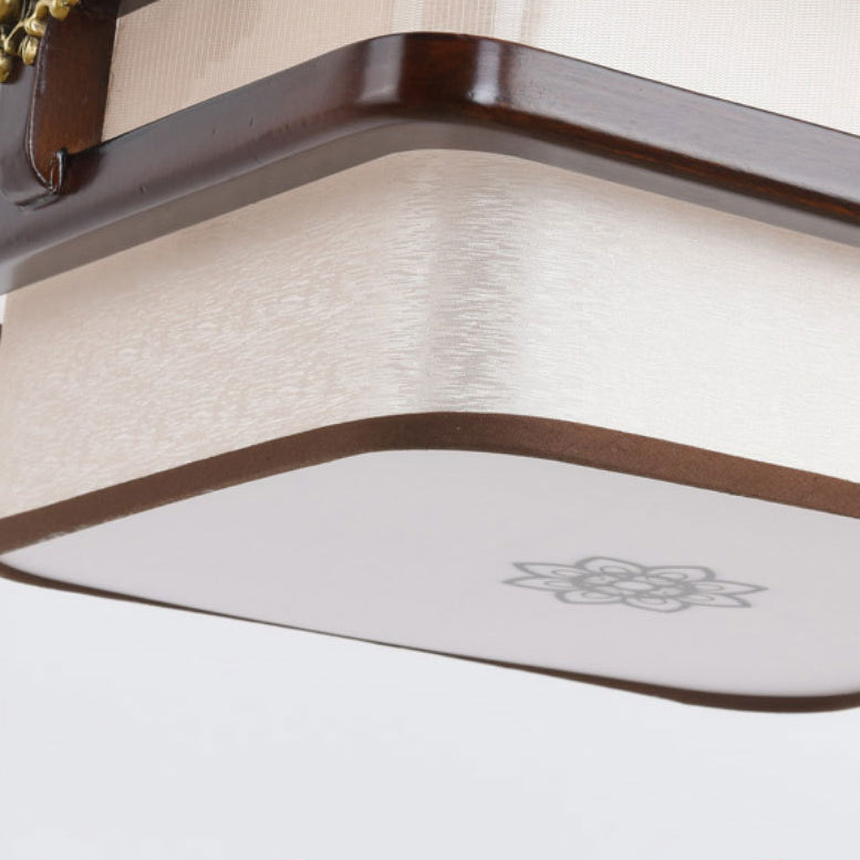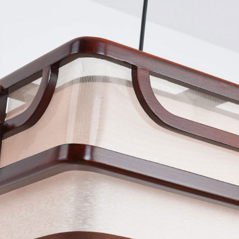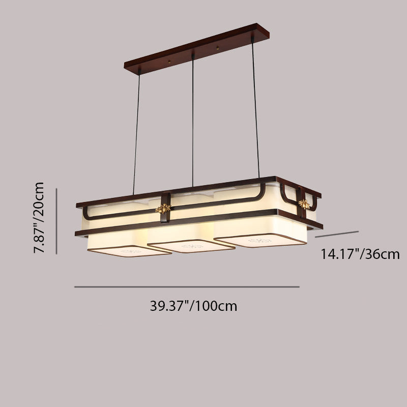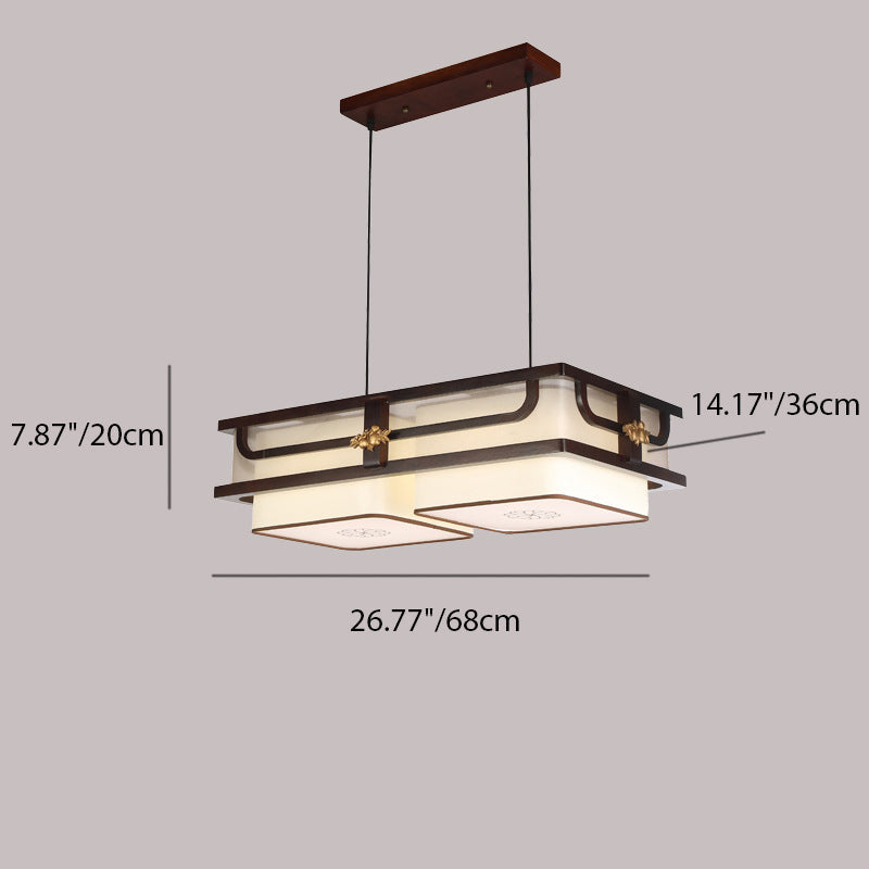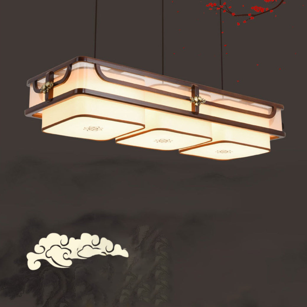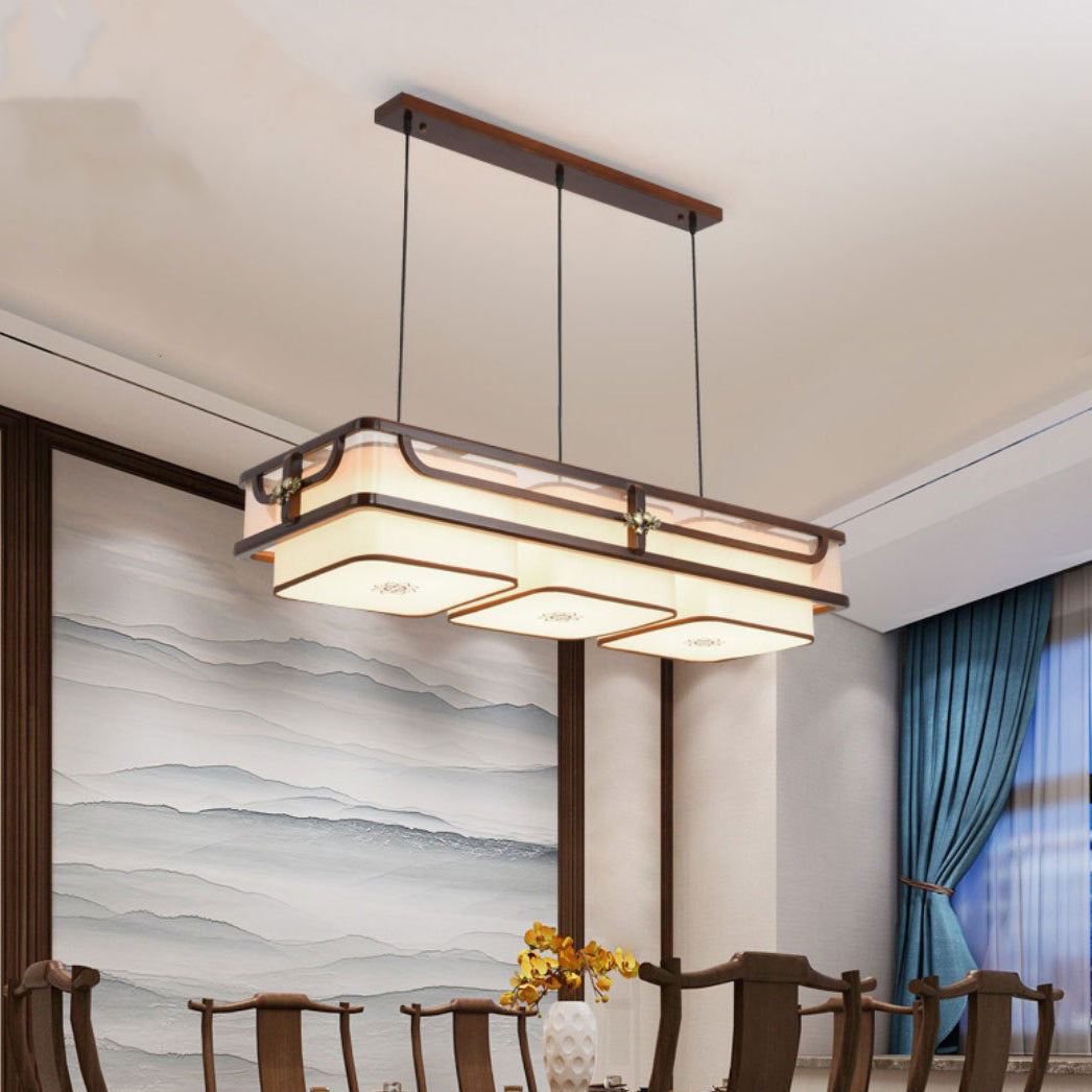 Traditional Chinese Begonia Wood Brass Acrylic Square Rectangular LED Chandeliers Island Light For Dining Room