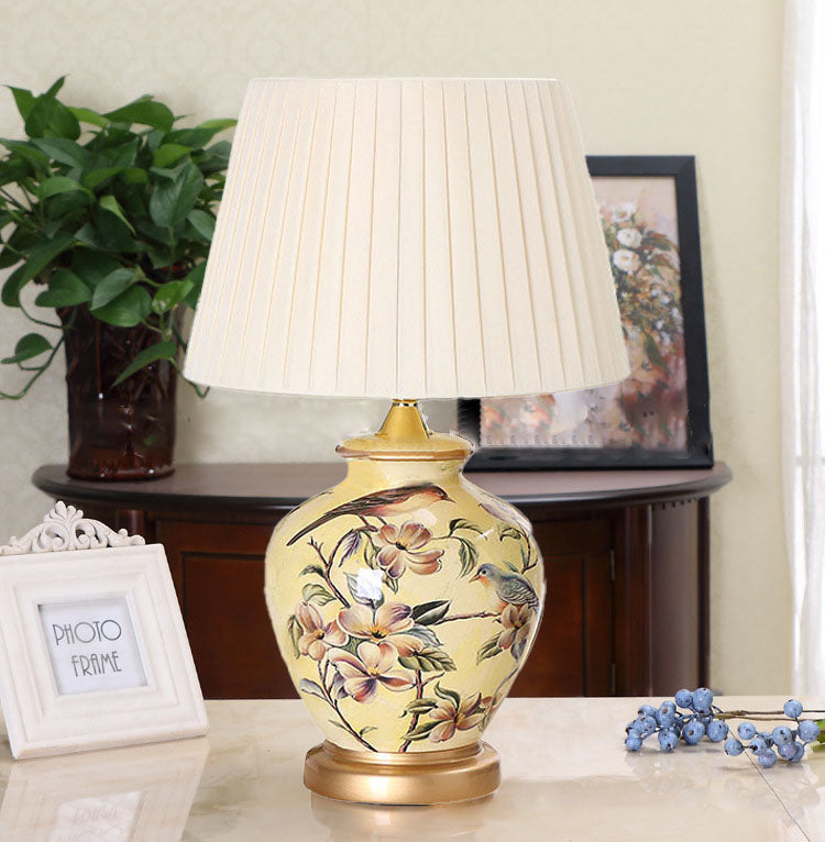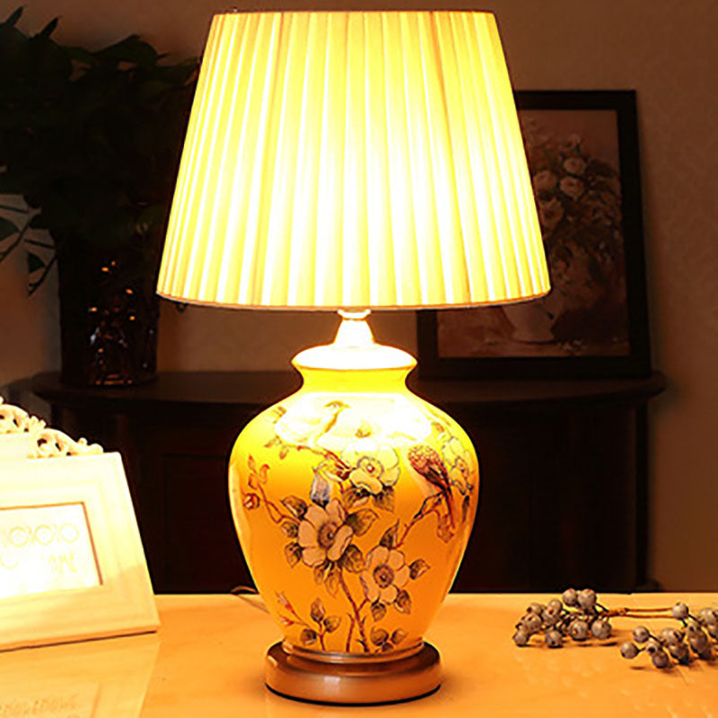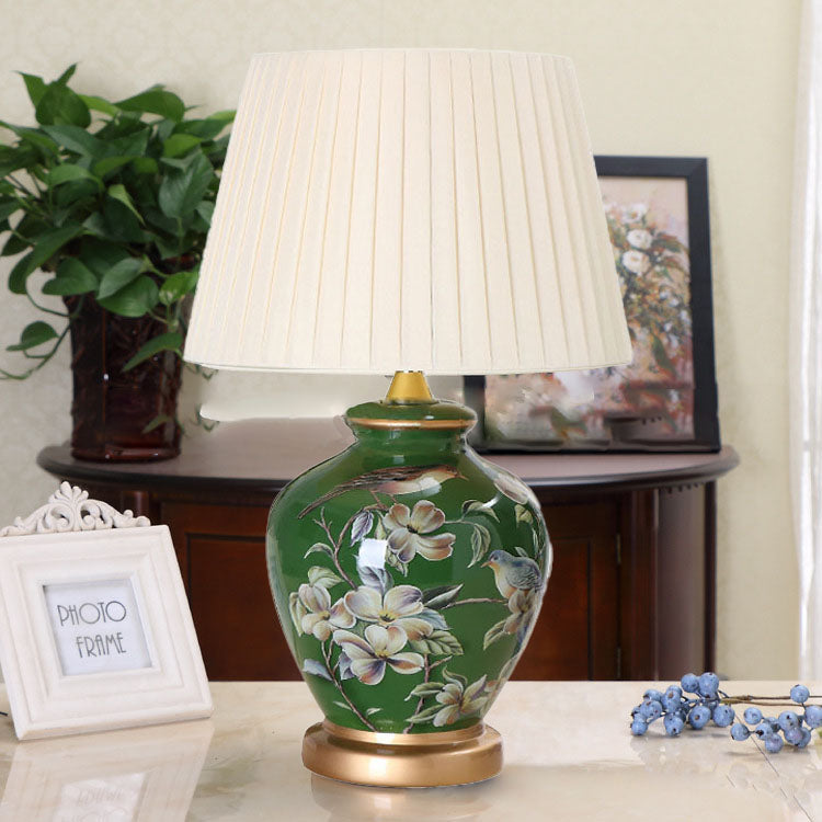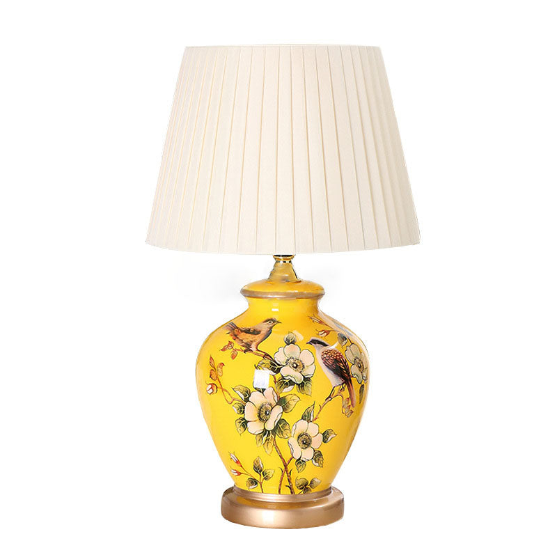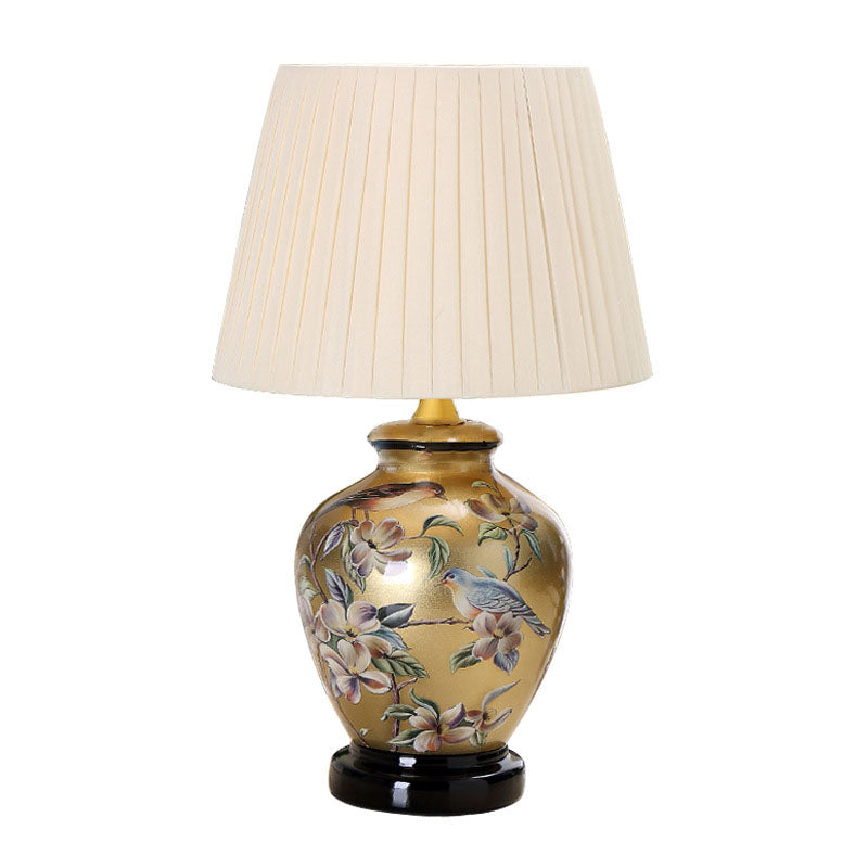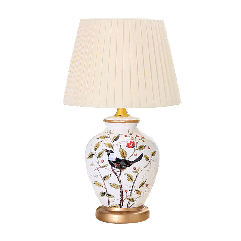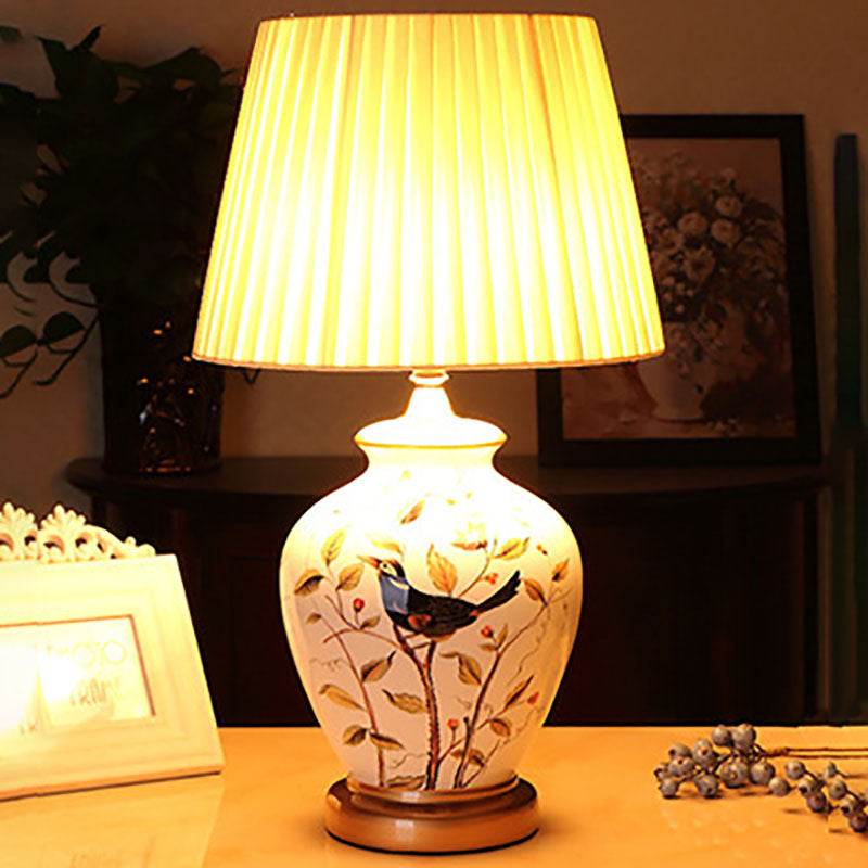 Traditional Chinese Bird Vase Base Ceramic Fabric 1-Light Table Lamp For Living Room