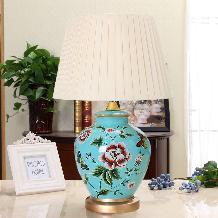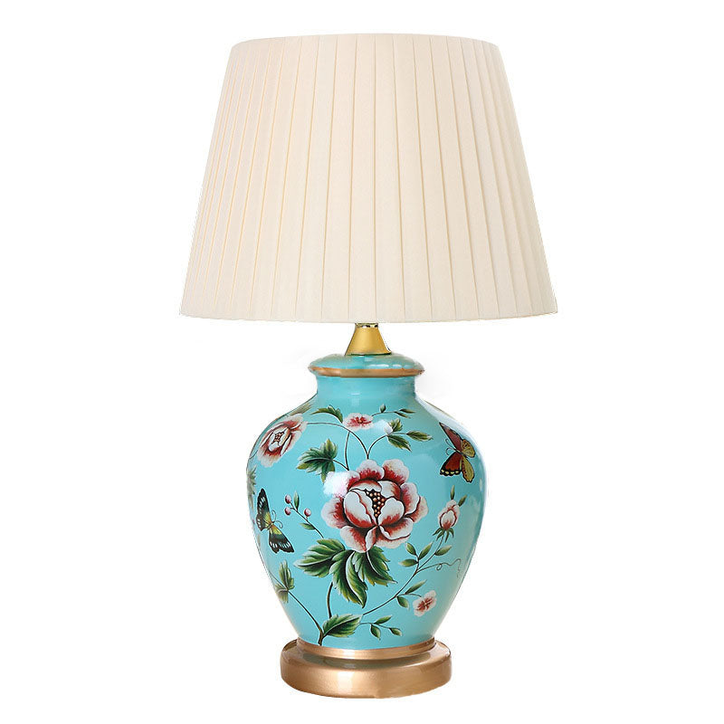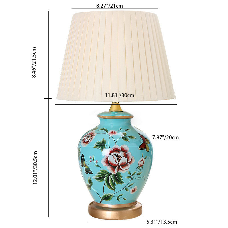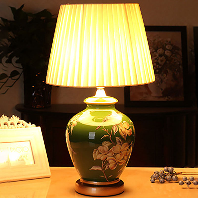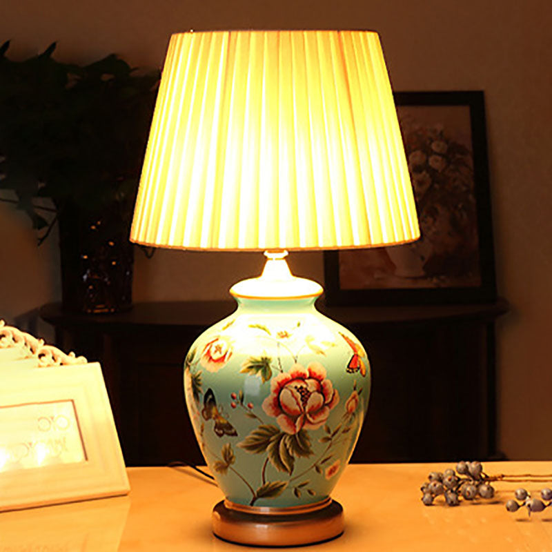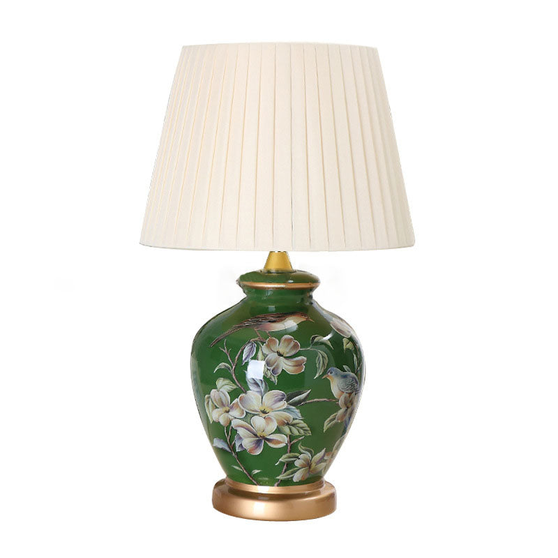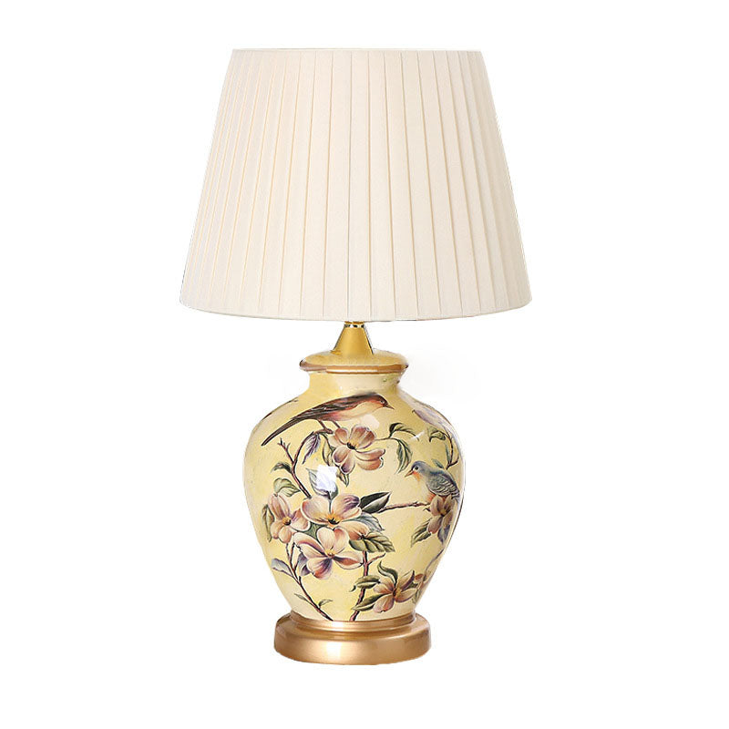 Traditional Chinese Bird Vase Base Ceramic Fabric 1-Light Table Lamp For Living Room