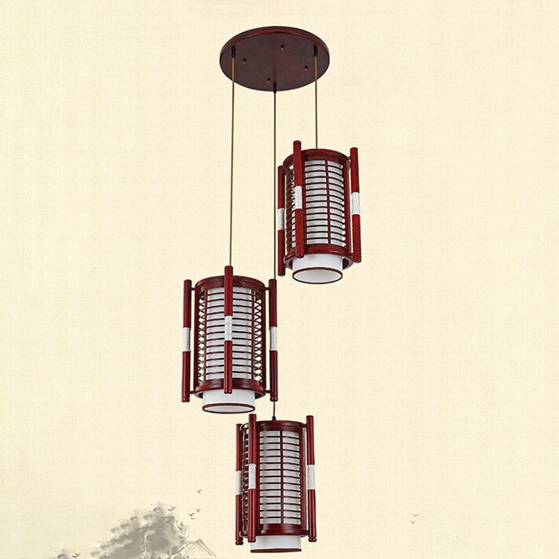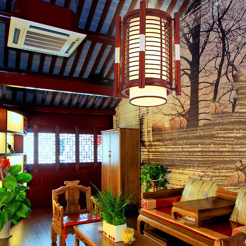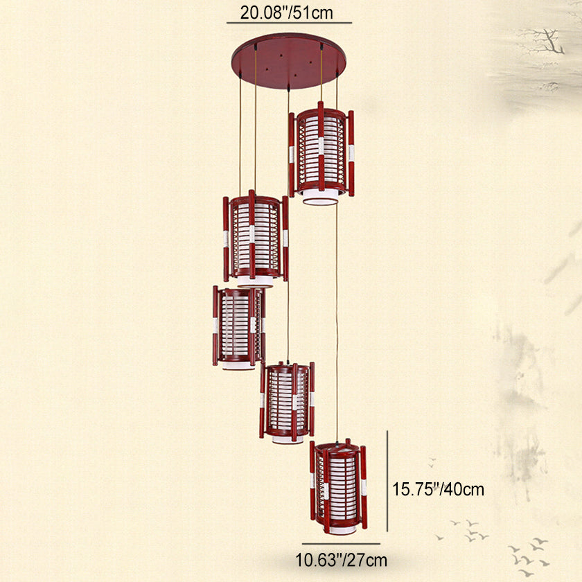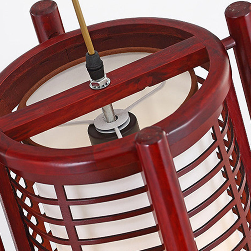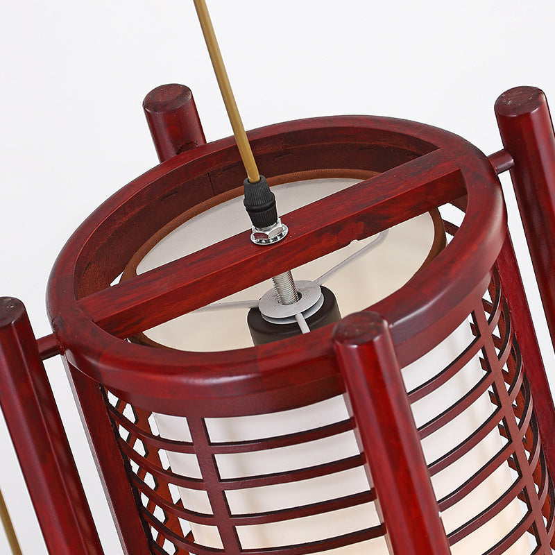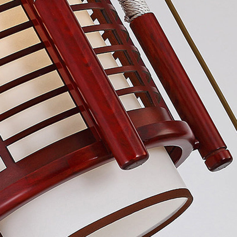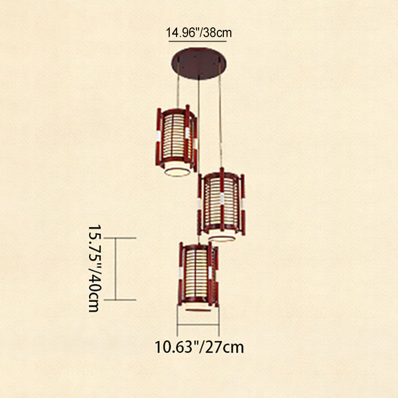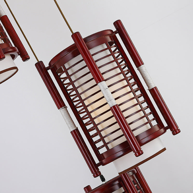 Traditional Chinese Camphor Pine Wood Imitation Sheepskin Cylinder Fence 1/3/5 Light Pendant Light For Dining Room