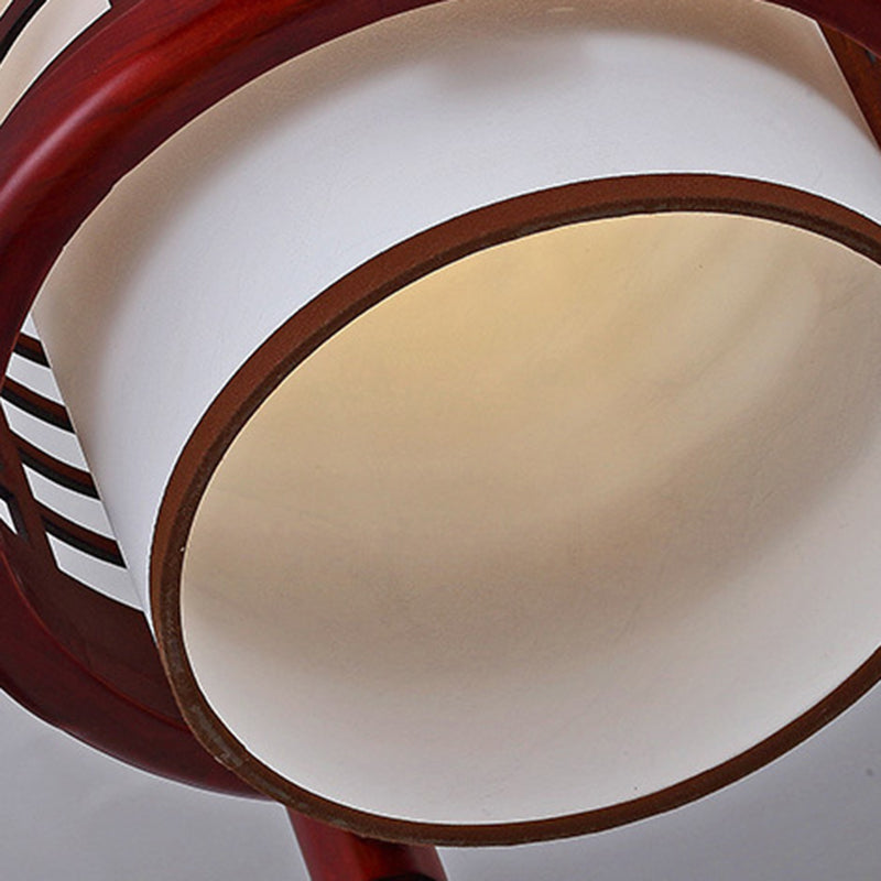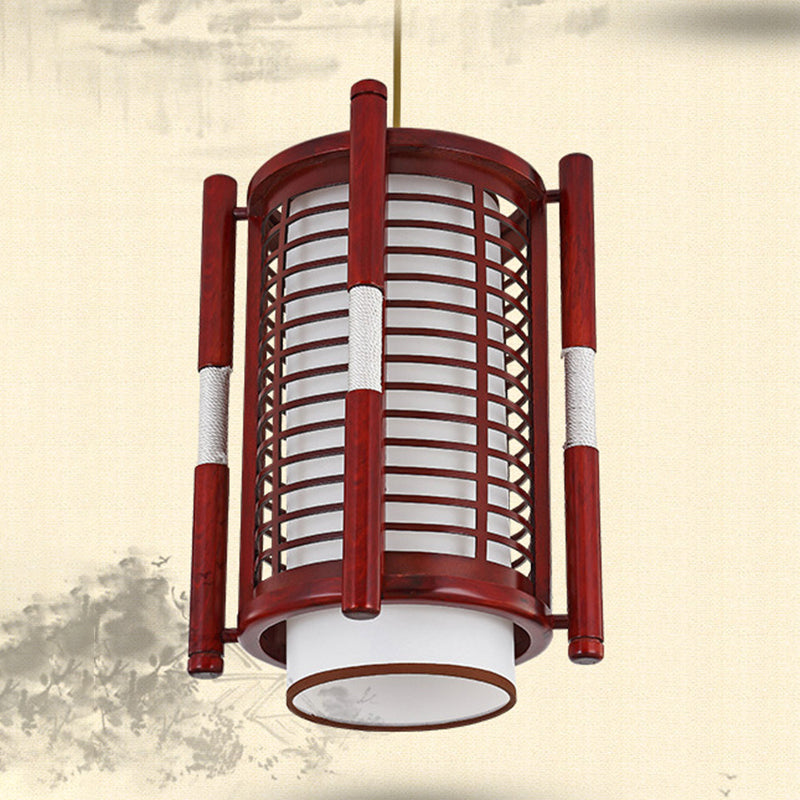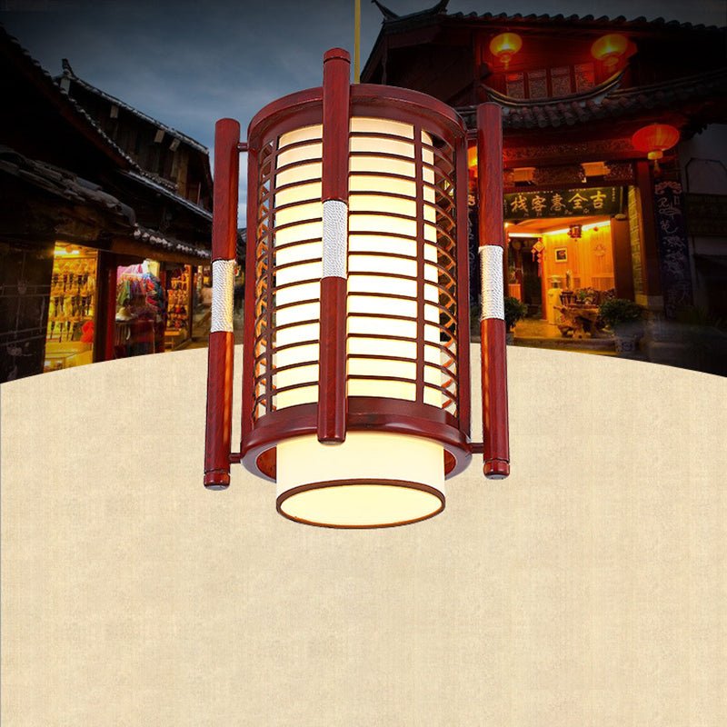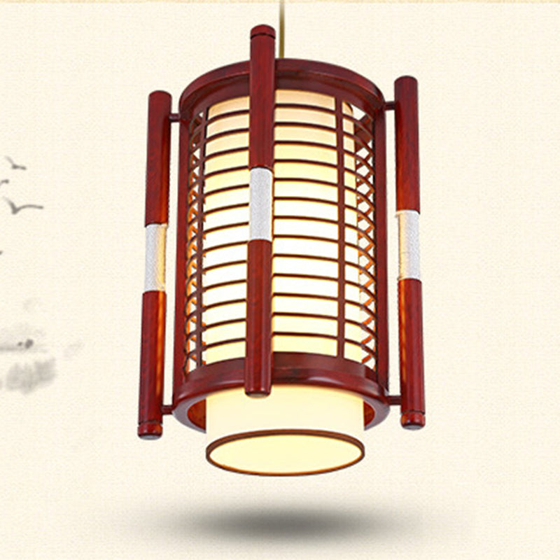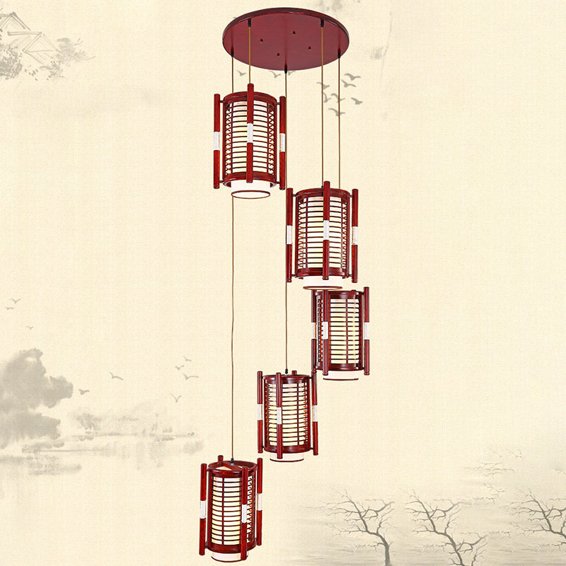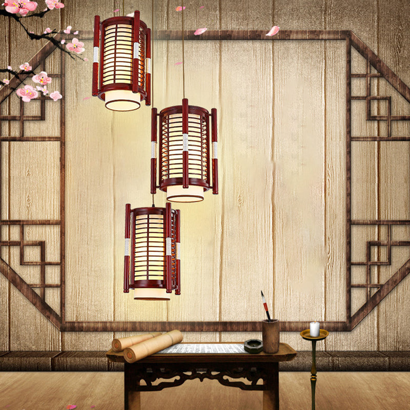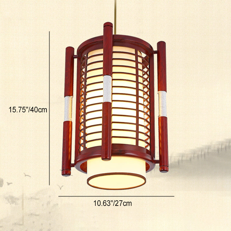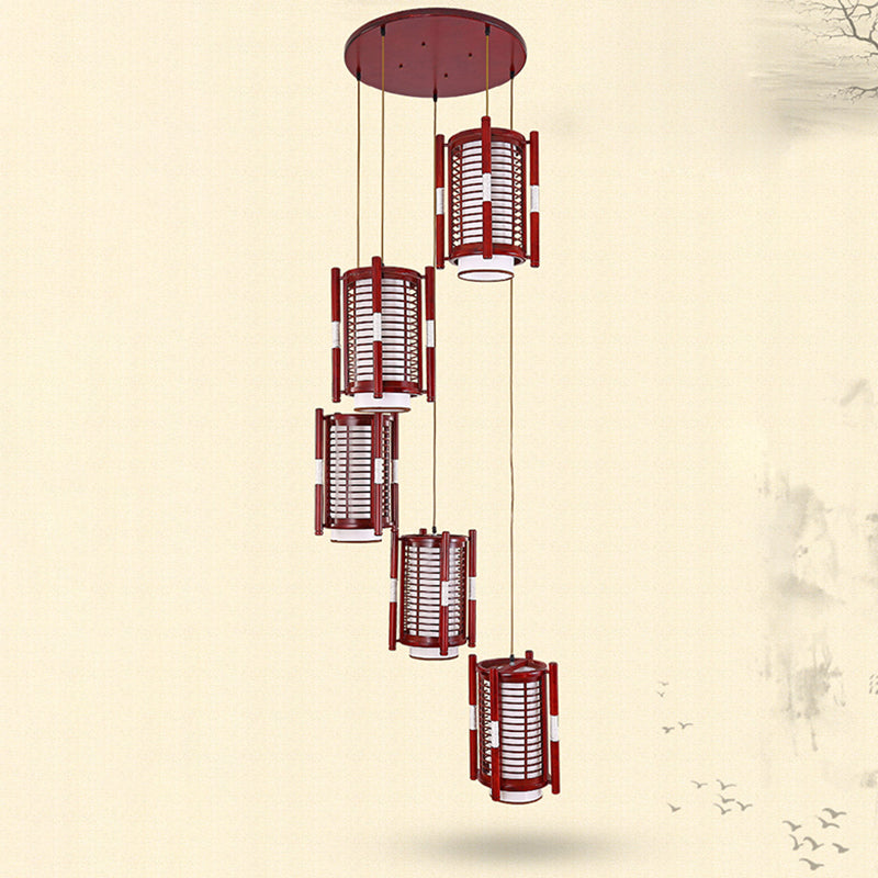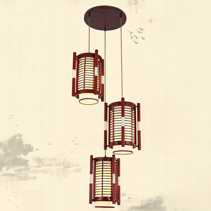 Traditional Chinese Camphor Pine Wood Imitation Sheepskin Cylinder Fence 1/3/5 Light Pendant Light For Dining Room