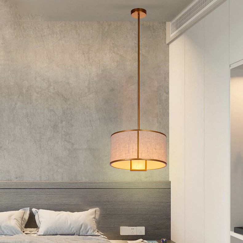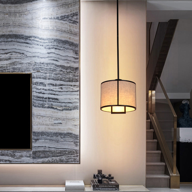 Traditional Chinese Carbon Steel & Fabric Cylinder Pendant Light 1-Light For Bedroom & Living Room