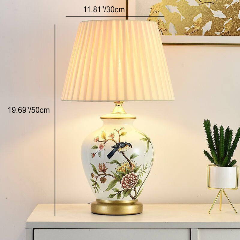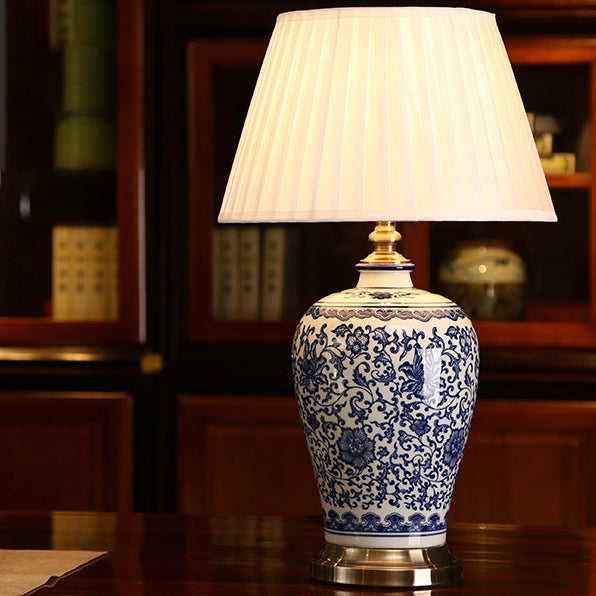 Traditional Chinese Ceramic Vase Cone Fabric 1-Light Table Lamp For Home Office