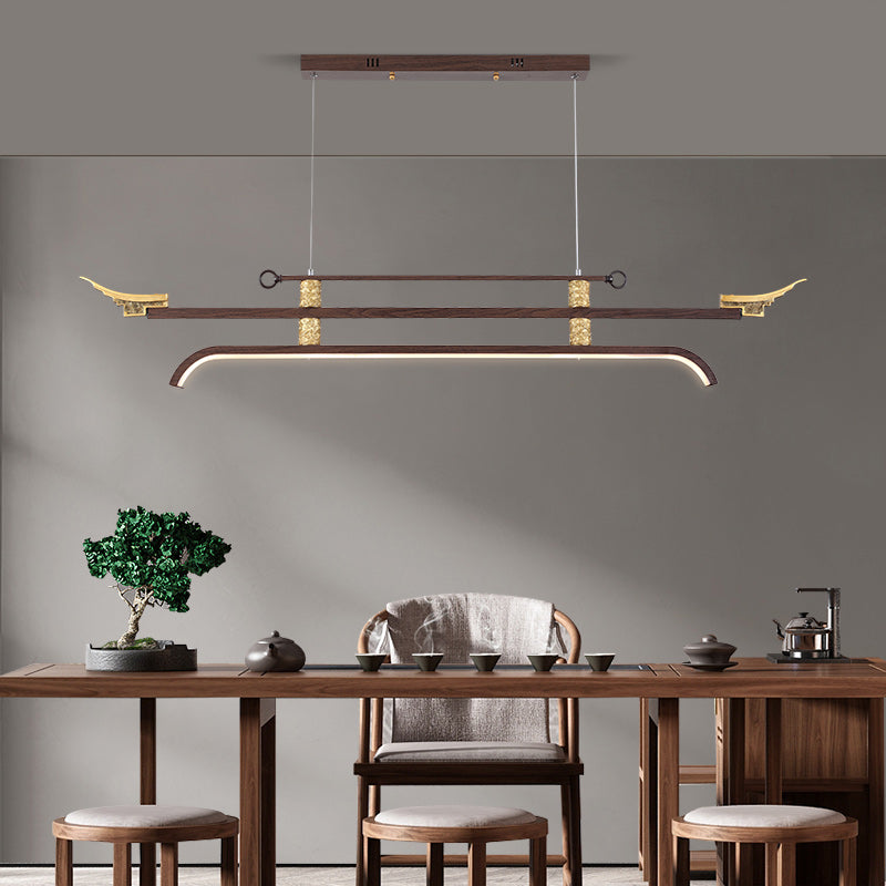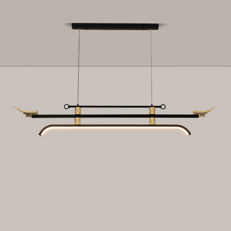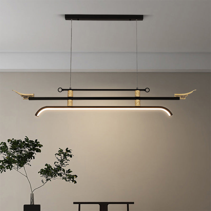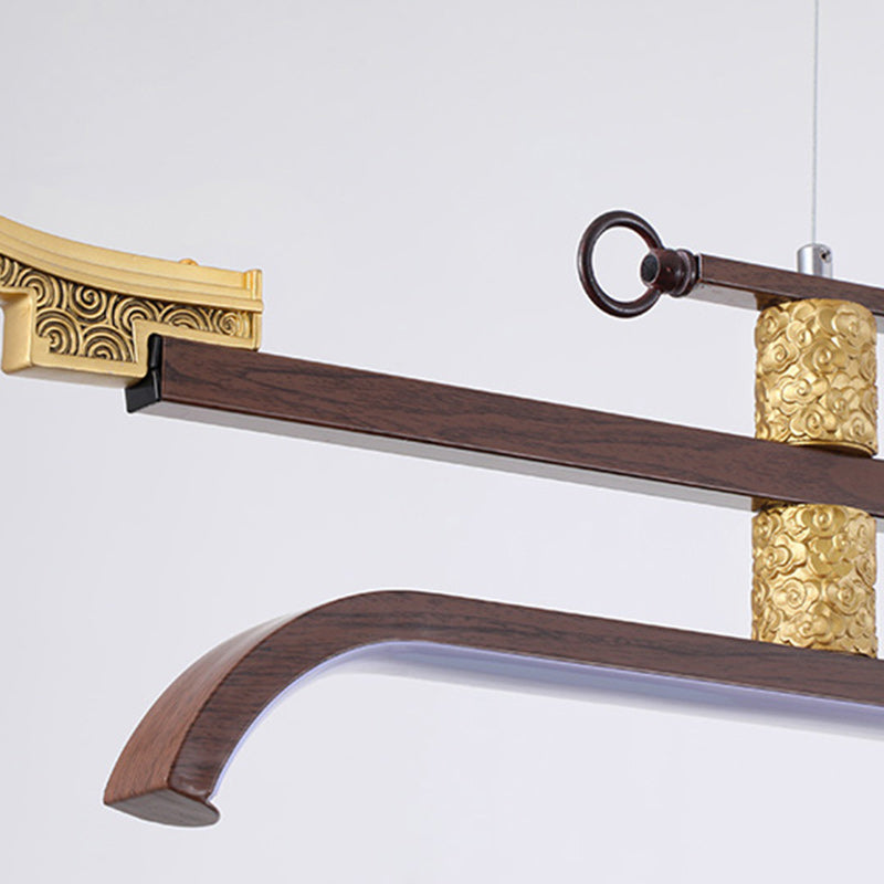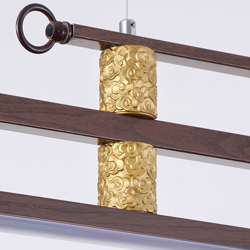 Traditional Chinese Cloud Carving Resin Decorative Iron Linear LED Island Light Pendant Light For Living Room