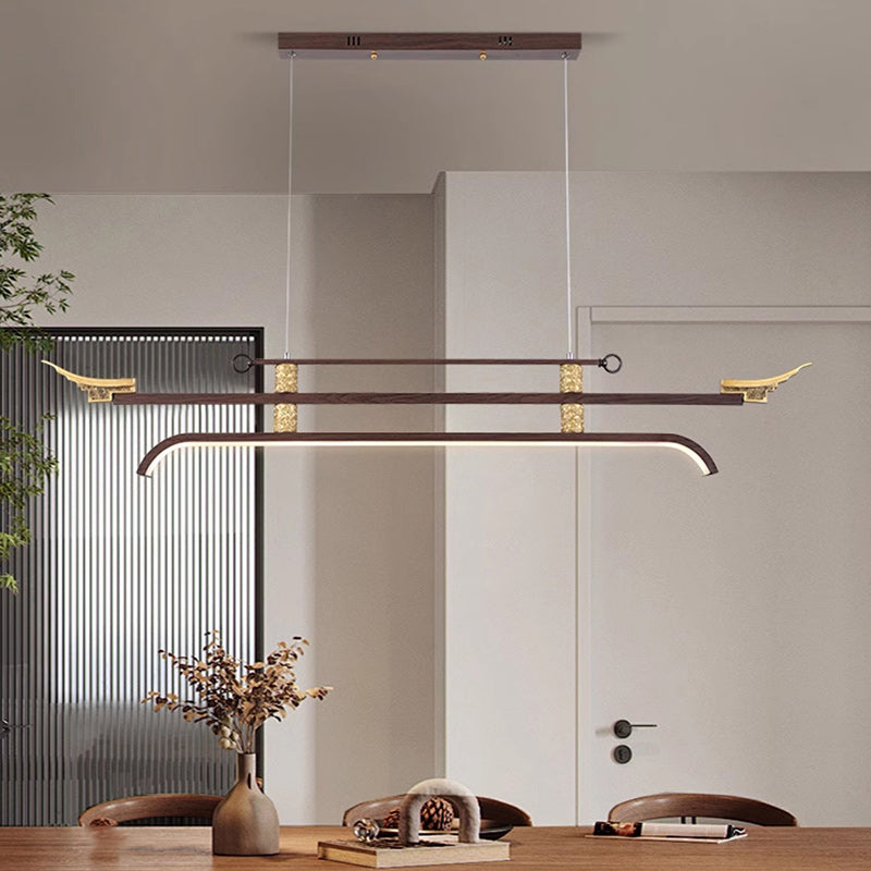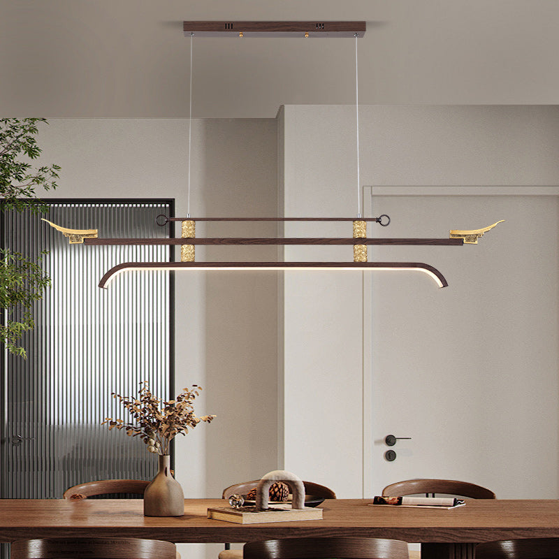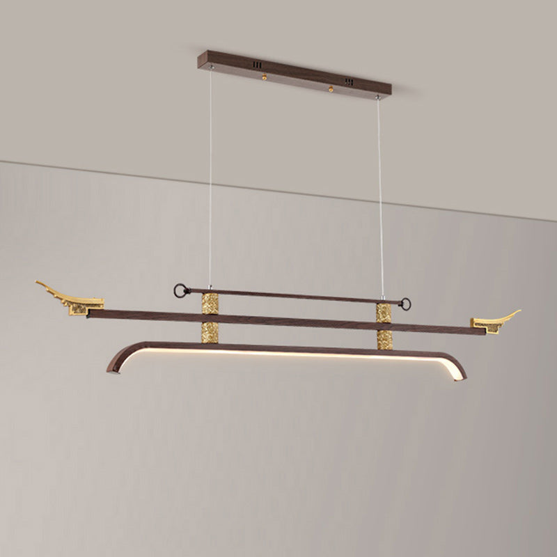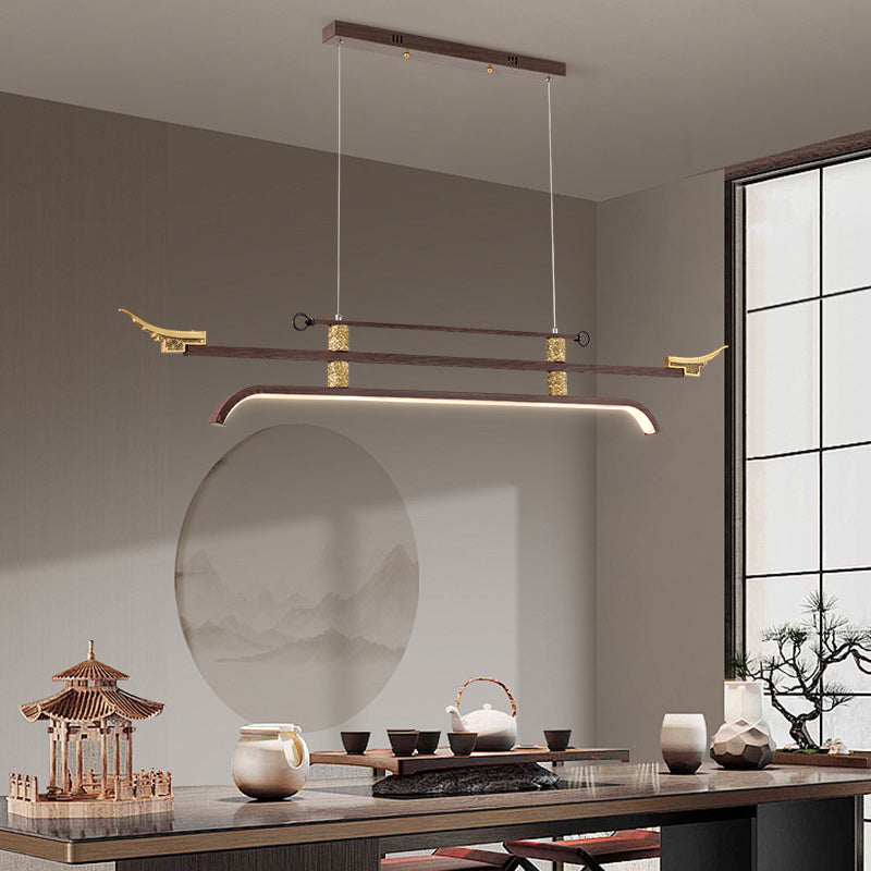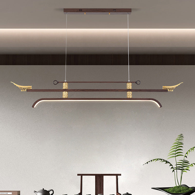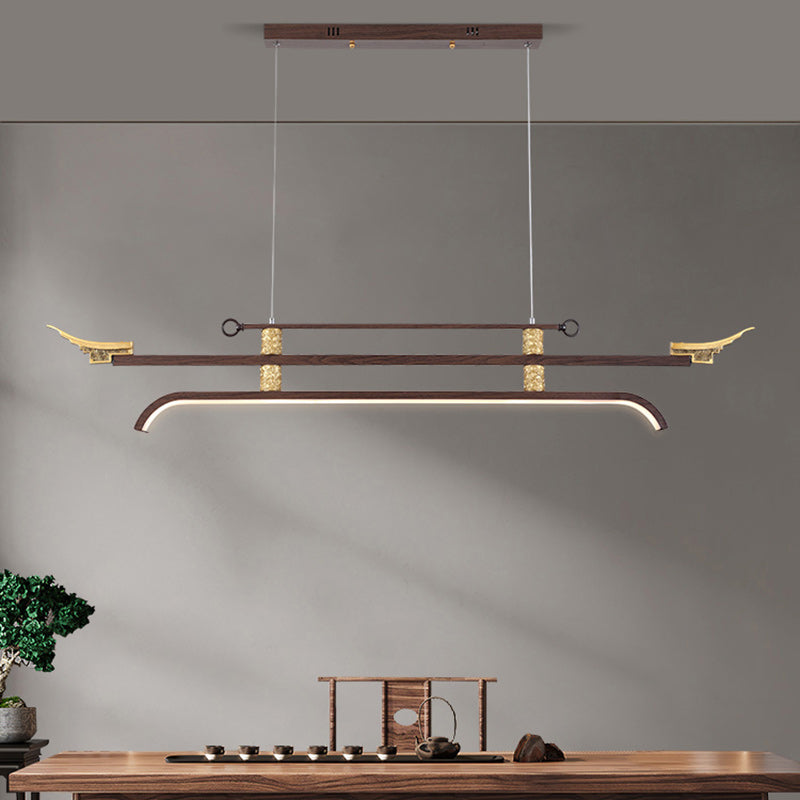 Traditional Chinese Cloud Carving Resin Decorative Iron Linear LED Island Light Pendant Light For Living Room