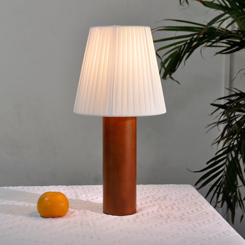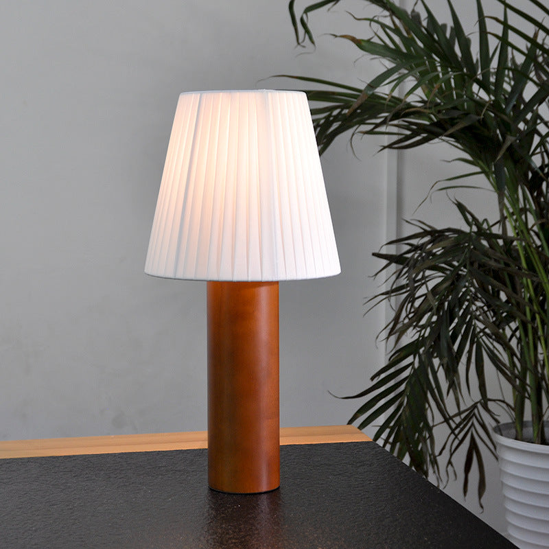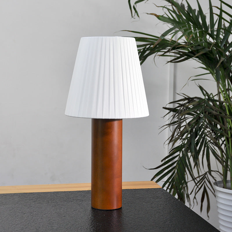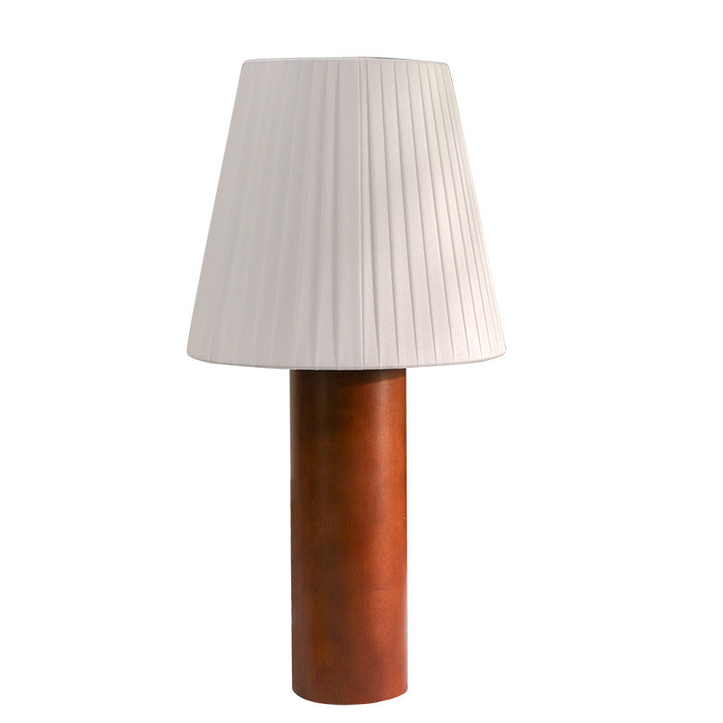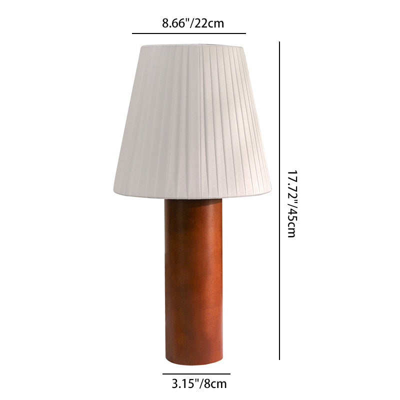 Traditional Chinese Cylinder Round Fabric Rubberwood 1-Light Table Lamp For Living Room