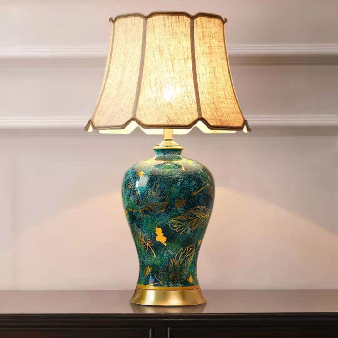 Traditional Chinese Fabric Shade Ceramic Vase Base 1-Light Table Lamp For Home Office
