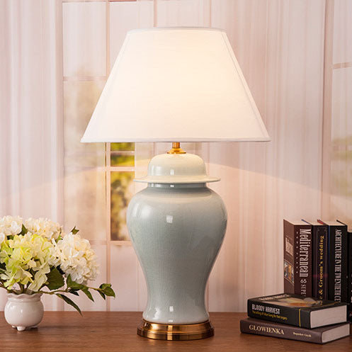 Traditional Chinese Fabric Shade Ceramic Vase Base 1-Light Table Lamp For Home Office