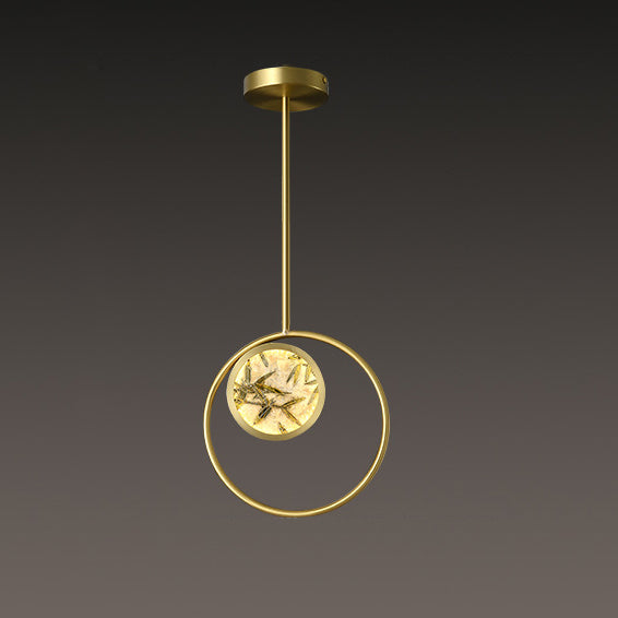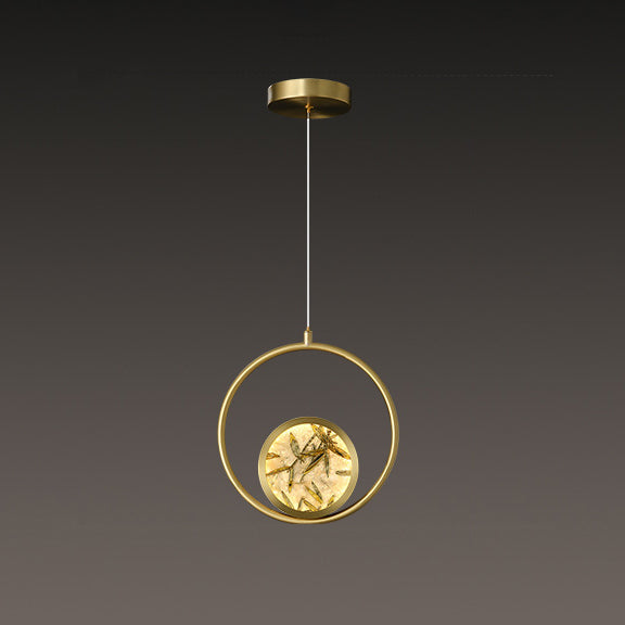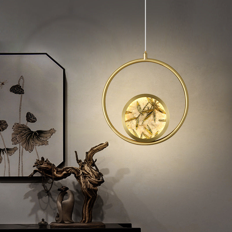 This traditional Chinese pendant light features a delicate round shape with an artistic leaf pattern, crafted from glass and brass in a warm copper tone. Its soft LED illumination adds a touch of elegance and tranquility, perfect for bedrooms, tea rooms, or living areas.