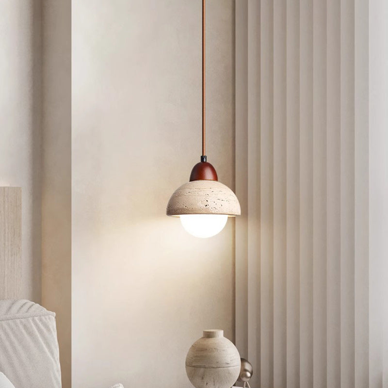 Traditional Chinese Globe Wood Stone 1-Light Pendant Light For Living Room