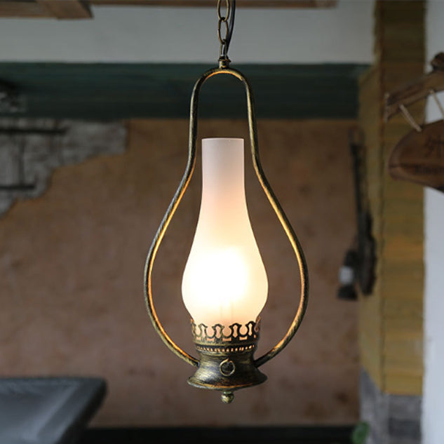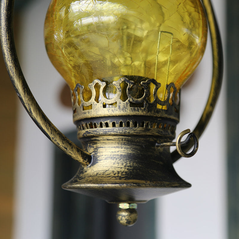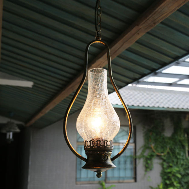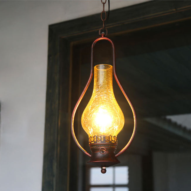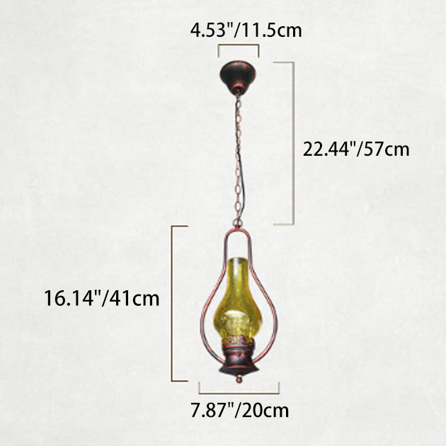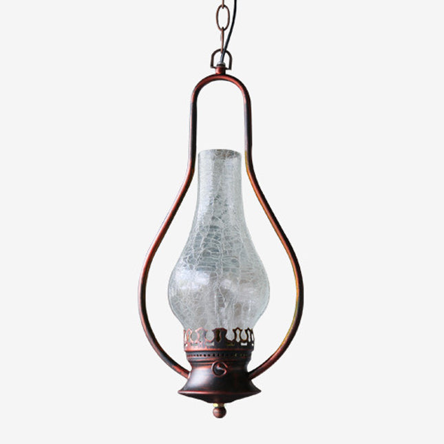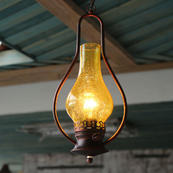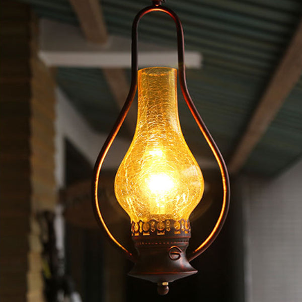 Traditional Chinese Gourd Water Drop Glass Iron 1-Light Pendant Light For Bedroom