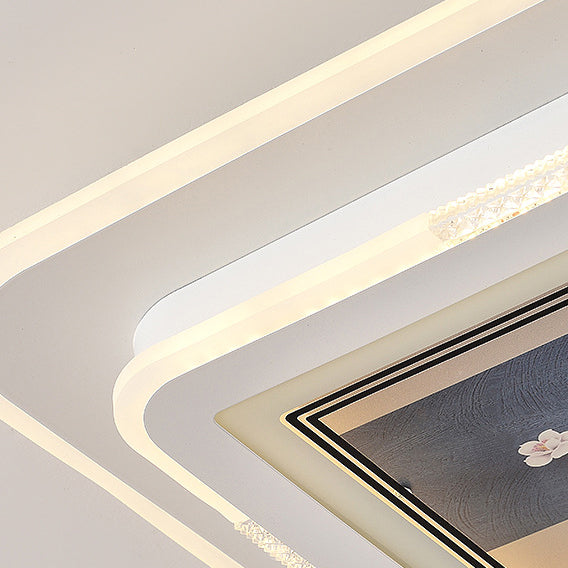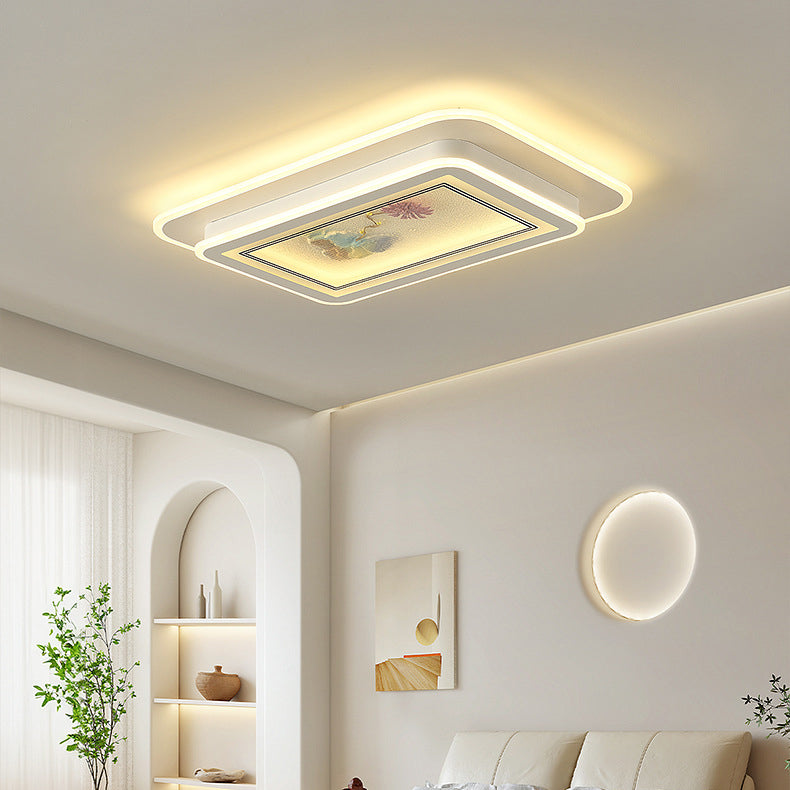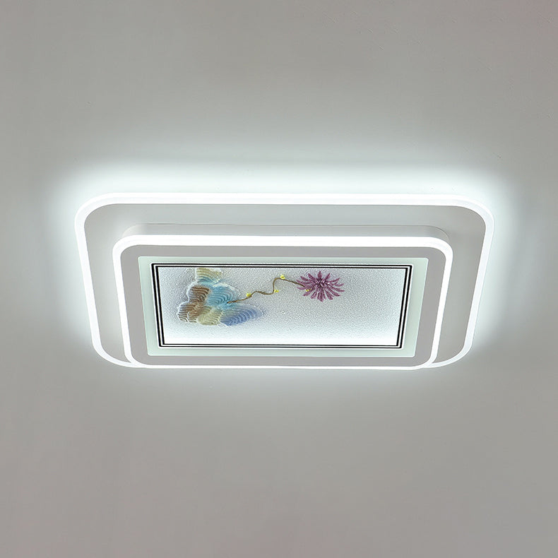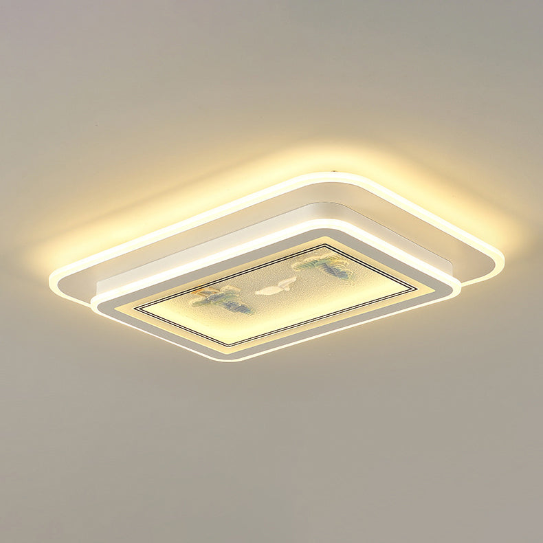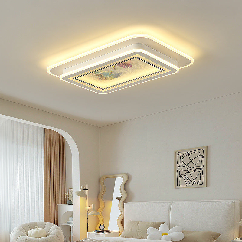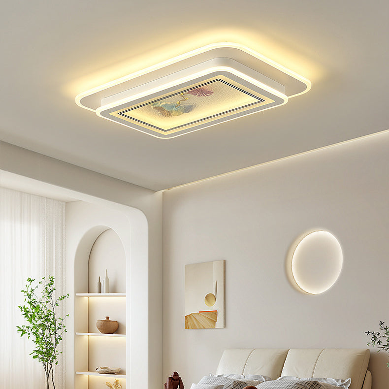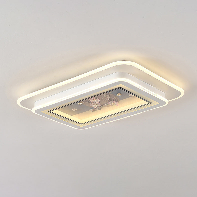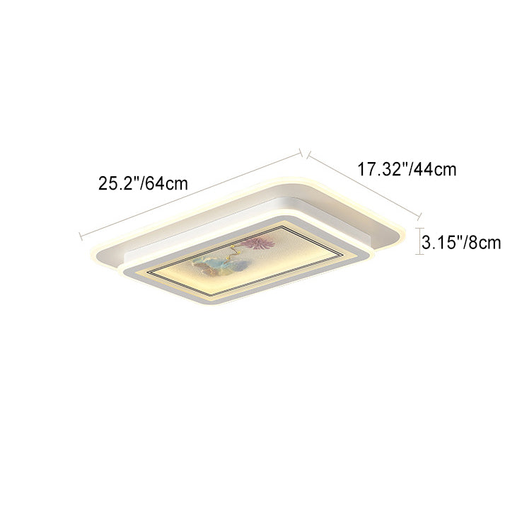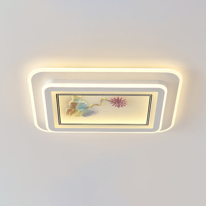 Traditional Chinese Handmade Floral Pattern Iron Acrylic Rectangle LED Flush Mount Ceiling Light For Living Room