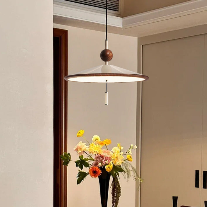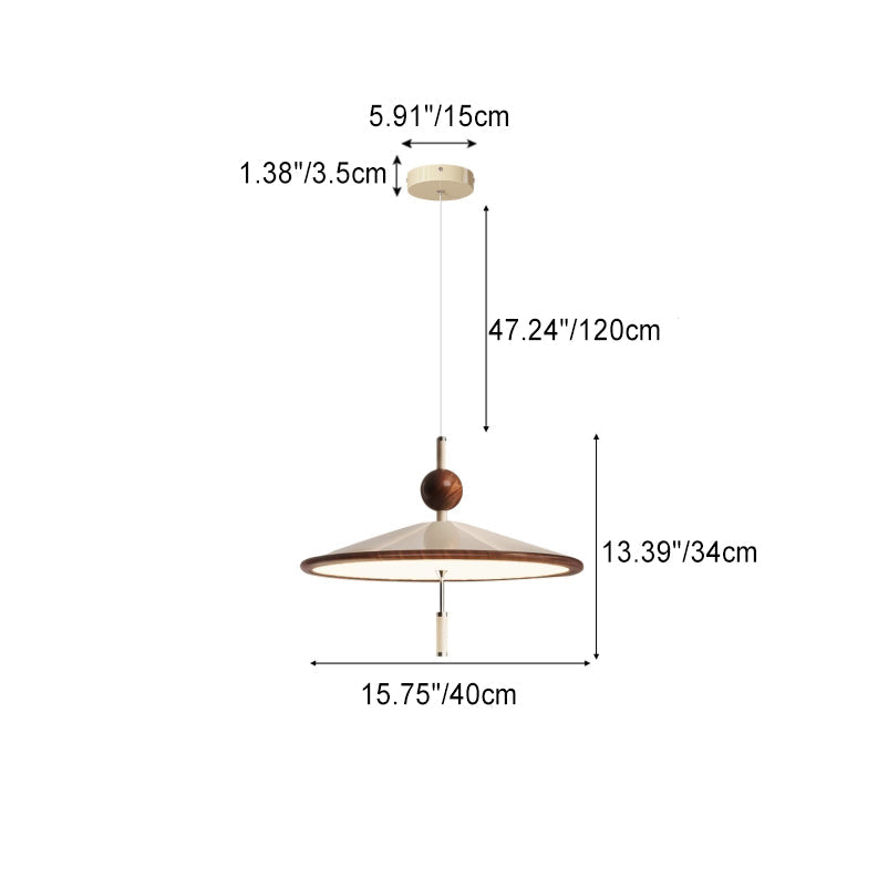 Traditional Chinese Hat Shape Aluminum Iron LED Pendant Light For Dining Room