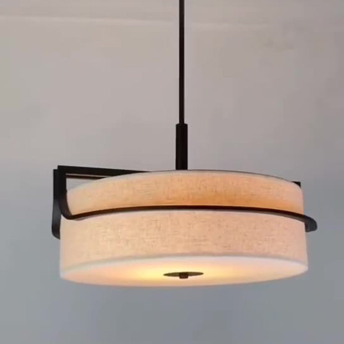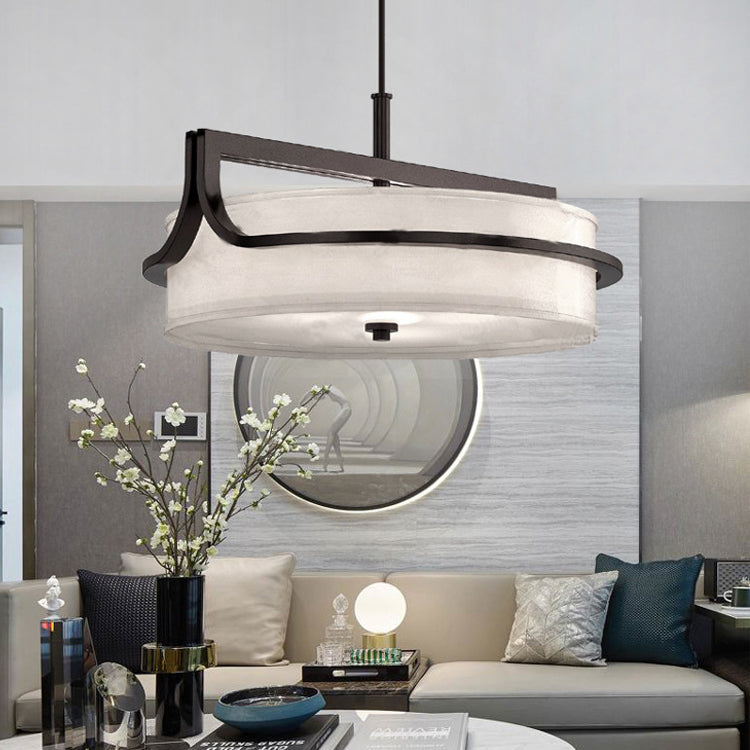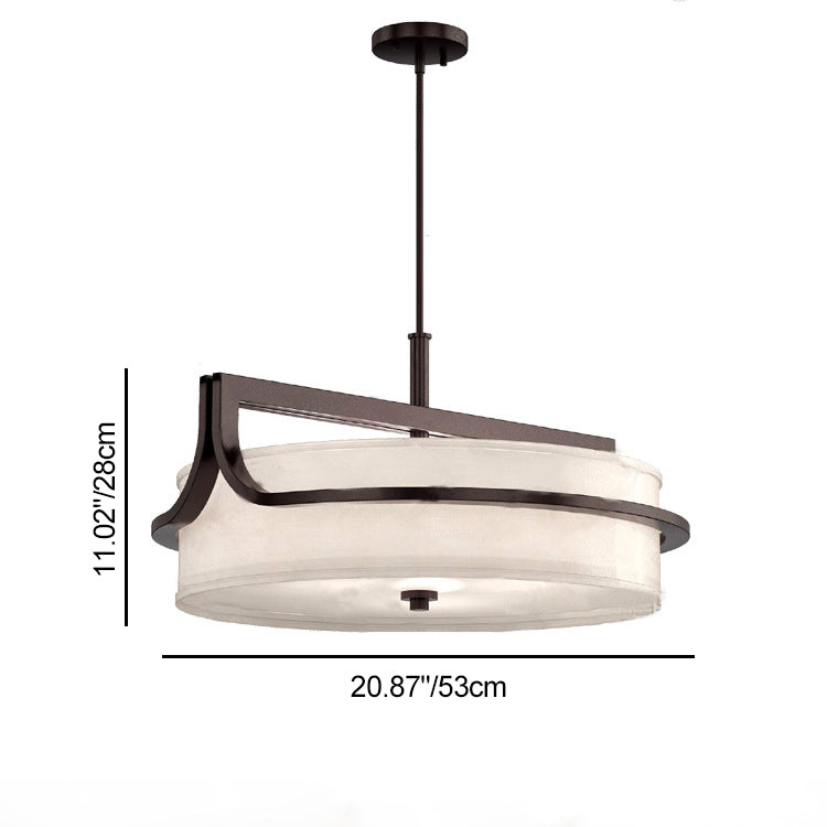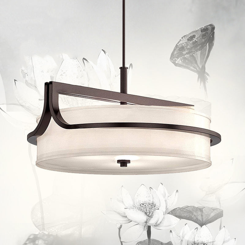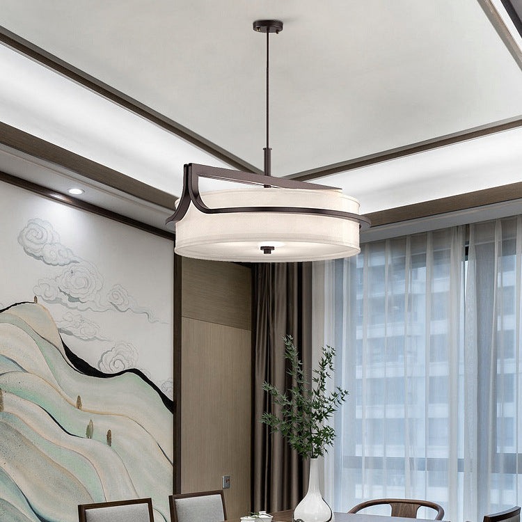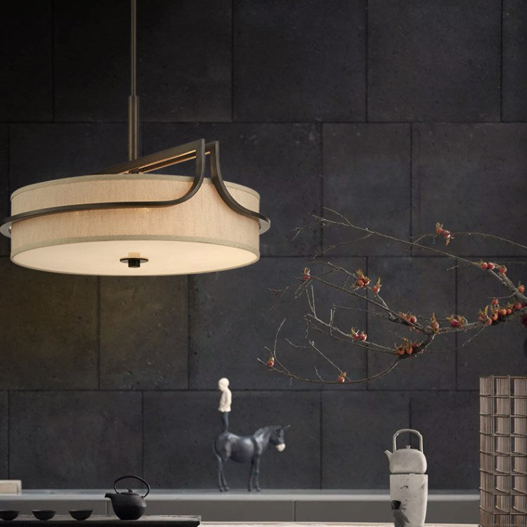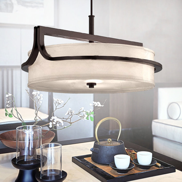 Traditional Chinese Iron & Fabric Round 3-Light Pendant Light For Living Room & Dining Room